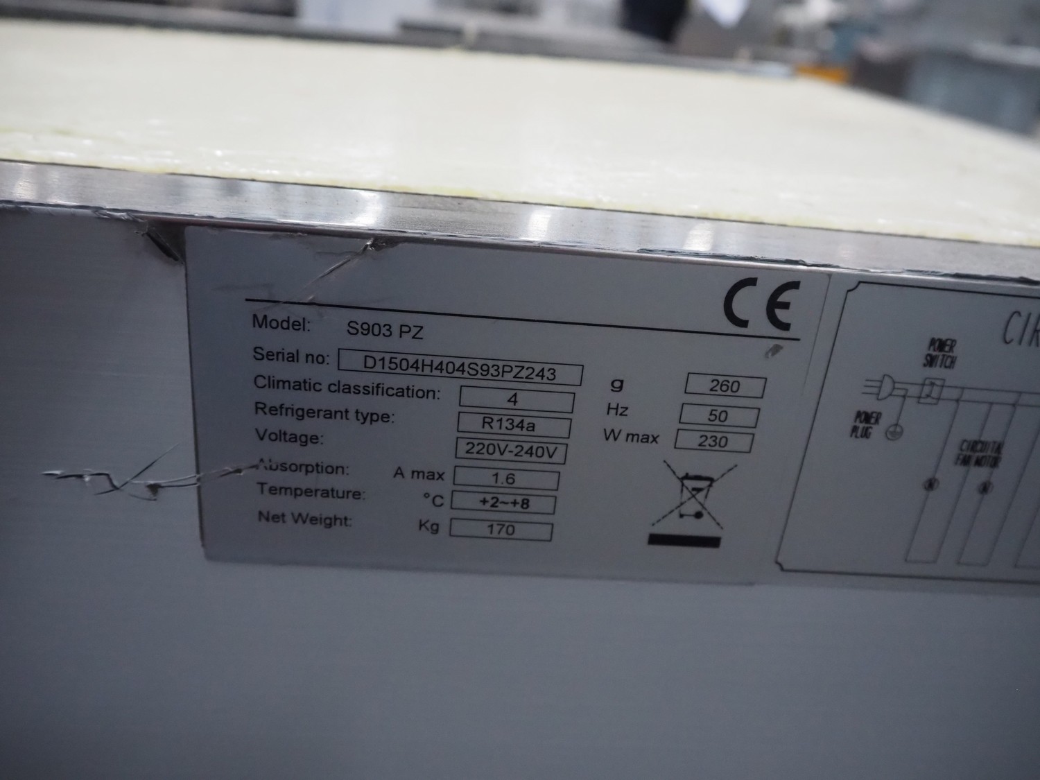 S/s 3-door refrigerator, model: S903 PZ, serial number: D1504H404S93PZ243, 220/240 V, 50 Hz, 1.6 A, 230 W, refrigerant: R134a, weight: 170 kg, dimensions: 1400 mm x 700 mm x 830 mm.