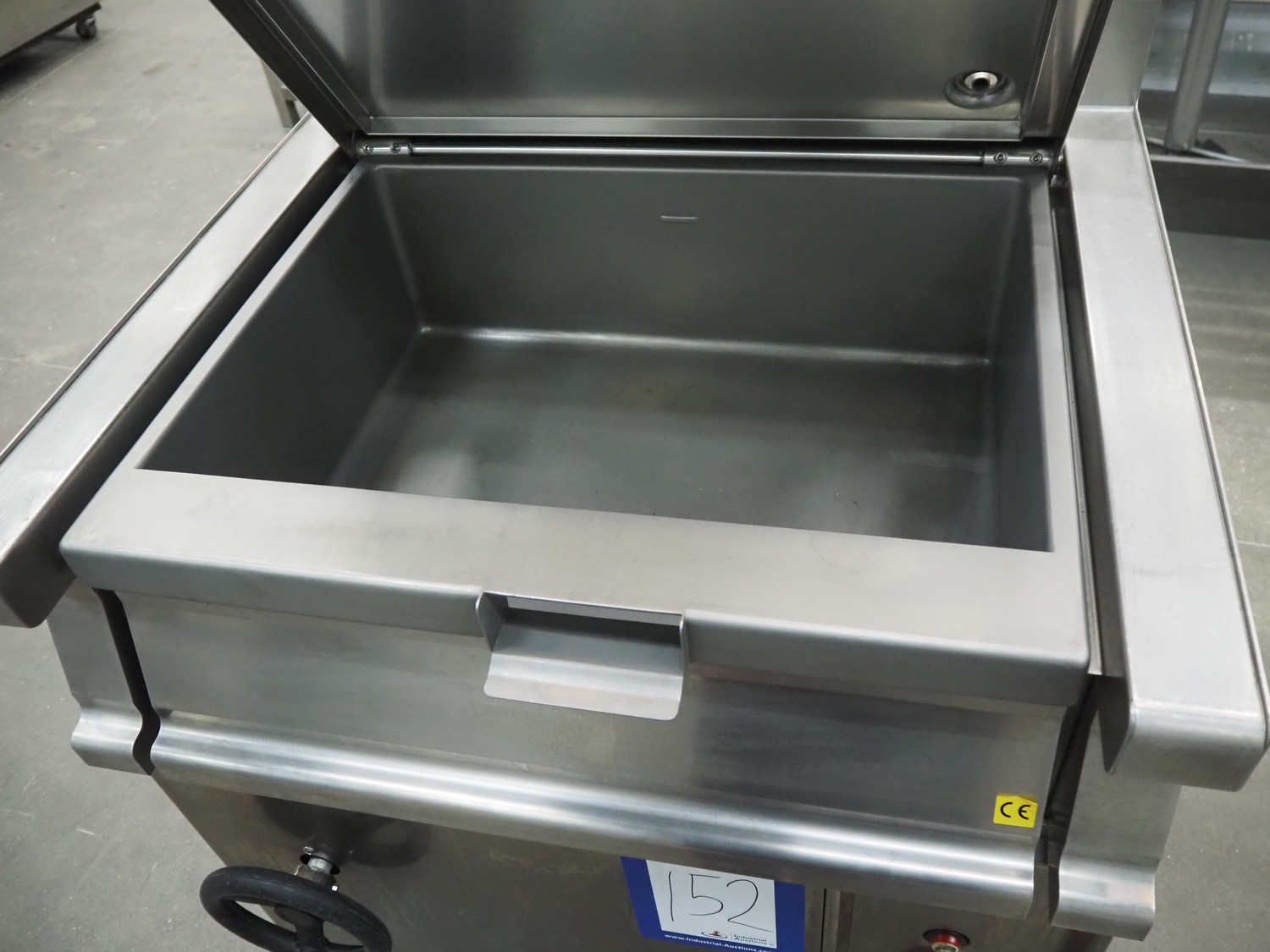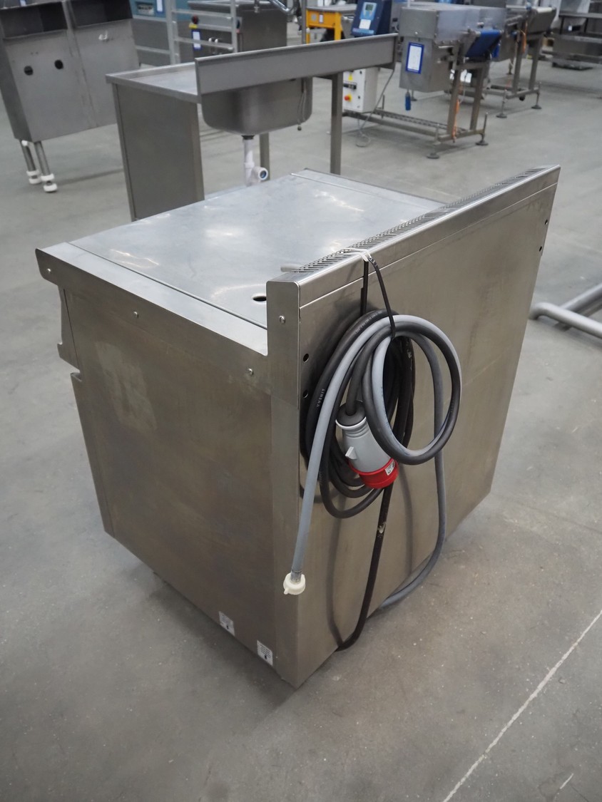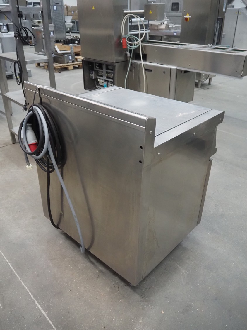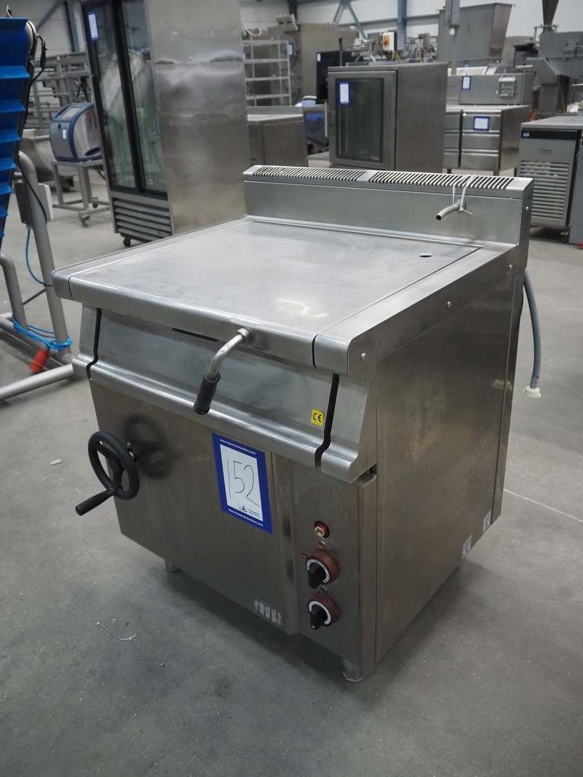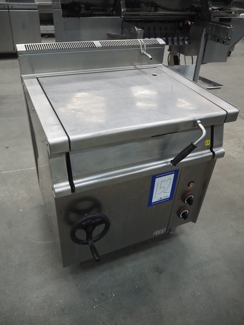 Tiltable frying pan, type: 700930, serial number: AS07885001, 400 V, 3 Ph, 50 Hz, 7.8 kW, 500 kPa, inside dimensions: 600 mm x 430 mm x 200 mm, total dimensions: 810 mm x 750 mm x 1030 mm.