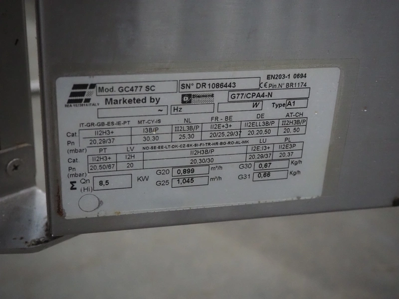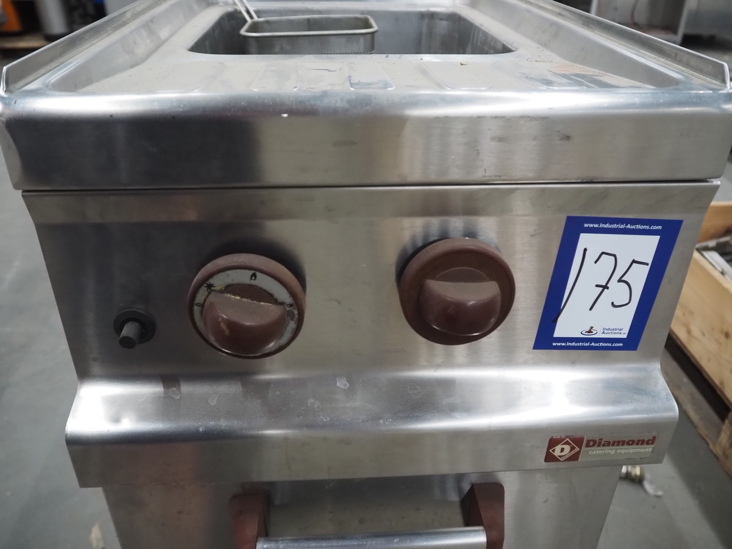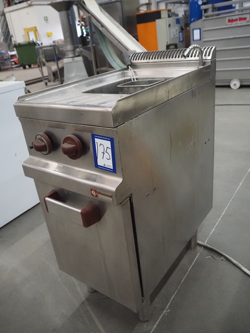 Diamond fryer, model: GC477 SC, serial number: 1086443, gas heated, dimensions: 400 mm x 800 mm x 950 mm.