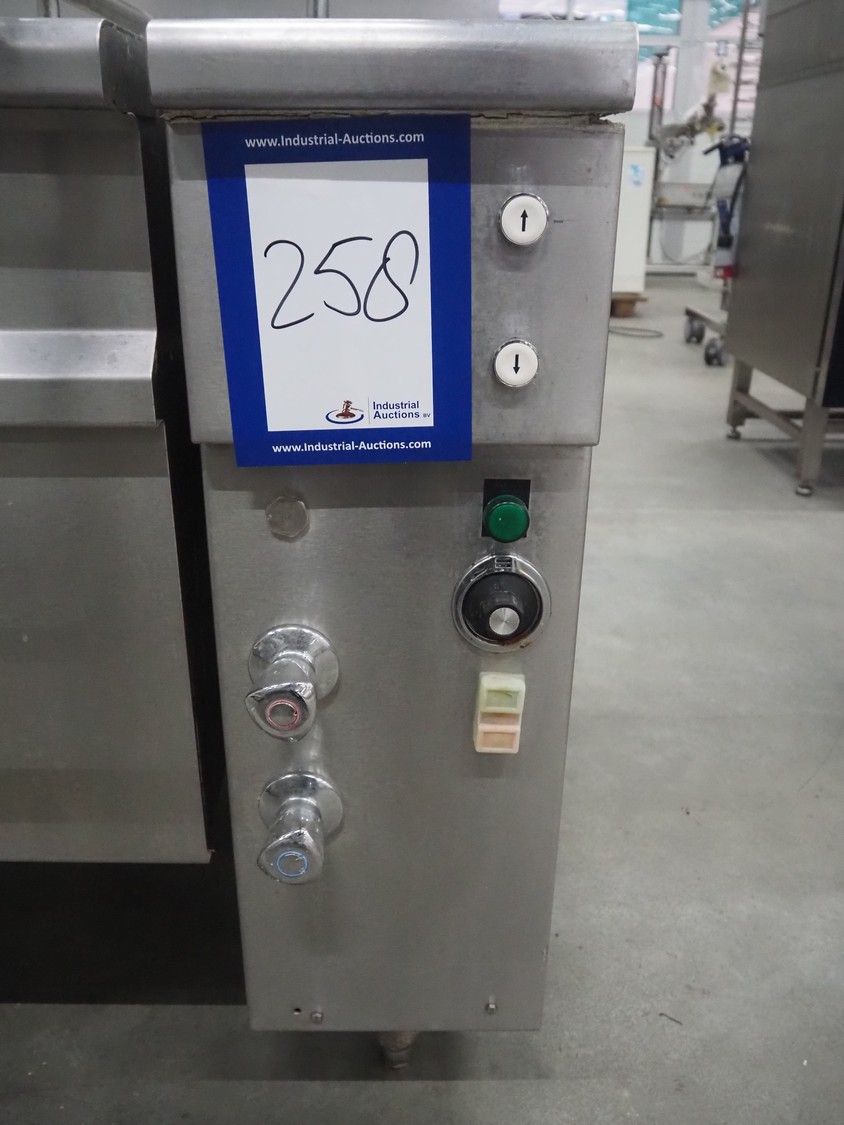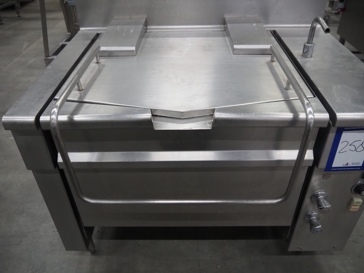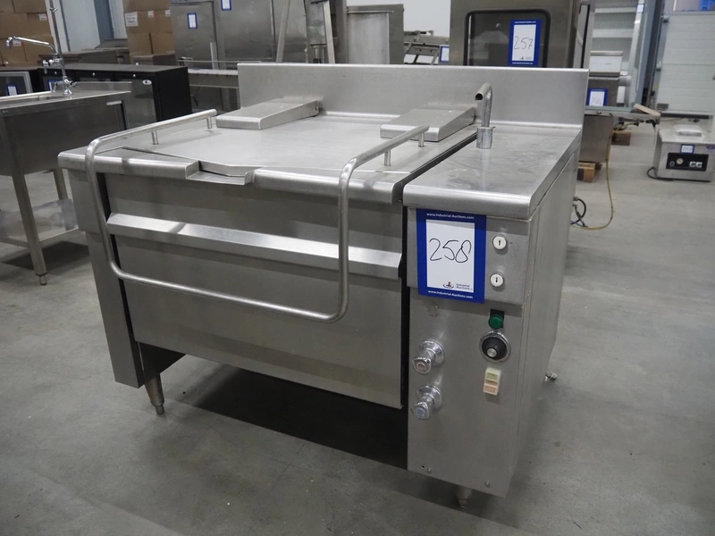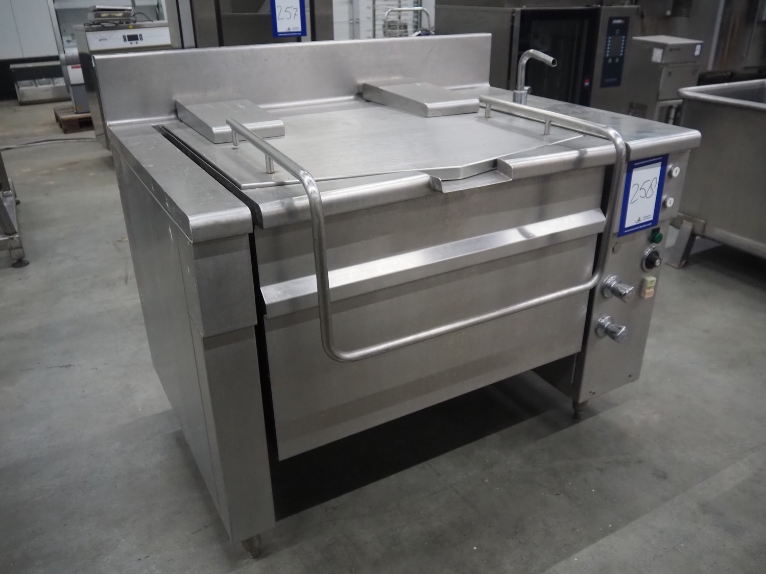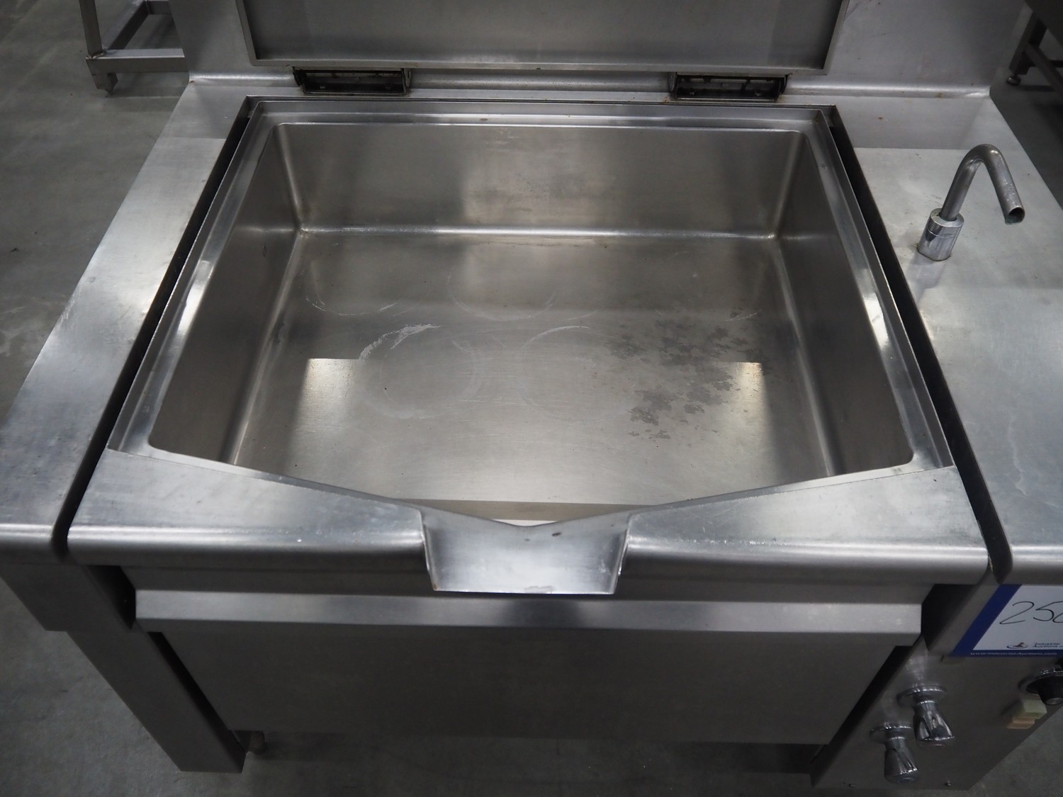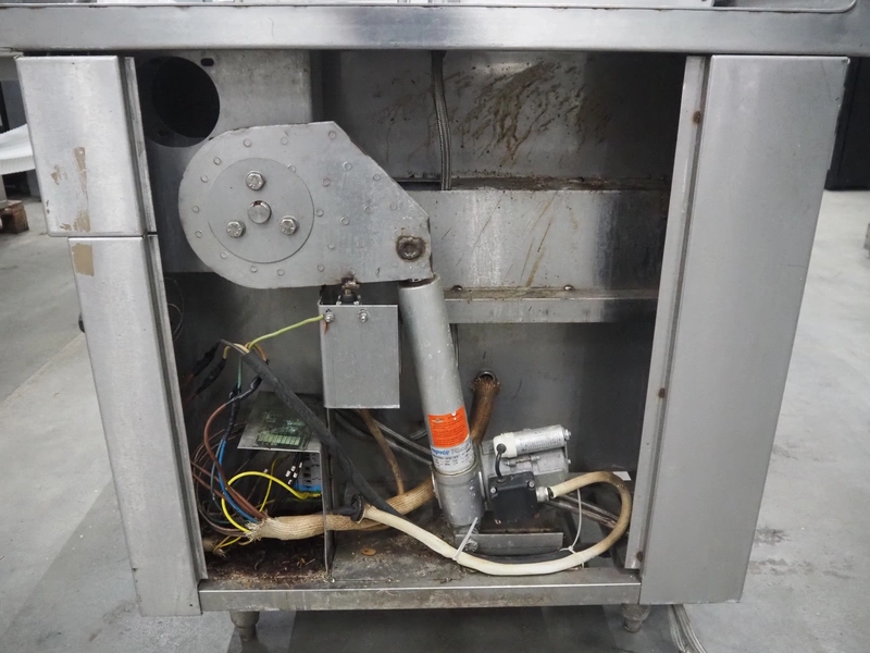 Tiltable fryer, inside dimensions: 800 mm x 700 mm x 200 mm, total dimensions: 1250 mm x 1000 mm x 1100 mm.