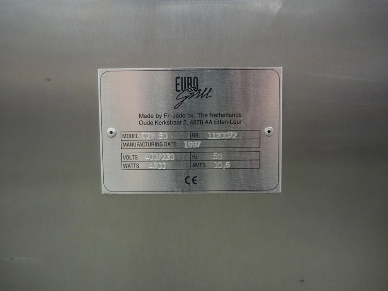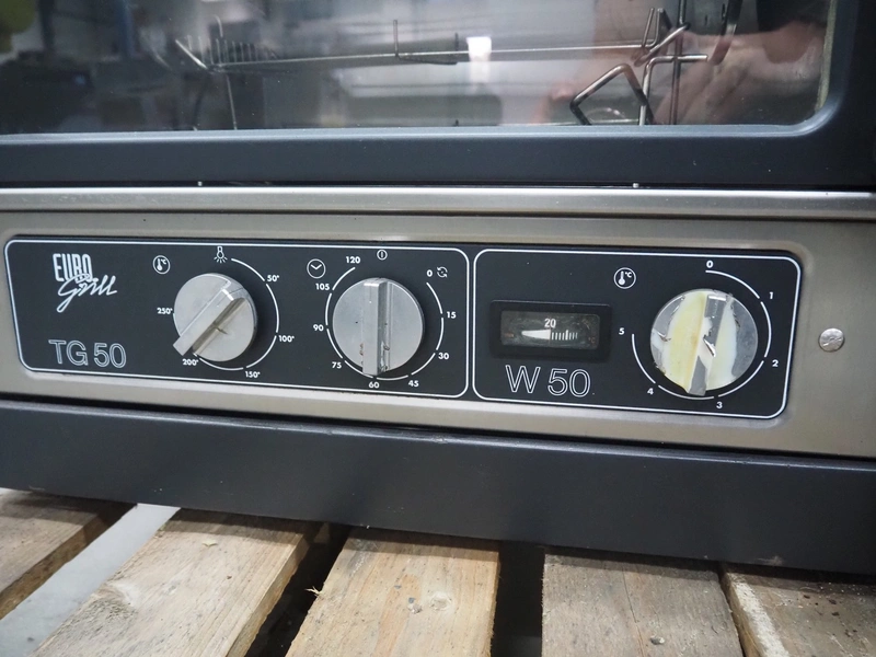 Eurogrill rotary grill, model: TGW 50, serial number: 1120072, year of construction: 1997, 400 V, 4500 W, 50 Hz, 10,6 A, 3 floors, dimensions each floor: 320 mm x 350 mm, total dimensions: 1000 mm x 500 mm x 700 mm.