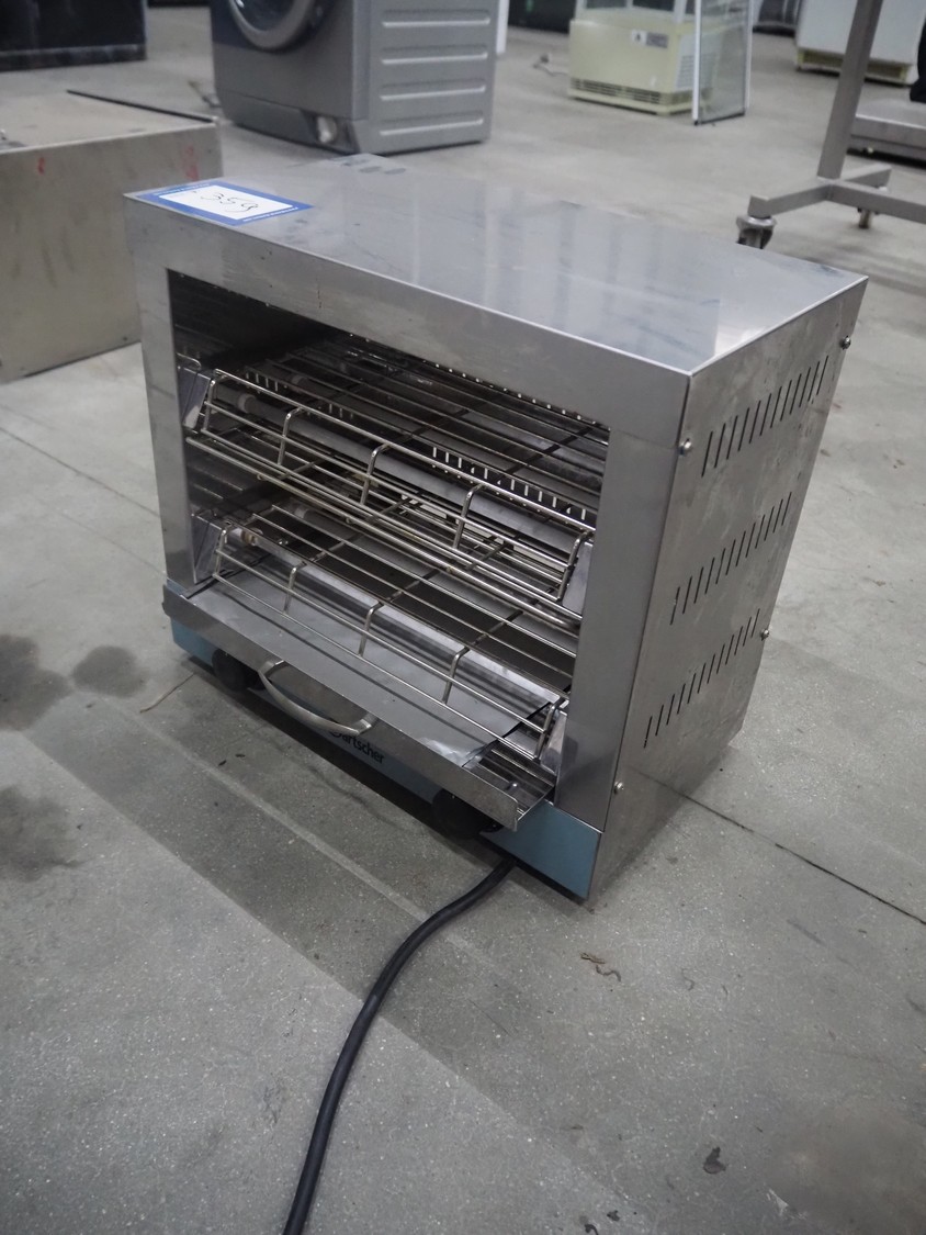 Bartscher grill, type: AT-360B, year of construction: 2019, 230 V, 50 Hz, 3000 Watt, electric heated, dimensions: 440 mm x 250 mm x 400 mm.