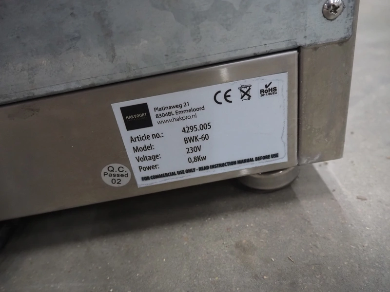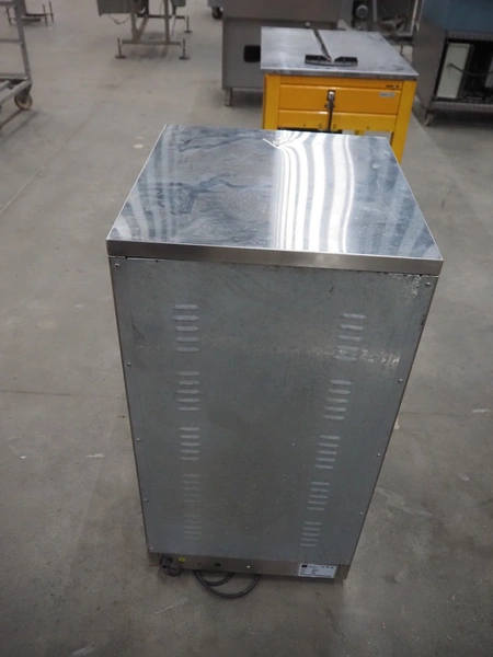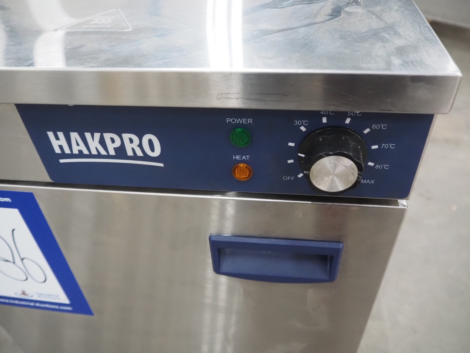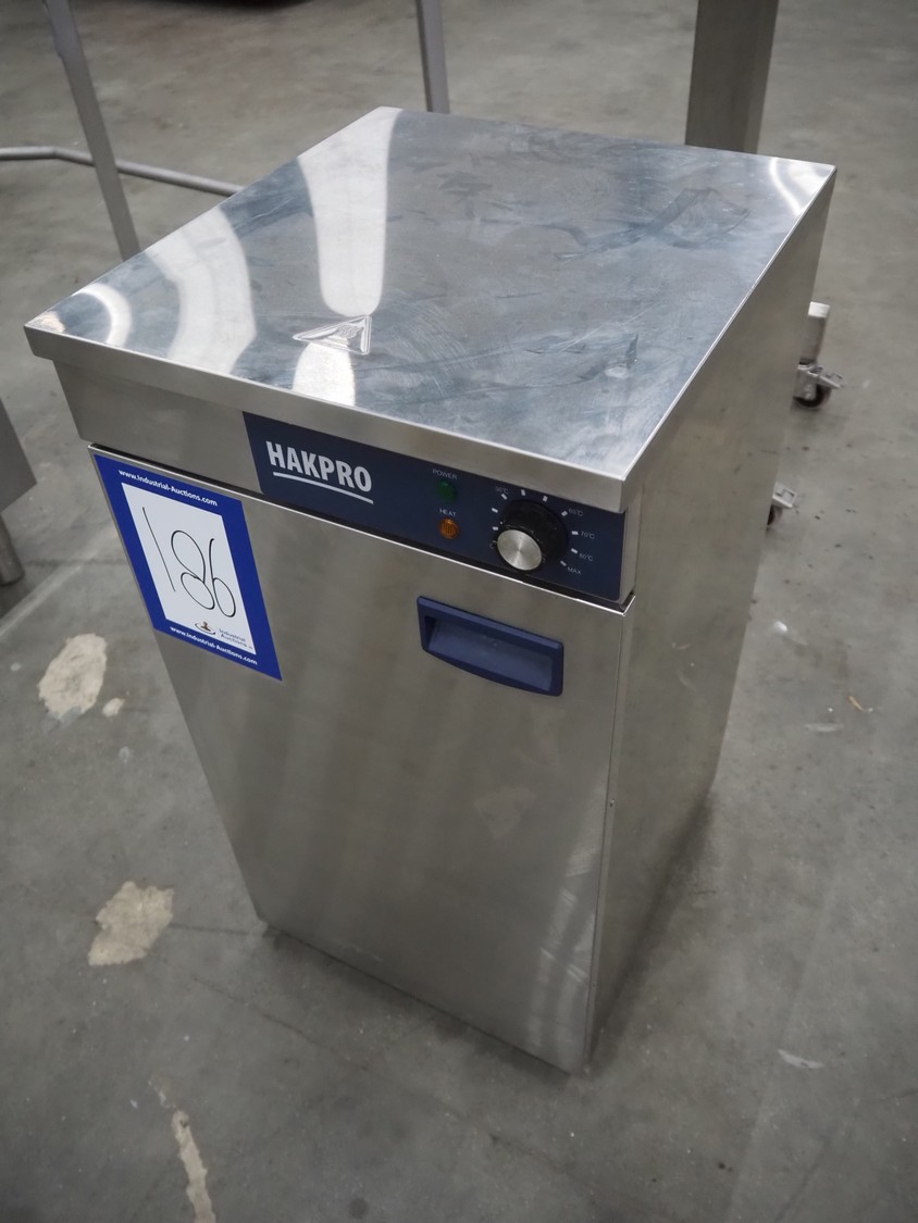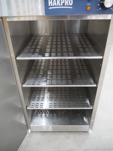 Hakpro s/s heated cabinet, 4 floors, dimensions each floor: 380 mm x 400 mm, total dimensions: 485 mm x 450 mm x 870 mm.
