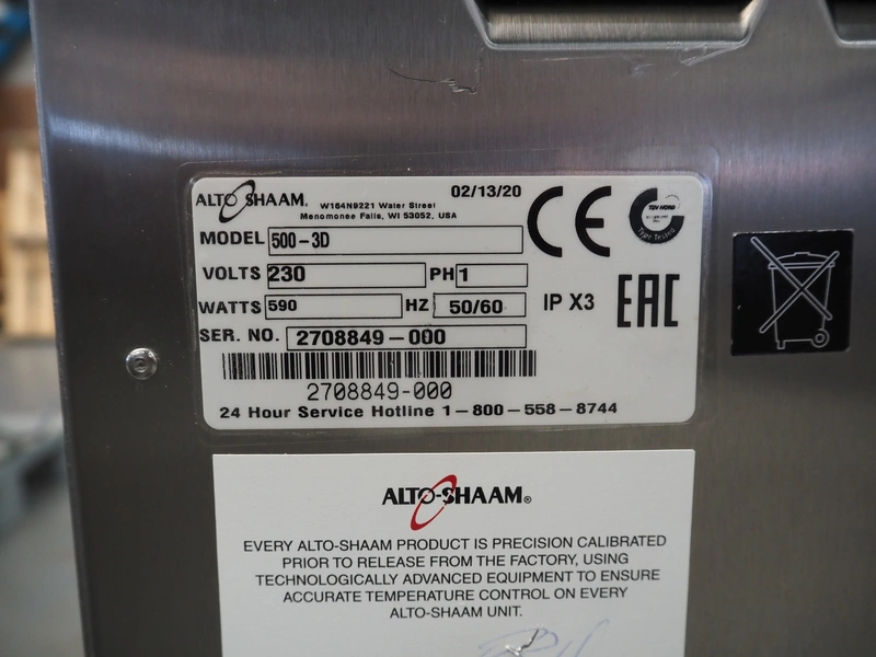 Alto Shaam heated cabinet, model: 500-3D, serial number: 2708849-000, year of construction: 02/13/20, 230 V, 1 Ph, 50/60 Hz, 590 Watt, dimensions: 670 mm x 620 mm x 665 mm.