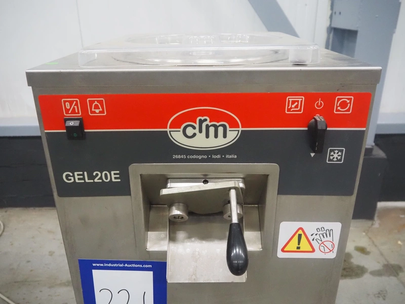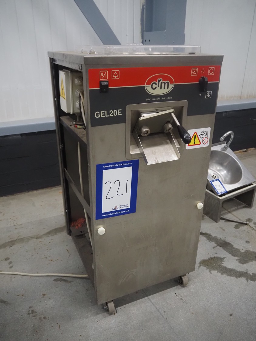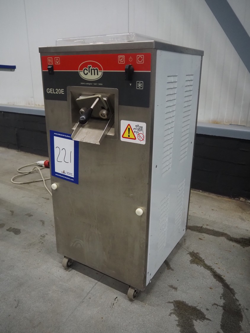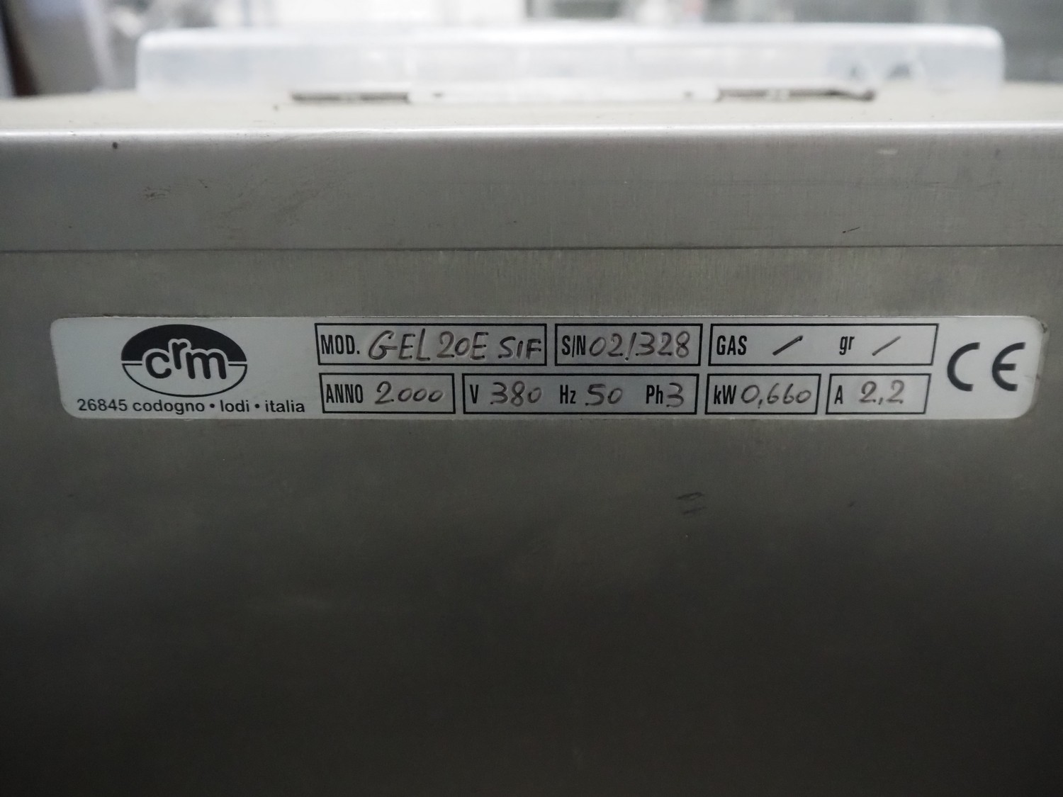 CRM mobile ice cream machine, model: GEL20E SIF, serial number: 02/328, year of construction: 2000, 230 V, 3 Ph, 50 Hz, 2.2 A, dimensions: 640 mm x 460 mm x 1000 mm. Missing 1 cover.