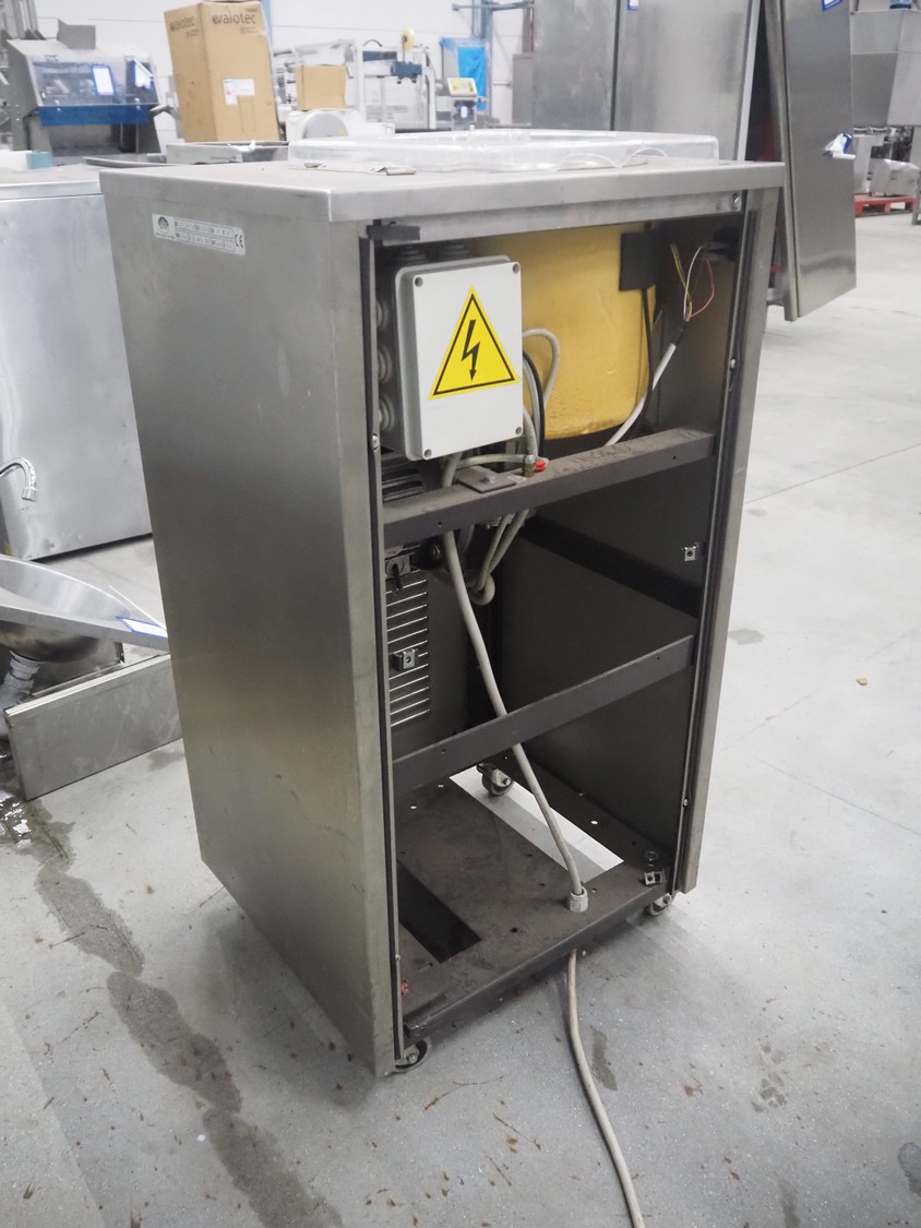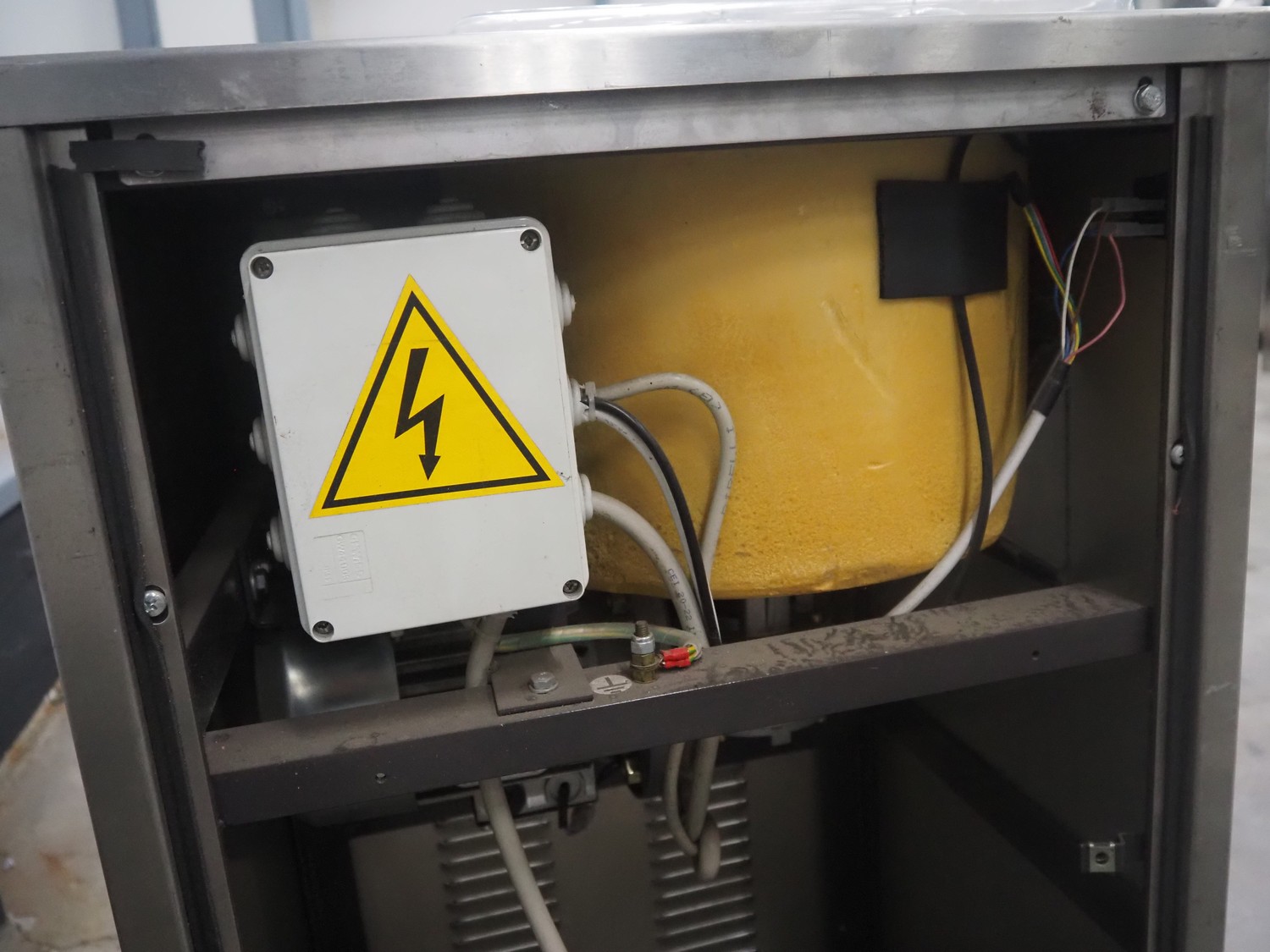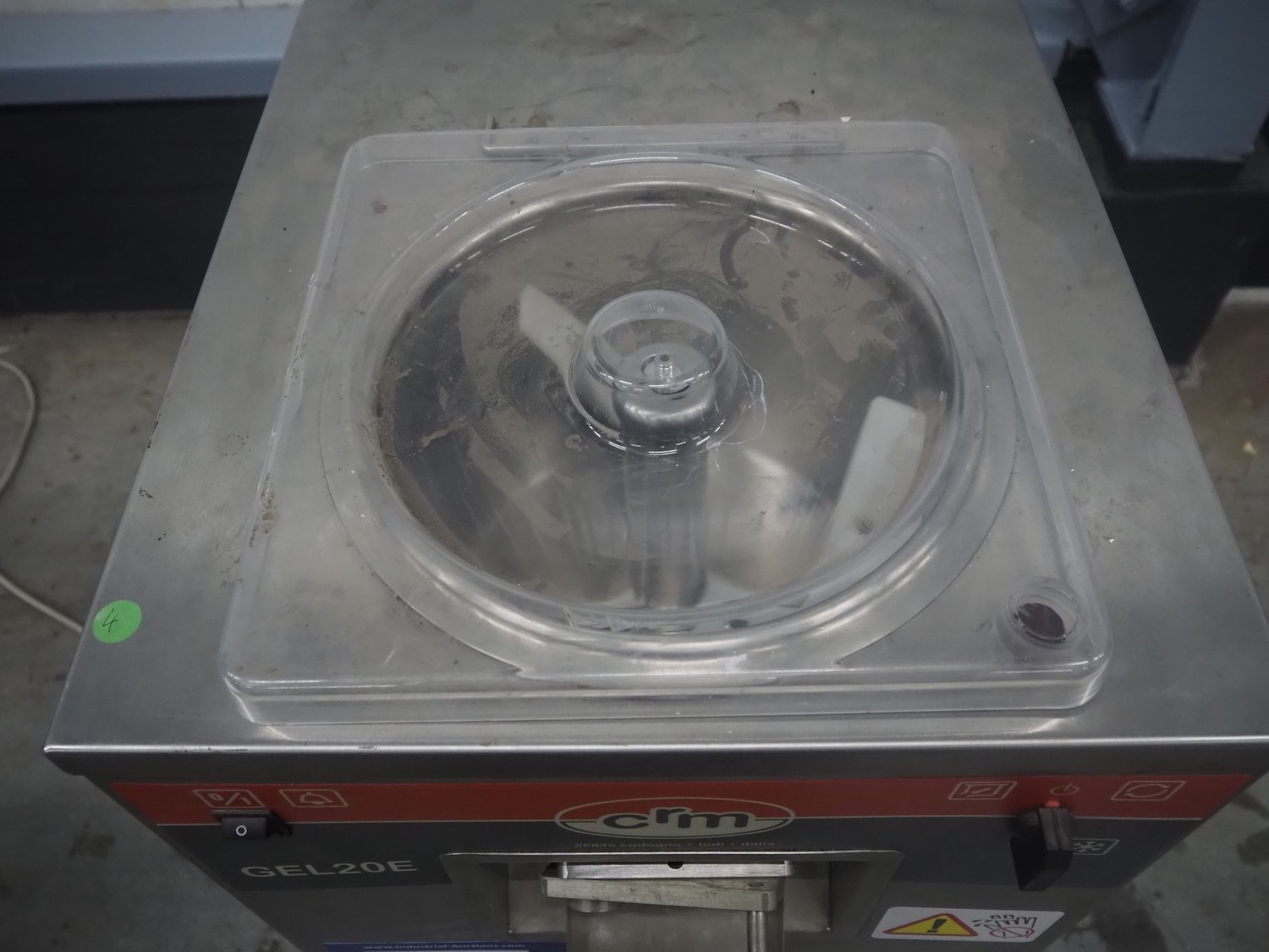CRM mobile ice cream machine, model: GEL20E SIF, serial number: 02/328, year of construction: 2000, 230 V, 3 Ph, 50 Hz, 2.2 A, dimensions: 640 mm x 460 mm x 1000 mm. Missing 1 cover.