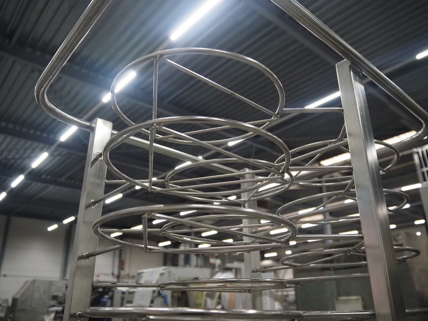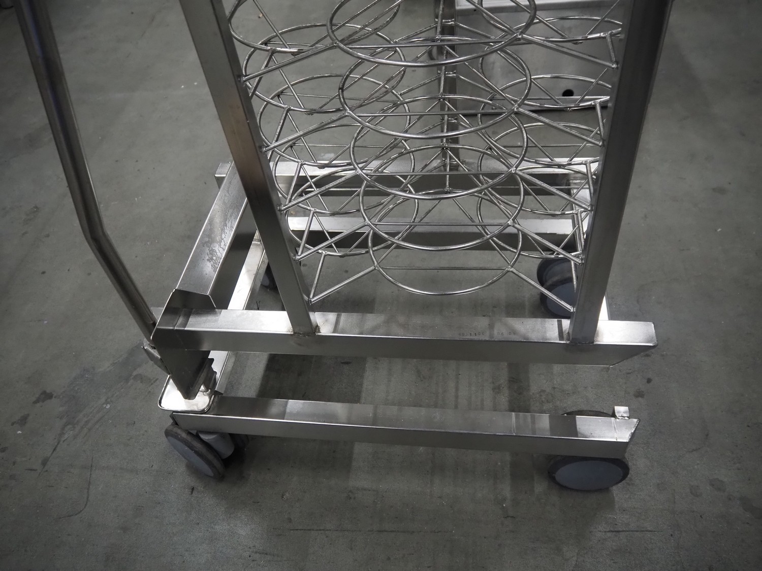 S/s trolley for Rational combi steamer, 20 floors, dimensions each floors: 530 mm x 330 mm, dimensions trolley: 700 mm x 550 mm x 1780 mm.