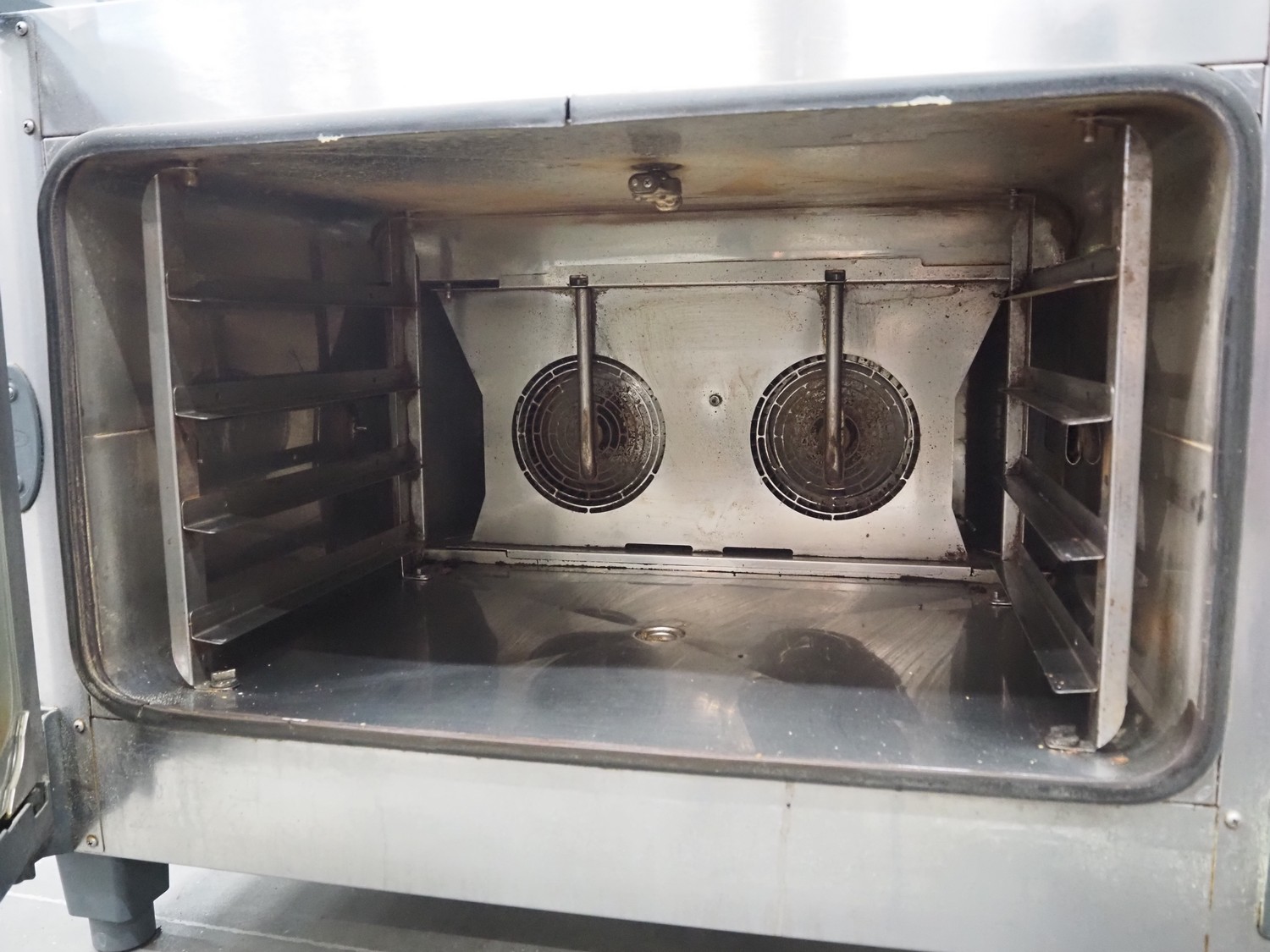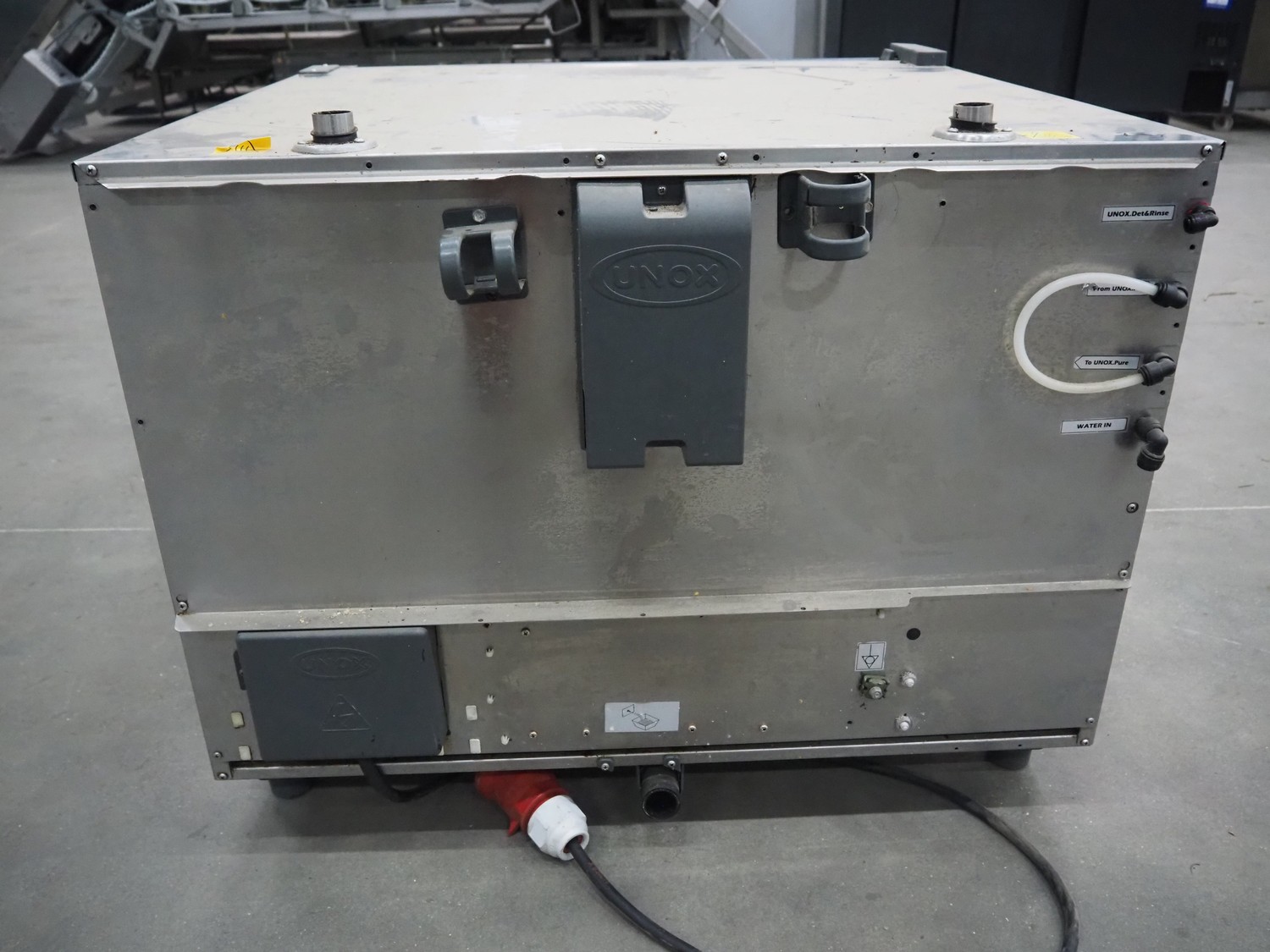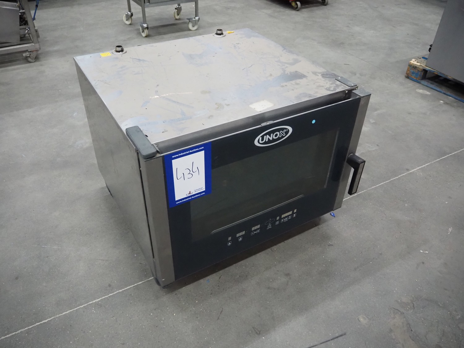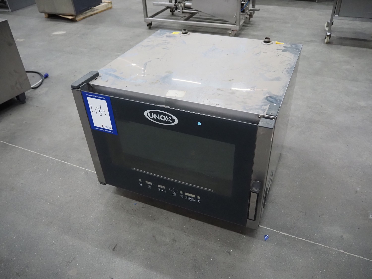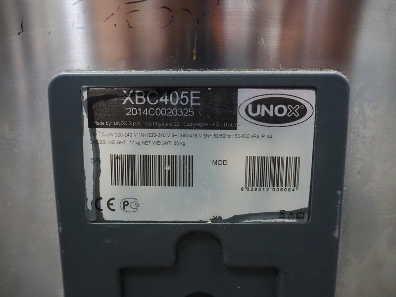 Unox combisteamer, type: XBC405E, serial number: 2014C0020325, 4 floors, dimensions each floor: 360 mm x 600 mm, total dimensions: 860 mm x 560 mm x 700 mm.
