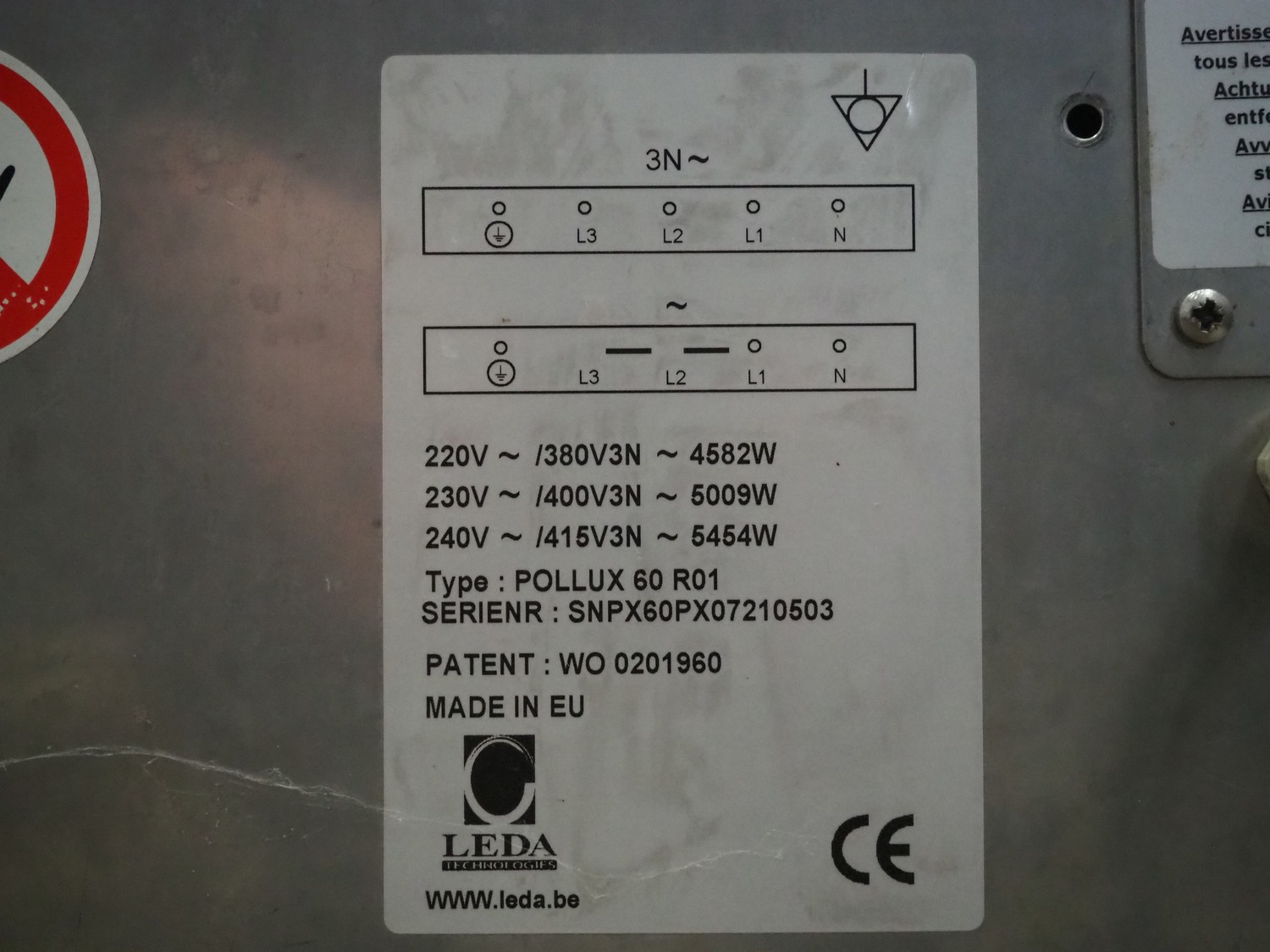 LEDA technologies eggs oven, type: POLLUX 60 R01, serial number: SNPX60PXPX07210503, inside dimensions: 500 mm x 320 mm x 95 mm, total dimensions: 620 mm x 600 mm x 250.