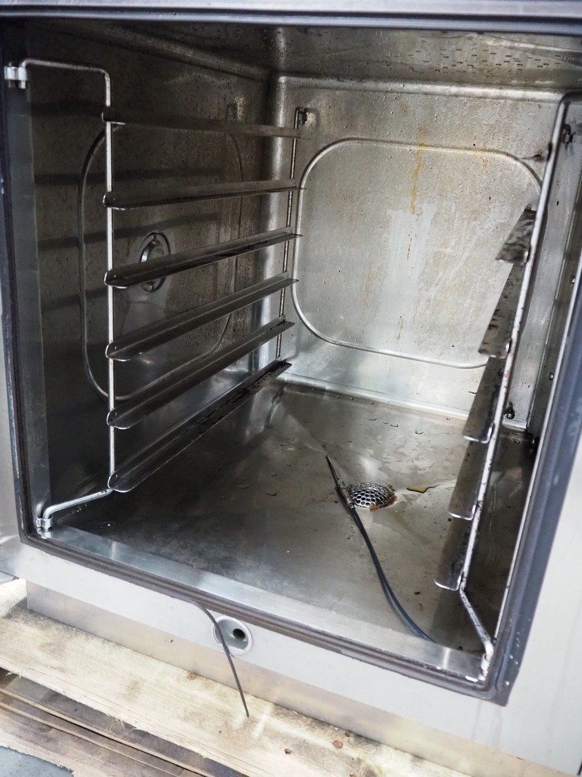 Leventi combi steamer, model: Combimat Mk3.1 MM 3B 6PL, number: 019040033, 3 x 380/415 V, 3 Ph, 50 Hz, 16 A, 9.5 kW, 6 floors, floor dimensions: (6x) 550 mm x 400 mm, total dimensions: 965 mm x 850 mm x 800 mm.