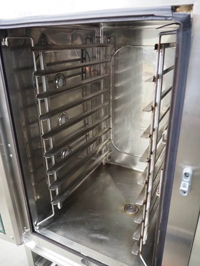 Leventi combi steamer, model: Combimat, 10 floors, floor dimensions: (10x) 550 mm x 390 mm, total dimensions: 980 mm x 950 mm x 1750 mm.