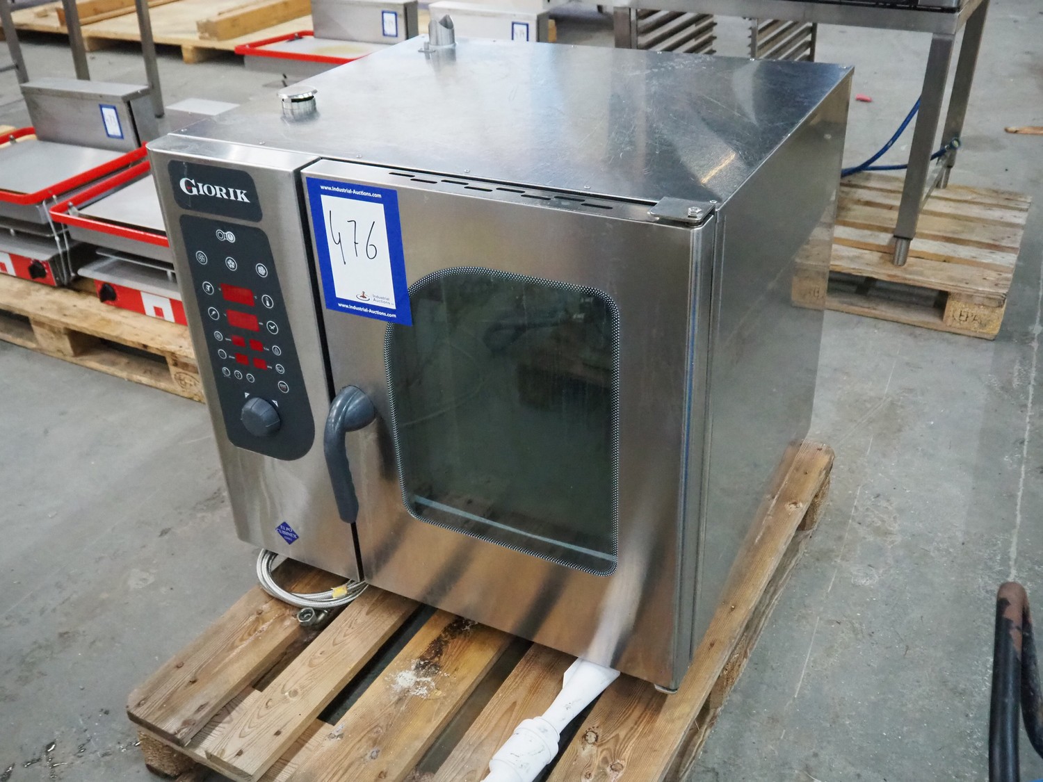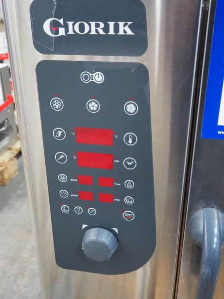 Giorik combi steamer, 400 V, 3 Ph, 50 Hz, 6 floors, floor dimensions: 510 mm x 330 mm, total dimensions: 850 mm x 850 mm x 830 mm.