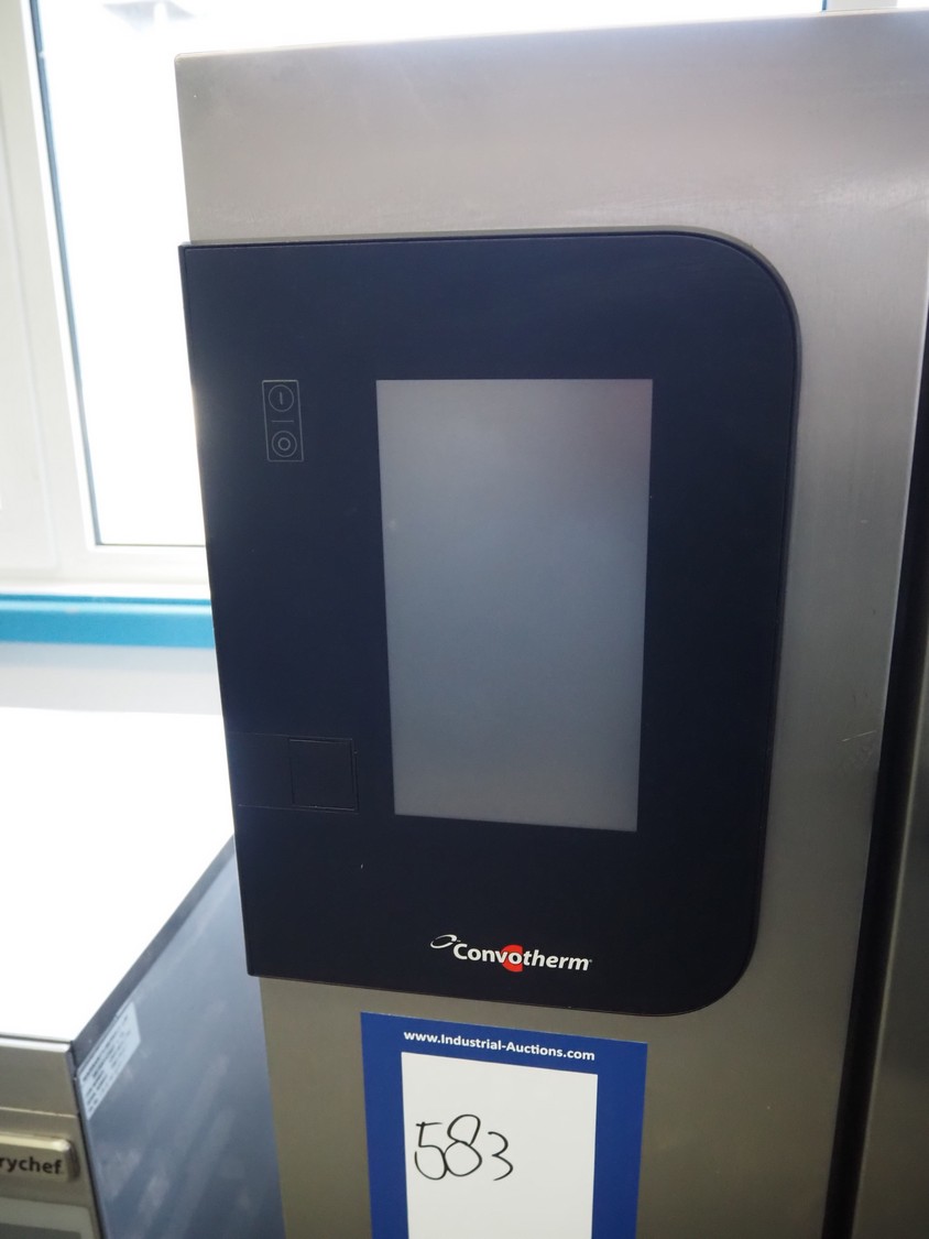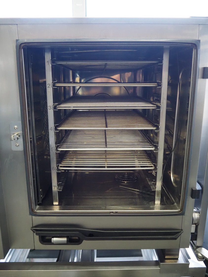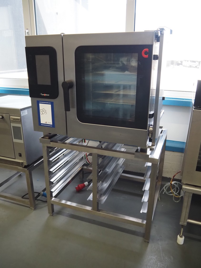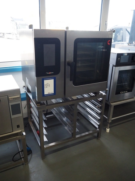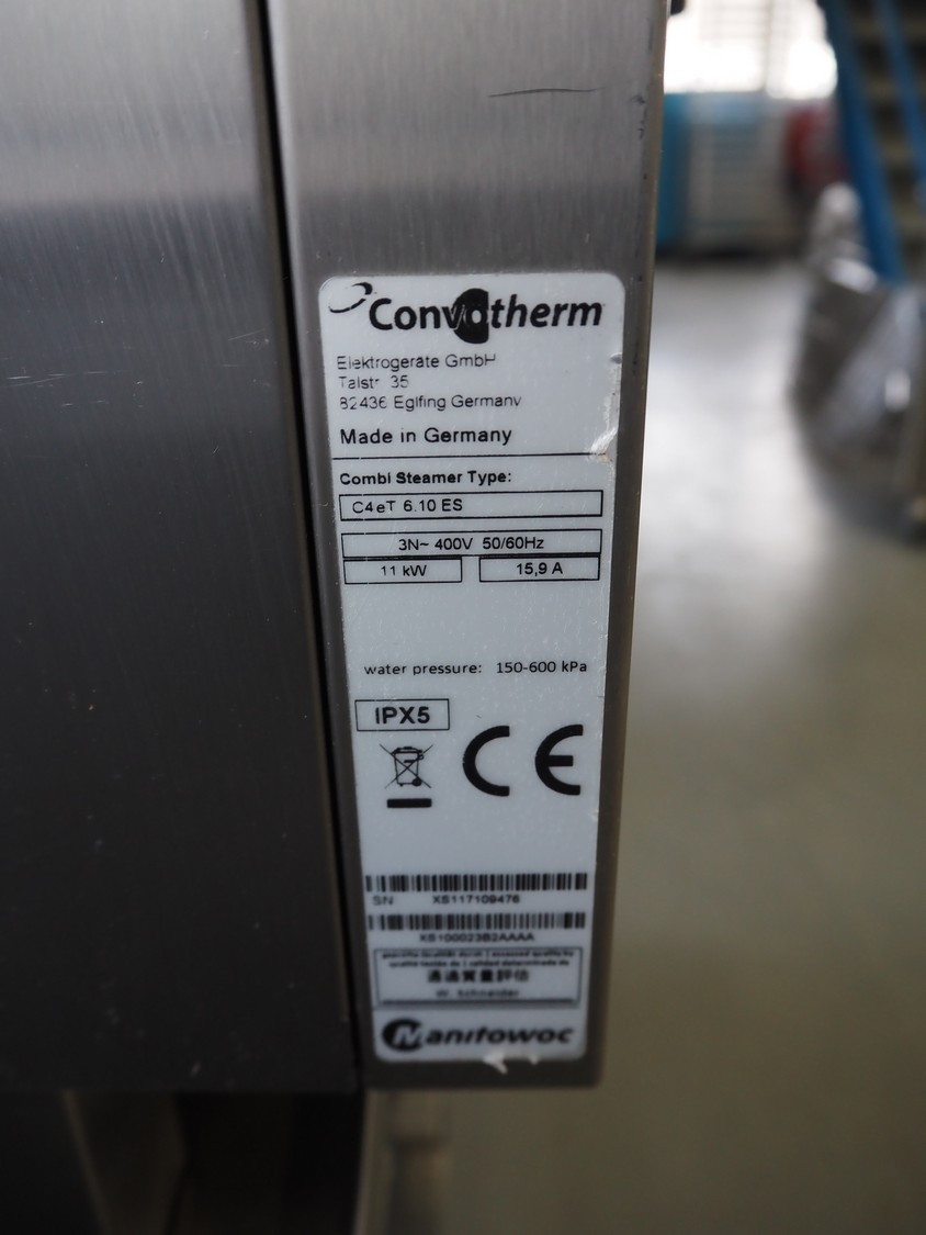 Convotherm combi steamer on s/s frame, type: C4eT 6.10ES, serial number: XS117109476, 400 V, 3 Ph, 50/60 Hz, 15.9 A, 11 kW, 7 floors, dimensions each floor: 530 mm x 330 mm, total dimensions: 940 mm x 800 mm x 1560 mm.