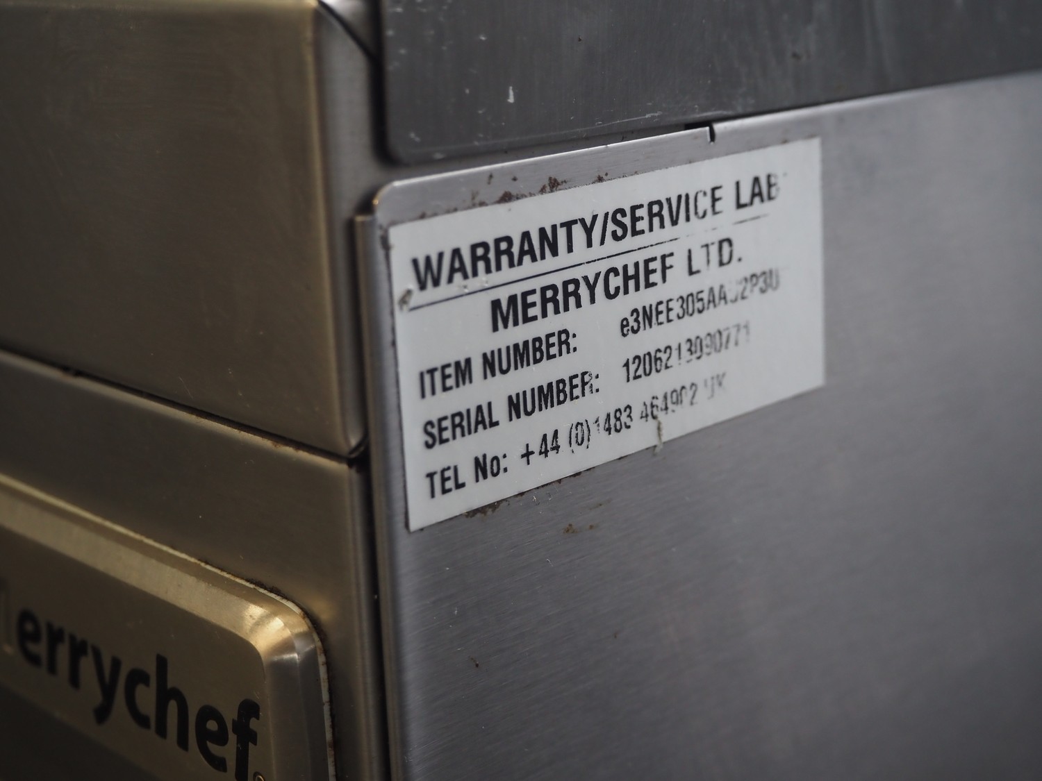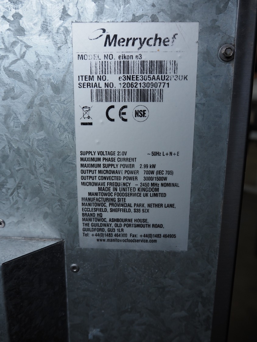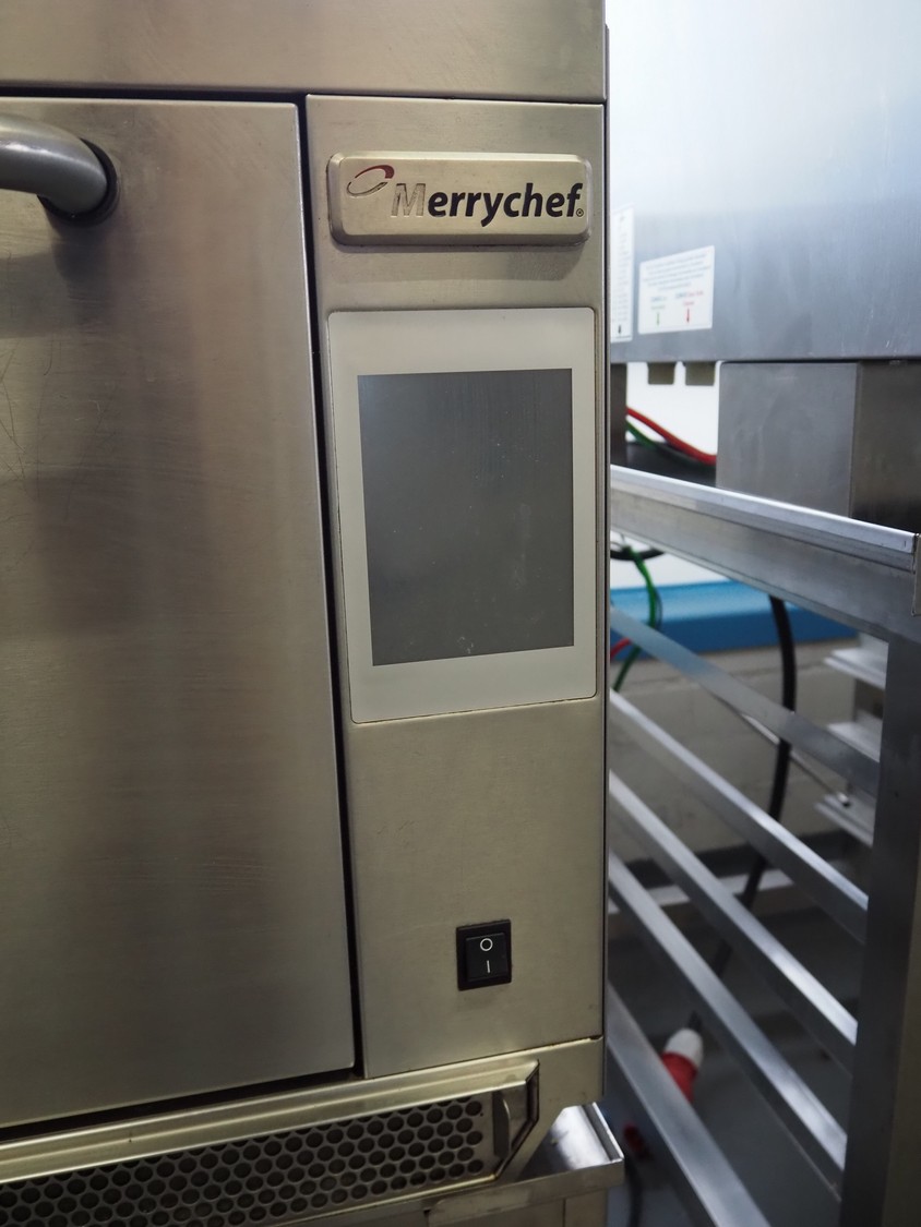 Merrychef high speed oven, item number: e3NEE305AAU2P3UK, 2 floors, dimensions each floor: 330 mm x 250 mm, total dimensions: 600 mm x 600 mm x 560 mm.