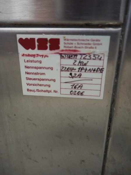 WSS mobile oven with proofer and hood, type oven: SBU8E-DE/1816, year of construction: 2002, 380 V, 3 Ph, 25 A, 12 kW, type proofer: GSU8M/2354, year of construction: 2002, 220 V, 1 Ph, 9.2 A, type hood: DAH-DK/7206, year of construction: 2002, 220 V, 1 Ph, 0.16 A, 0.63 kW, dimensions: 820 mm x 770 mm x 2150 mm.