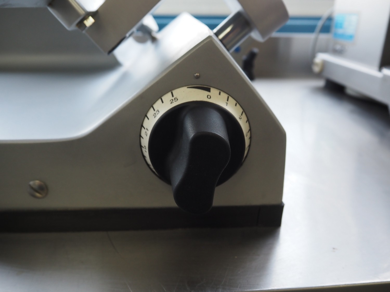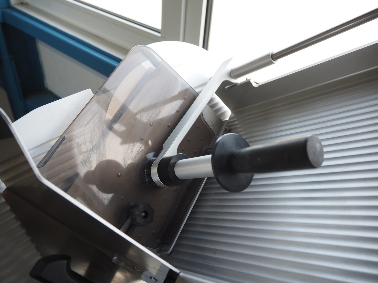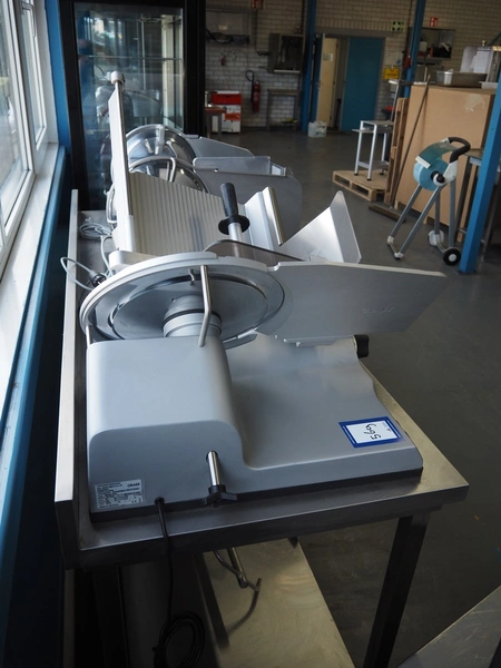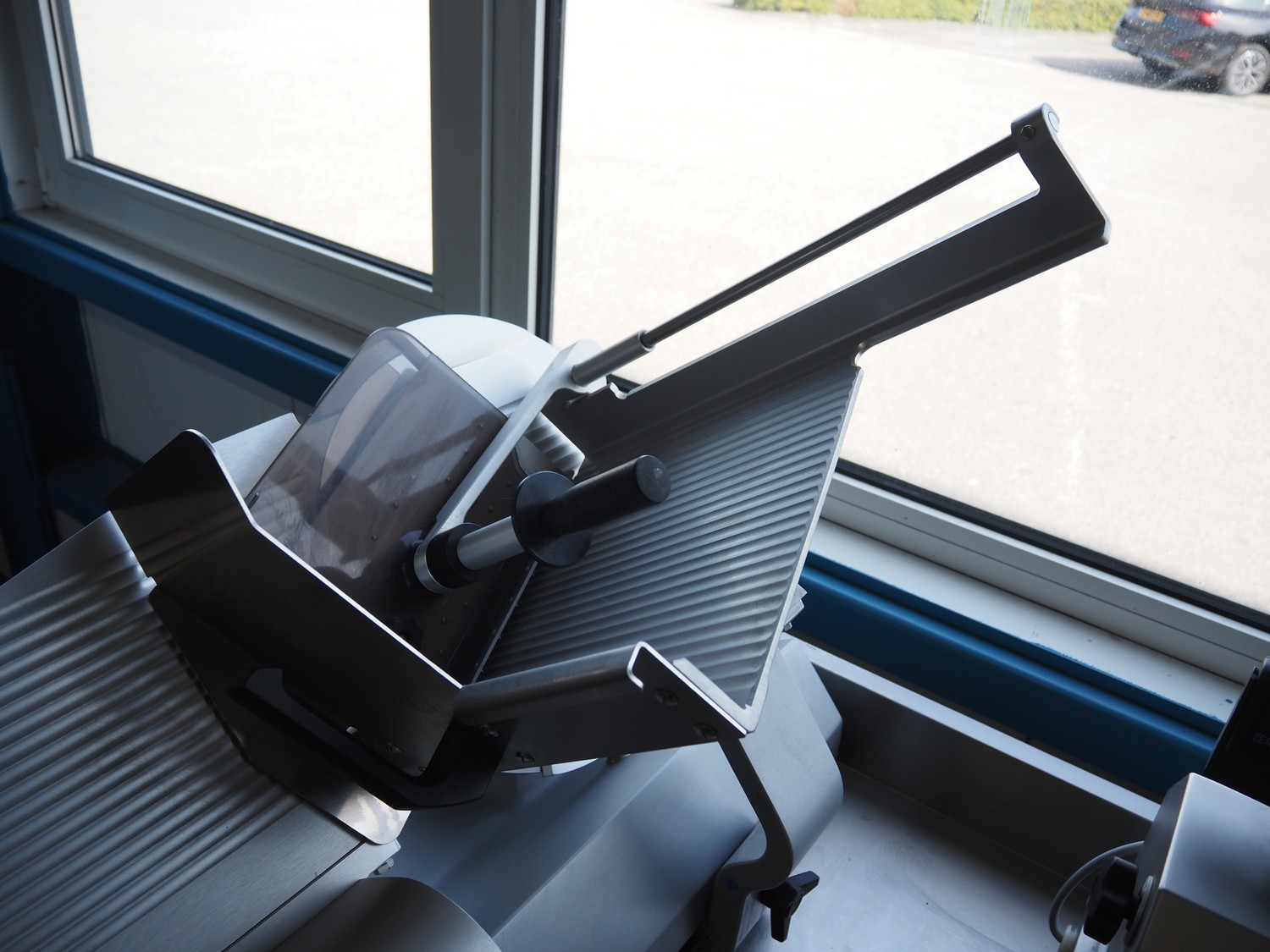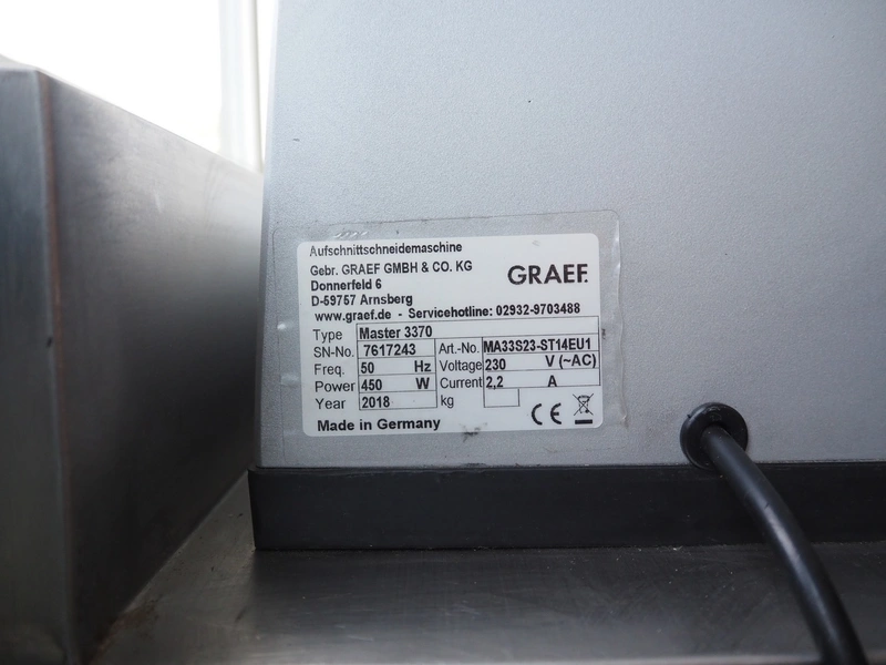 Greaf slicer, type Master 3370, serial number: 7617243, year of construction: 2018, 230 V, 50 Hz, 2.2 A, 450 Watt, dimensions: 710 mm x 630 mm x 650 mm.