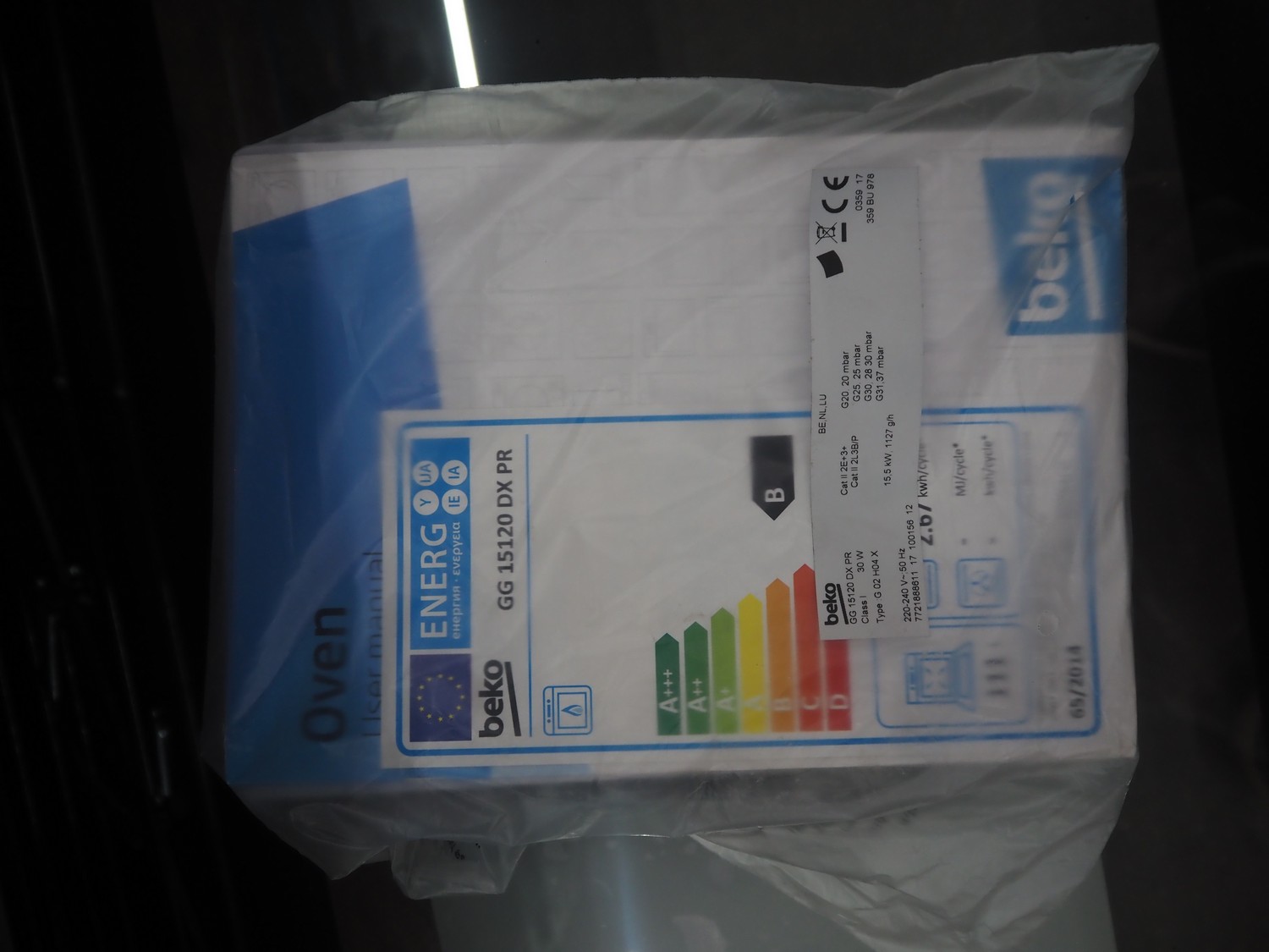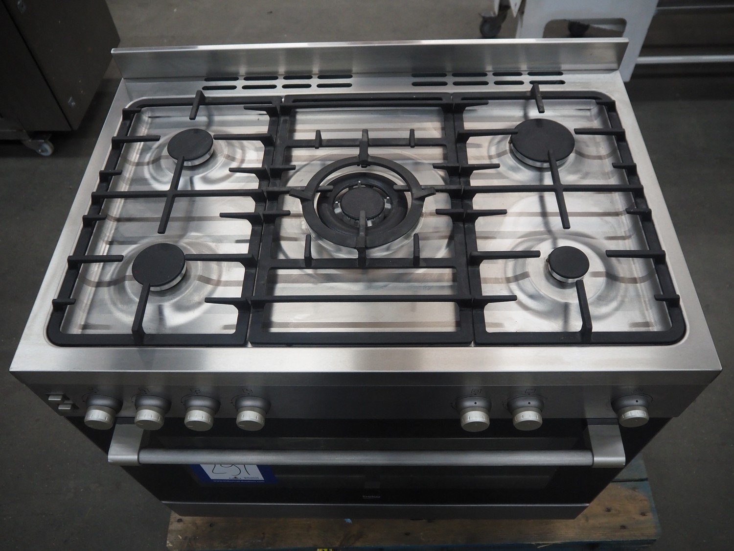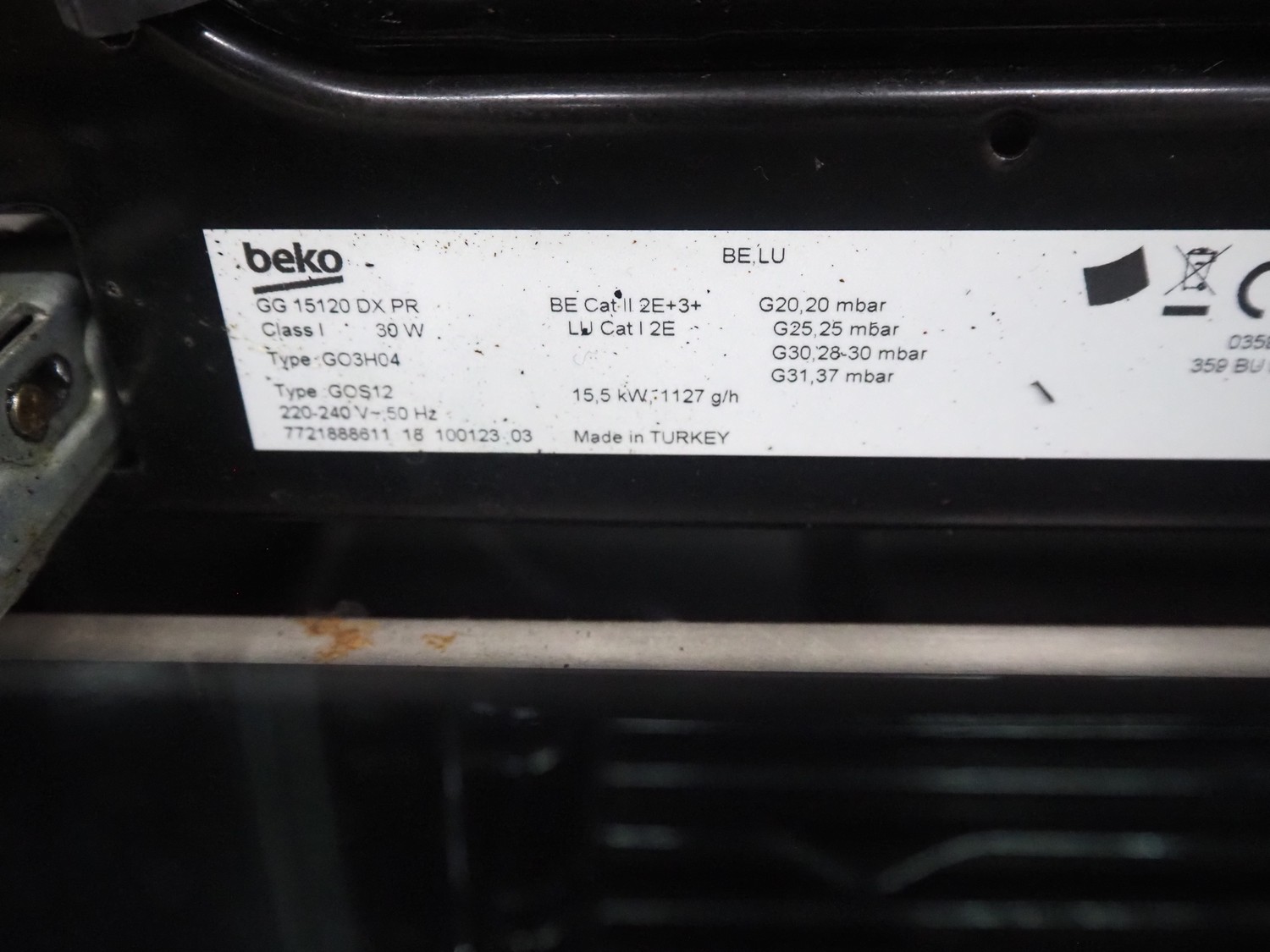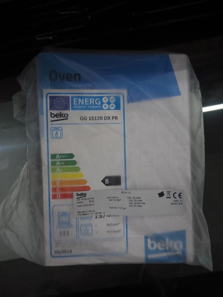 Beko 5-pits gas stove with oven, type: G 03H04, 220-240 V, 50 Hz, 15.5 kW, 1127g/h, dimensions: 900 mm x 650 mm x 800 mm.