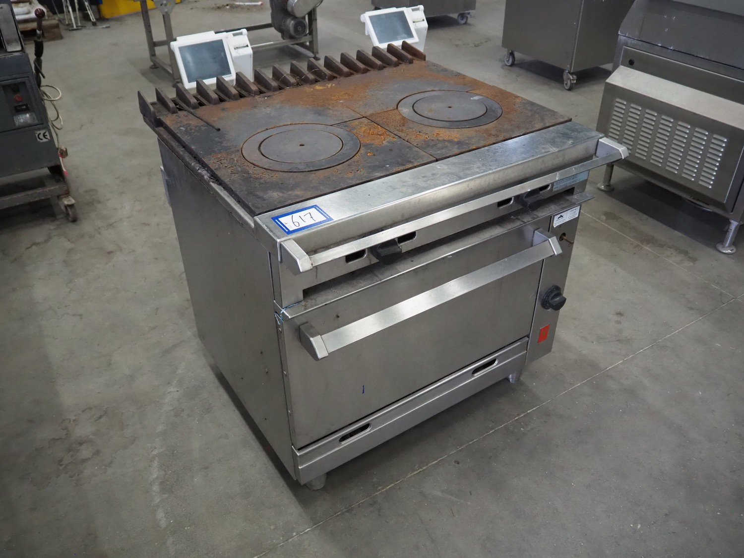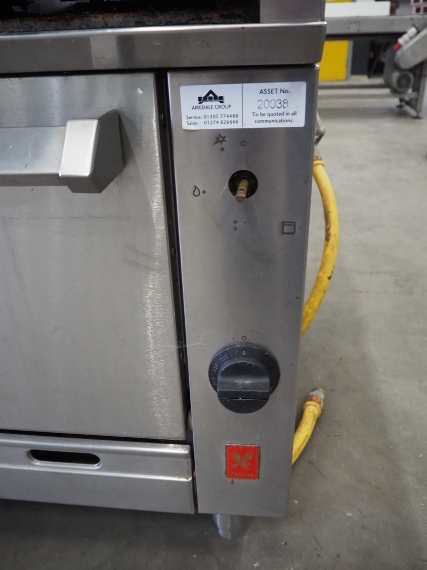 Falcon gas stove with oven, model: G1006FX, serial number: F574077, dimensions: 900 mm x 950 mm x 900 mm.