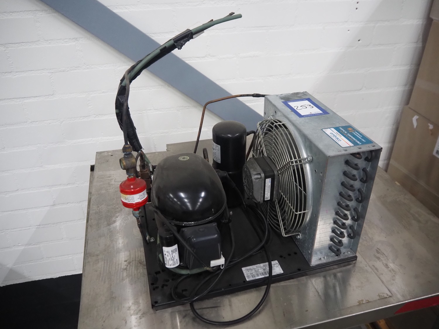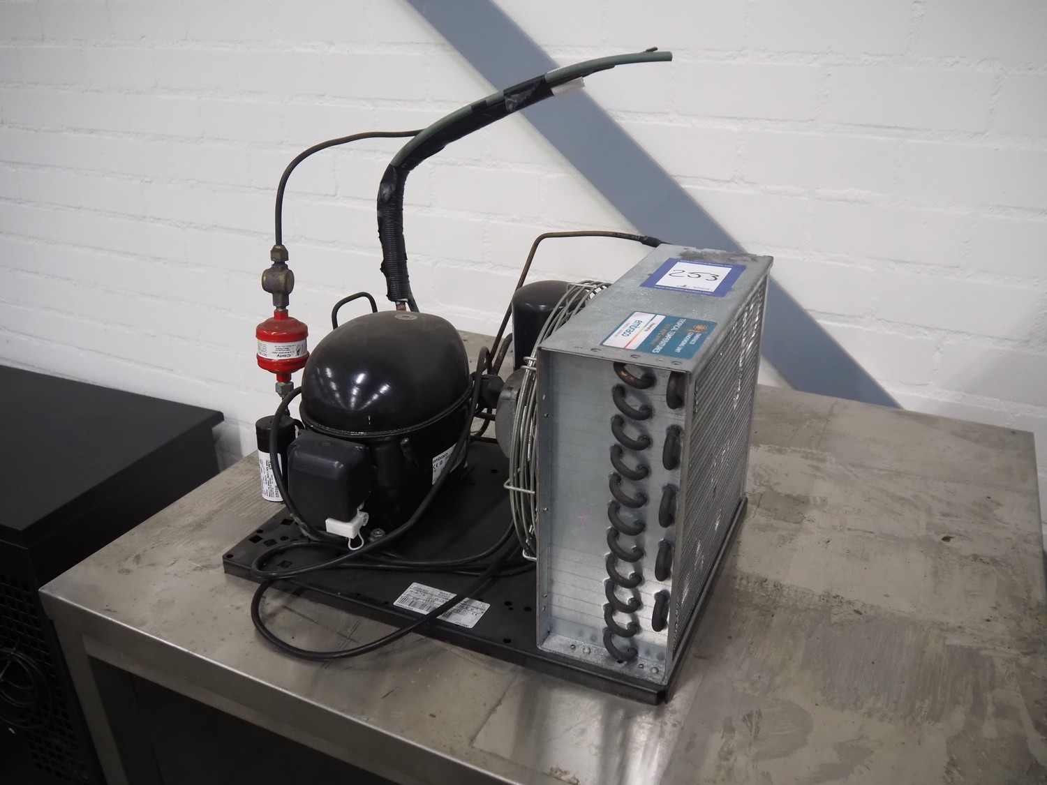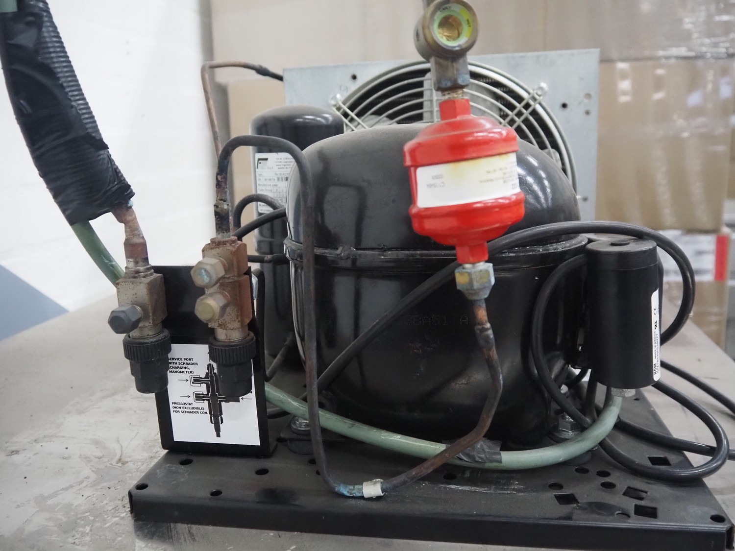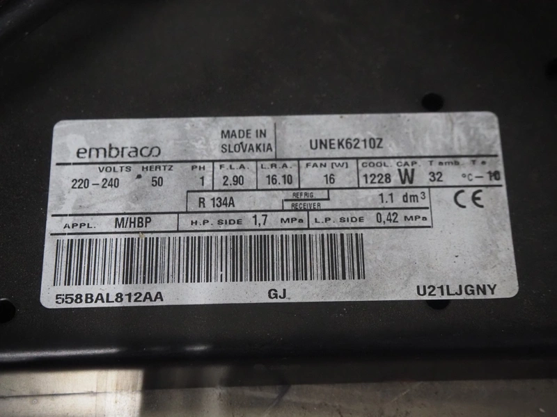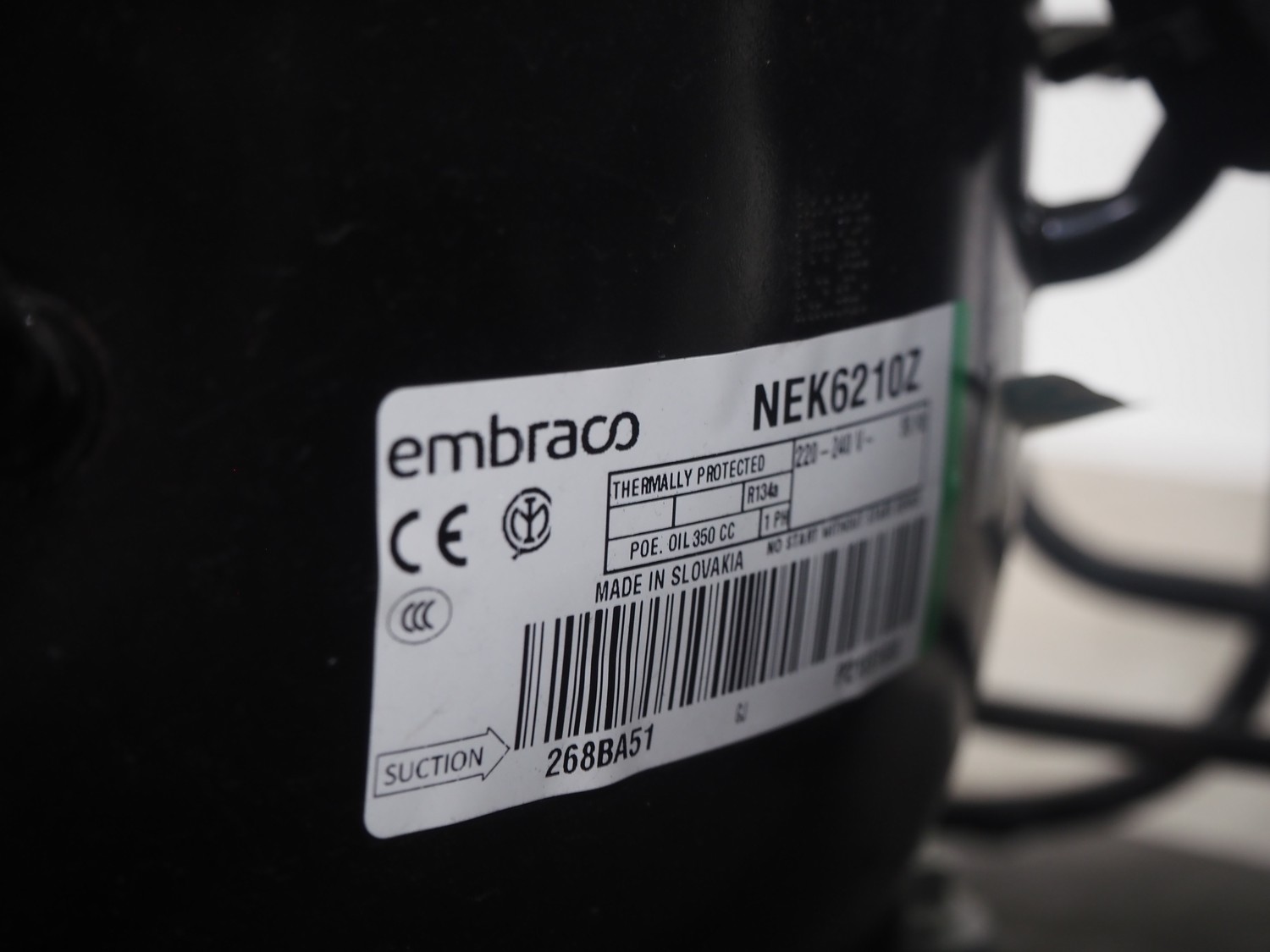 Embraco cooling compressor, type: UNEK6210Z, R 134A, 220-240 V, 1 Ph, 50 Hz, dimensions: 350 mm x 400 mm x 400 mm.