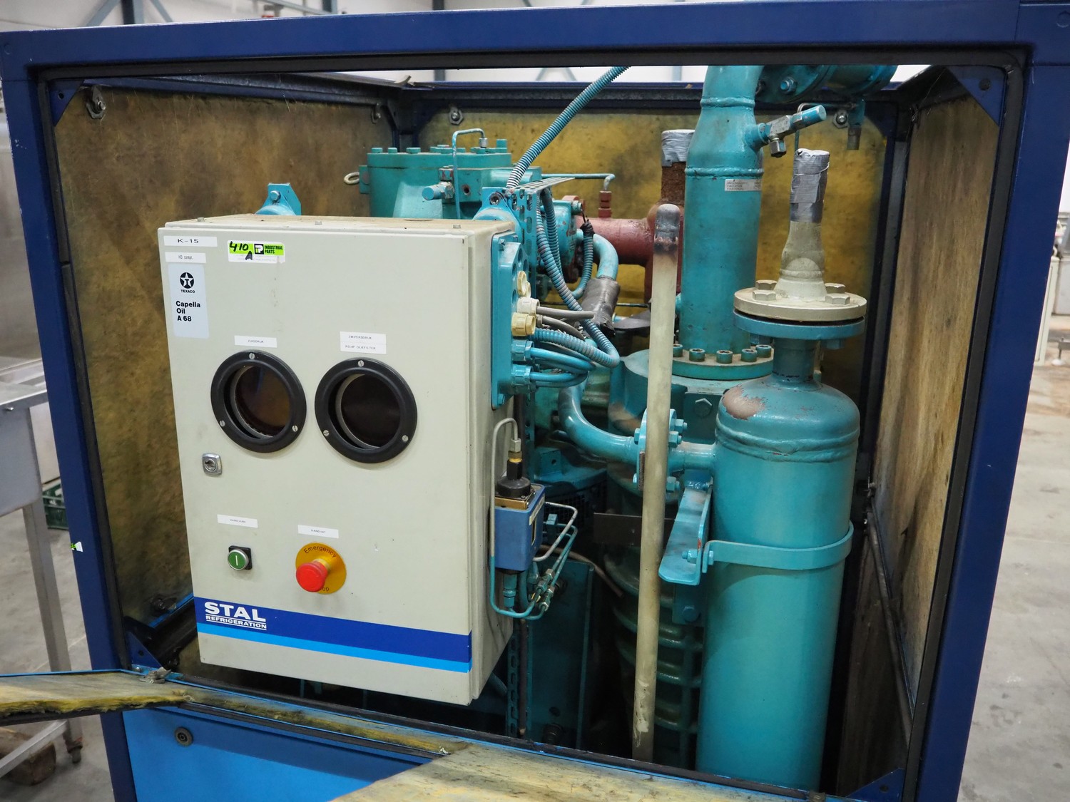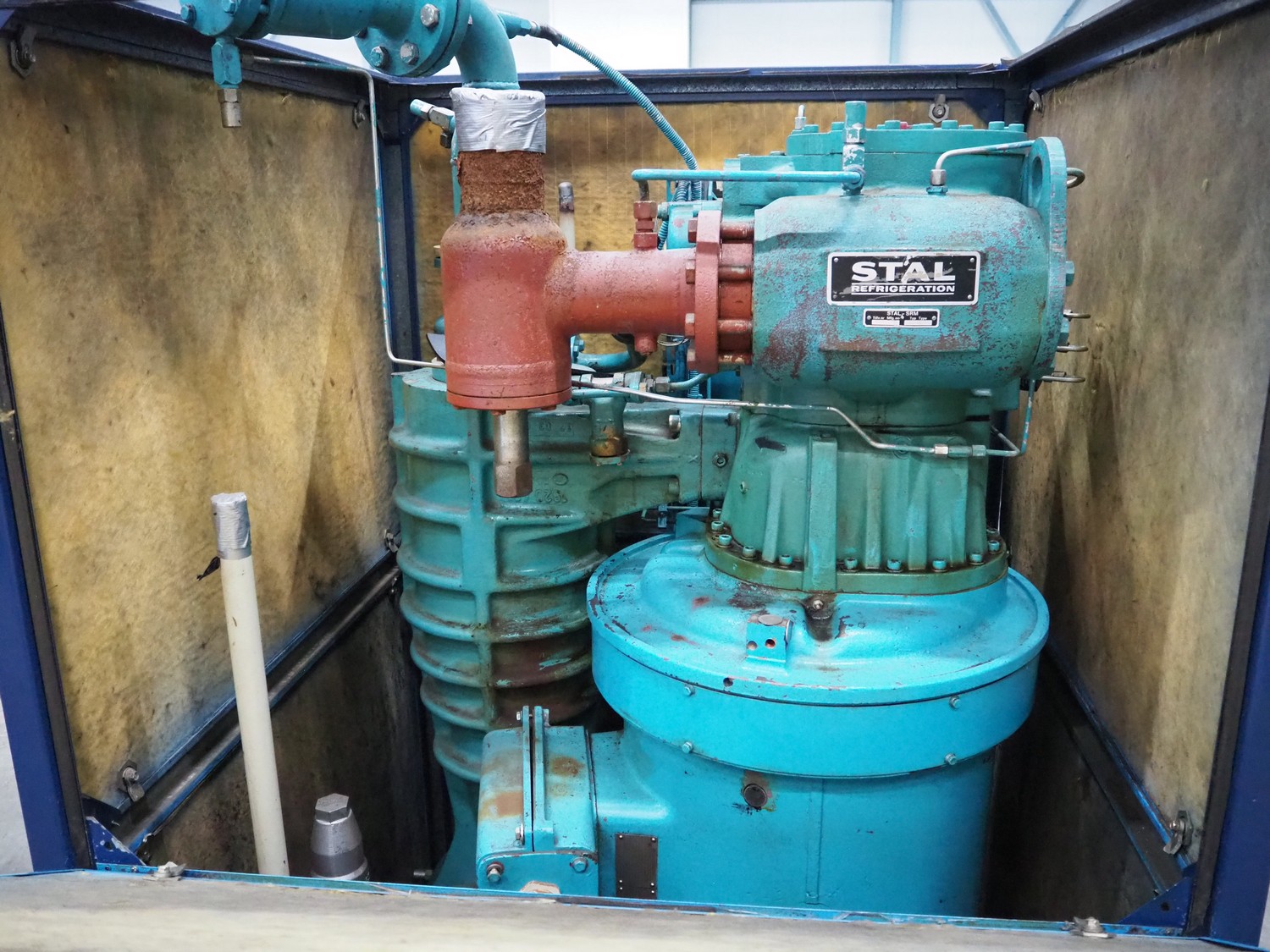 Stal Refrigeration mini screw compressor unit, dimensions: 1200 mm x 1200 mm x 1950 mm.