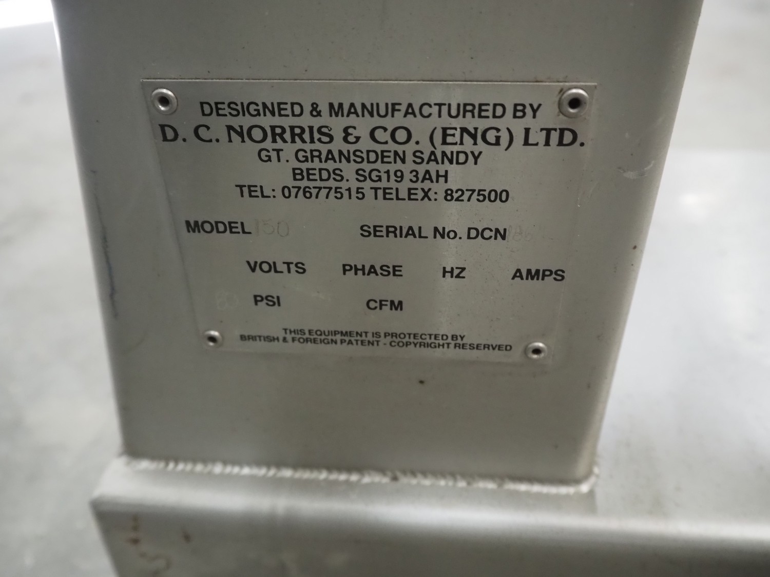 D.C. Norris & Co. can opener, model: 150, can diameter: 150 mm, total dimensions: 400 mm x 280 mm x 900 mm.
