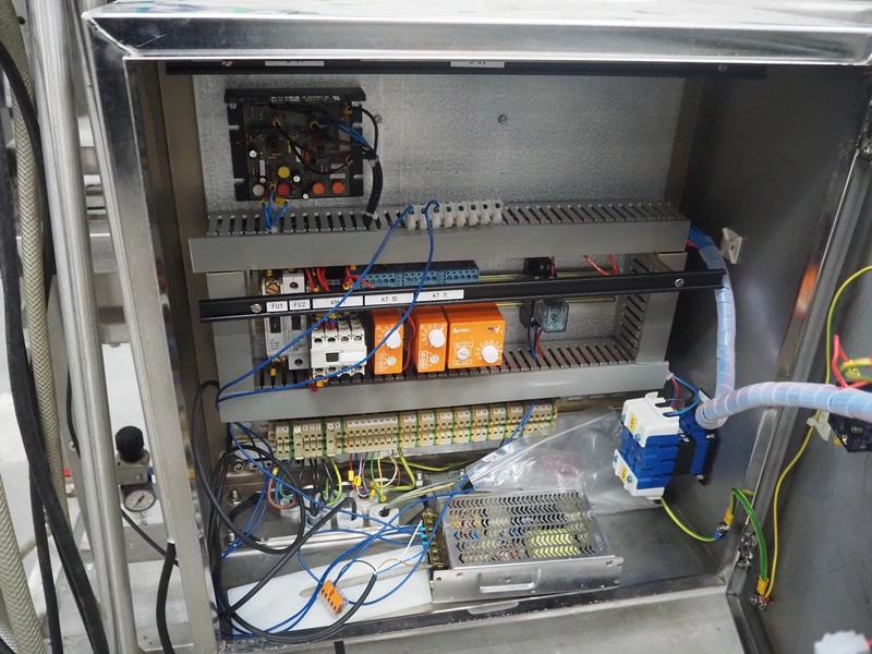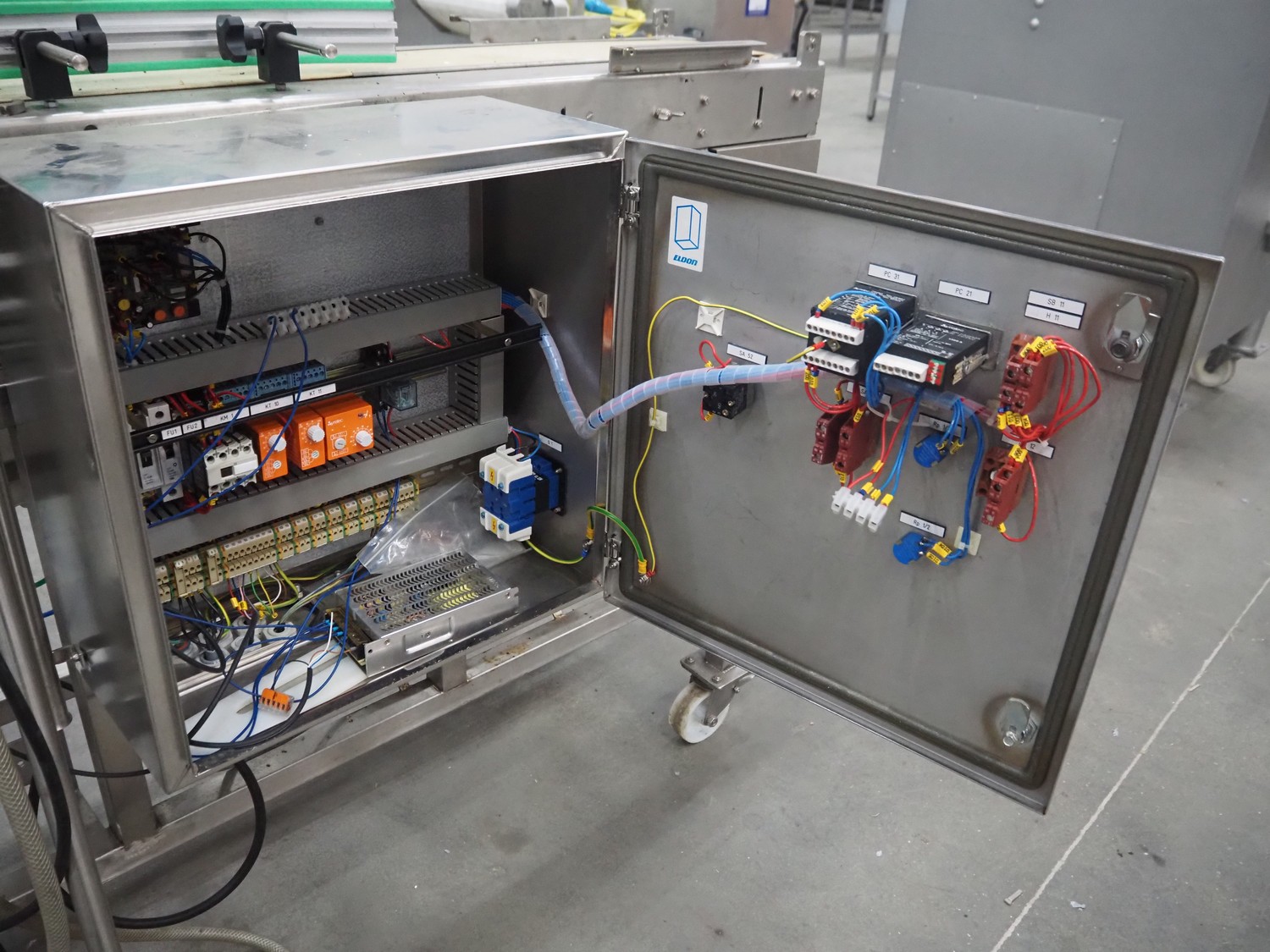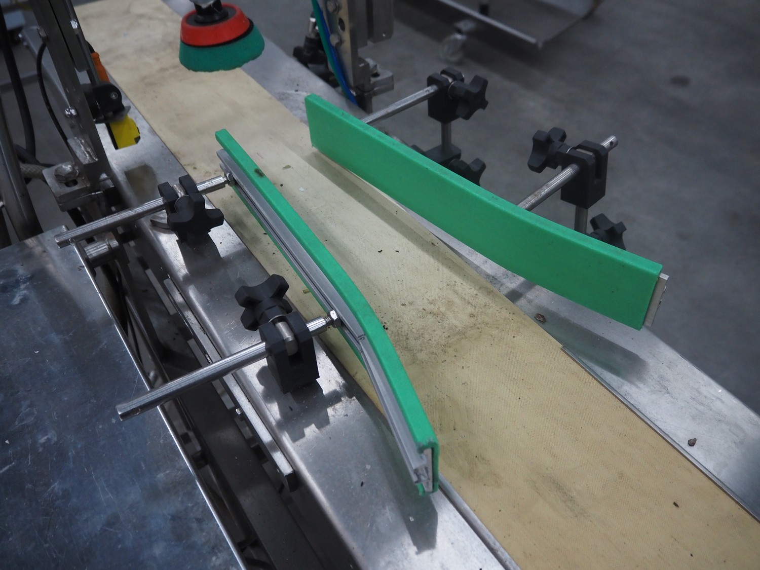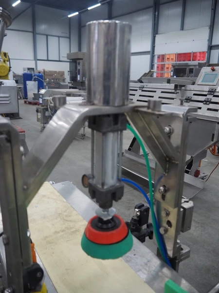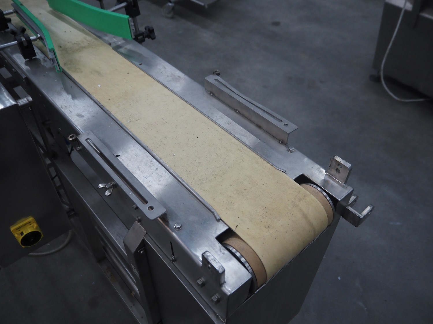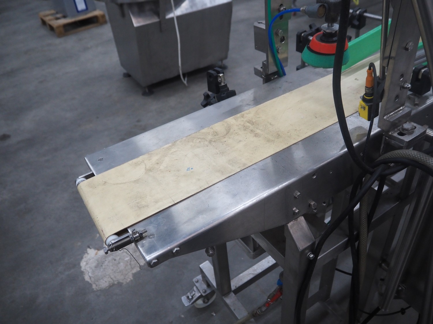 Mobile portioning belt, s/s frame, plastic belt, belt width: 150 mm, total dimensions: 1750 mm x 700 mm x 1400 mm.