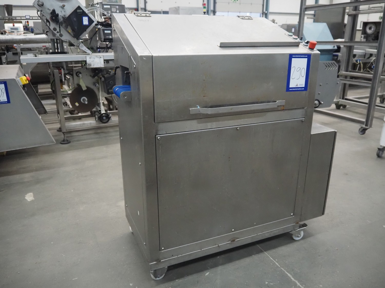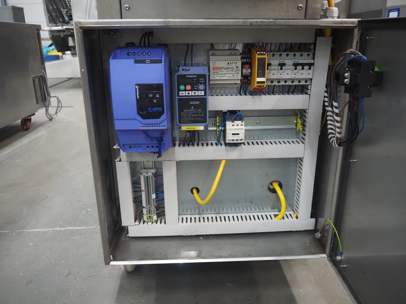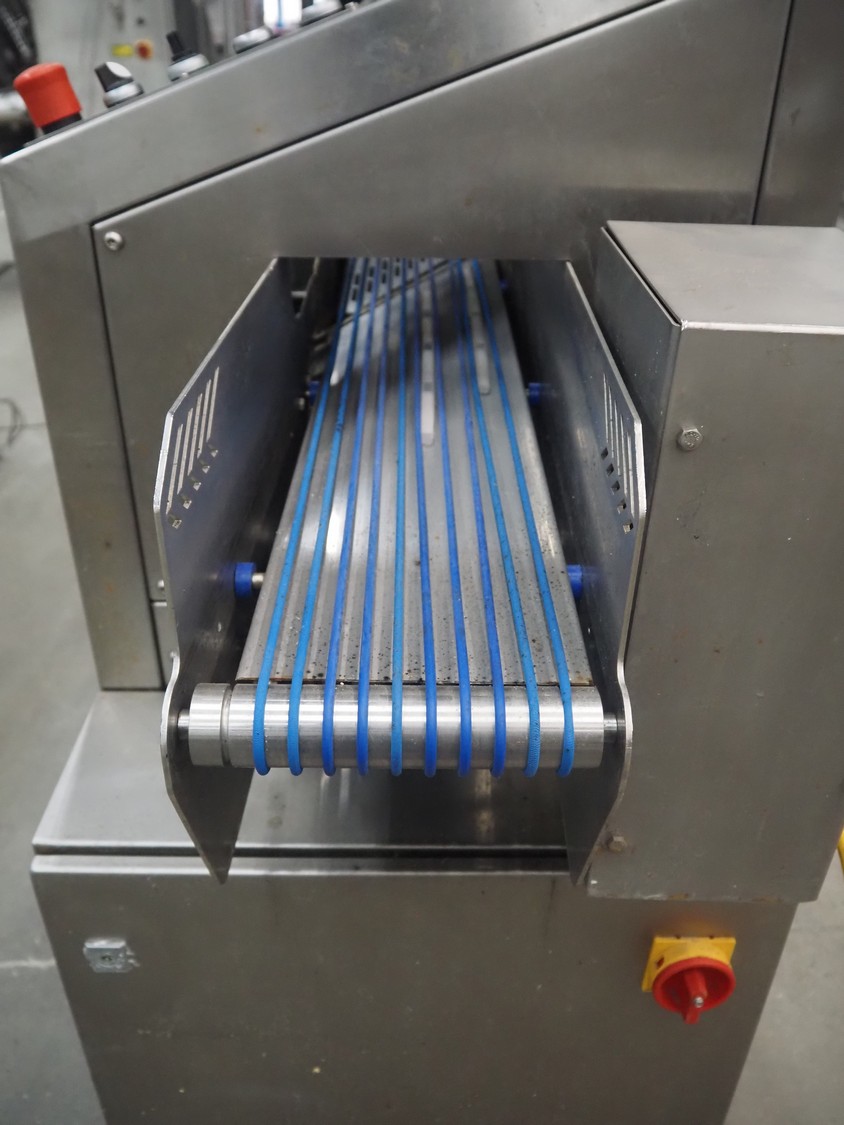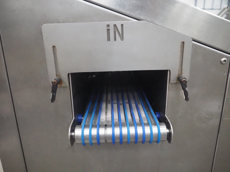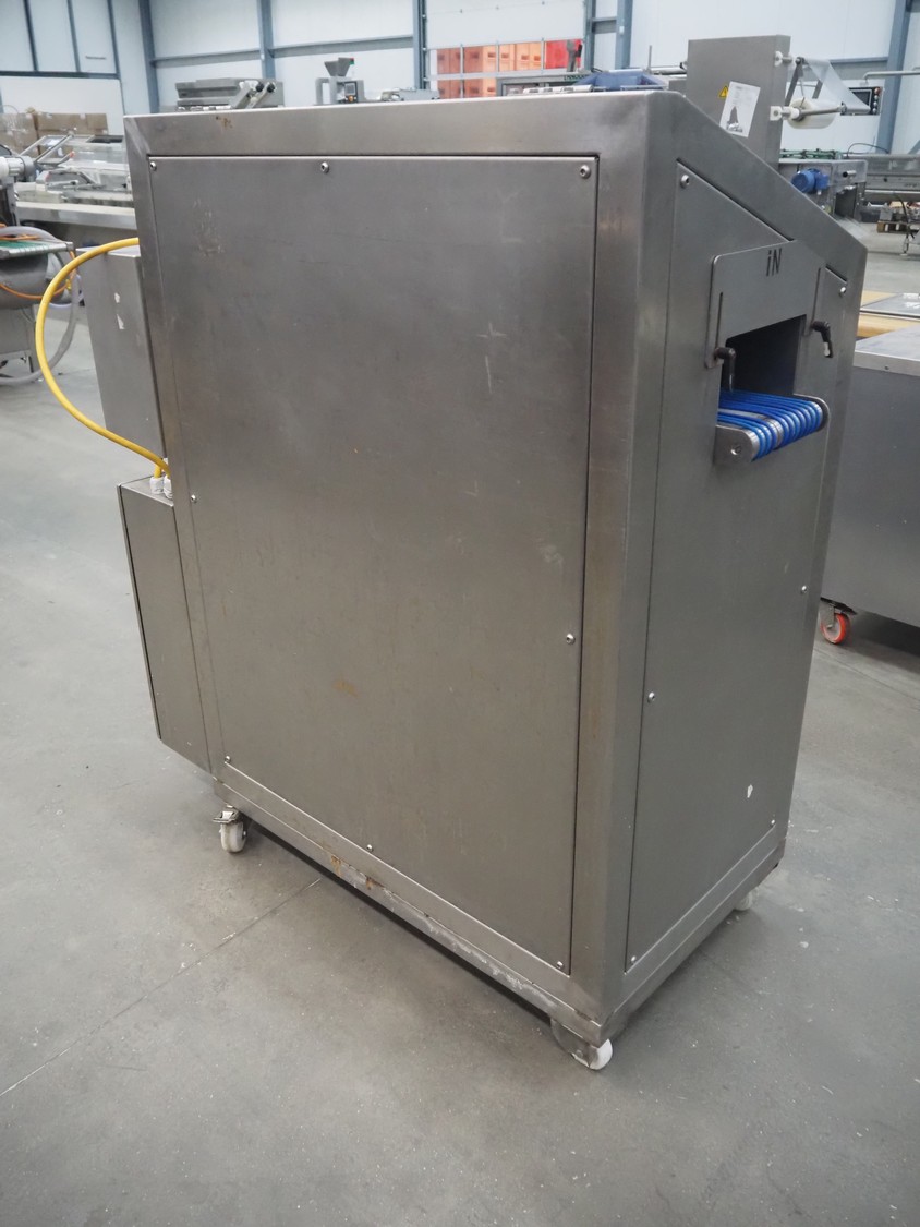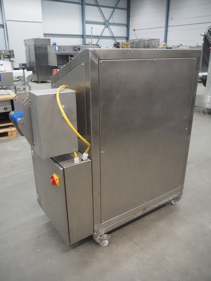 Mobile dryer with plastic wired belt, belt width: 150 mm, clearance: 210 mm x 120 mm, total dimensions: 1410 mm x 600 mm x 1400 mm.