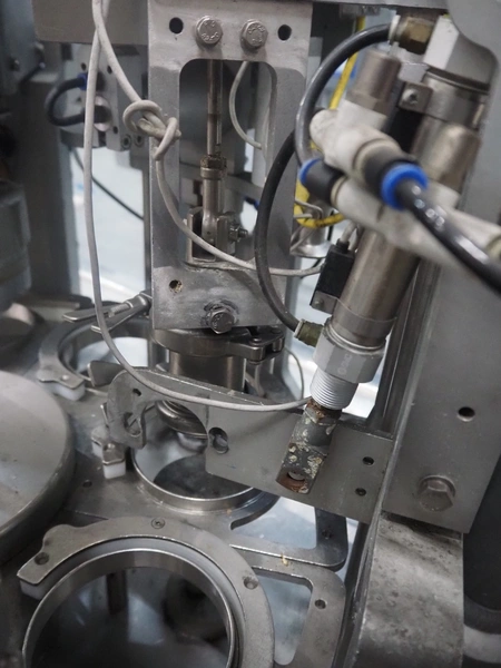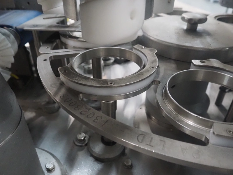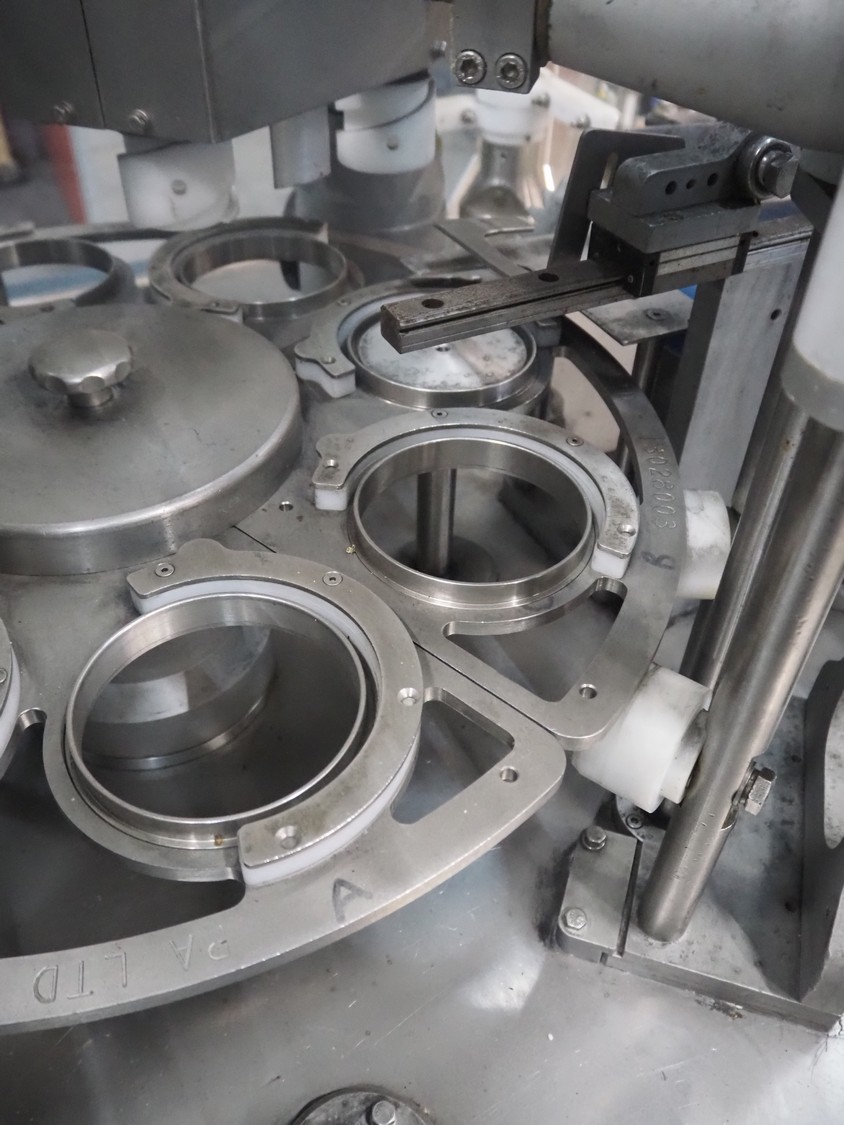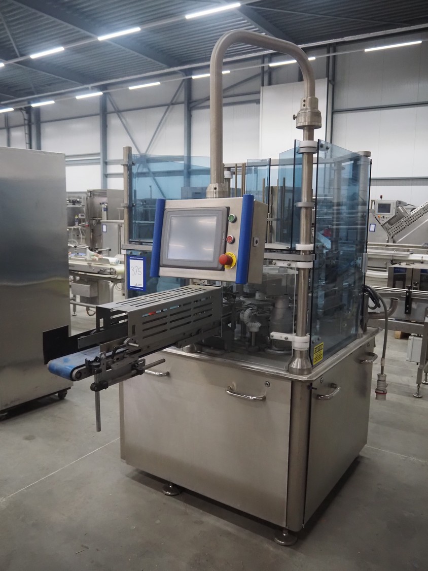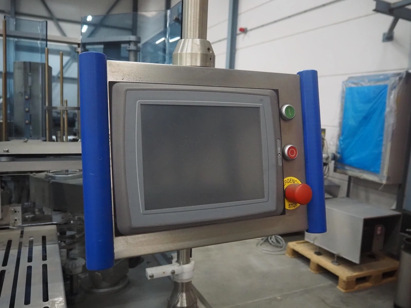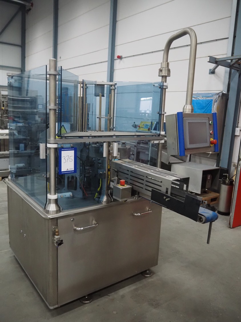 Cup filling and sealing machine, diameter cups, 105 mm, belt width: 120 mm, total dimensions: 1300 mm x 2100 mm x 2350 mm. Including pallet with parts.