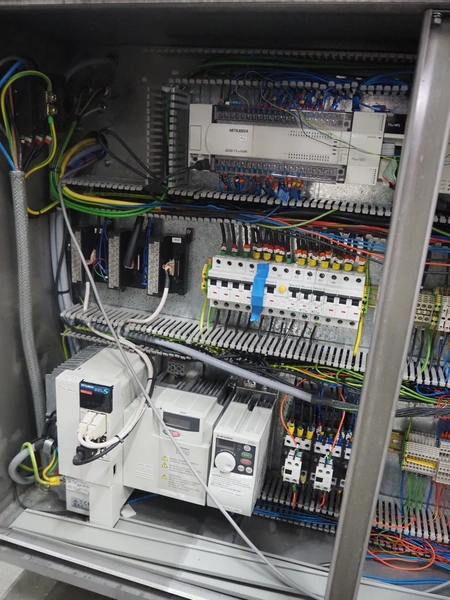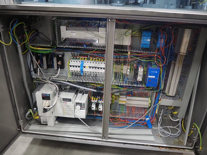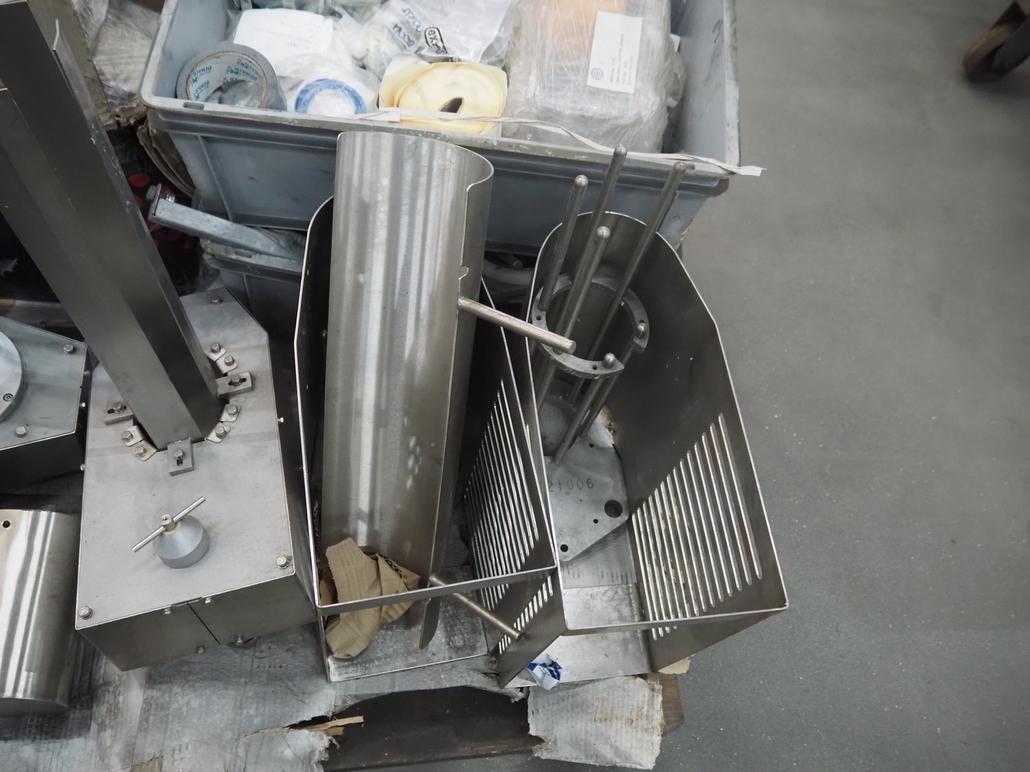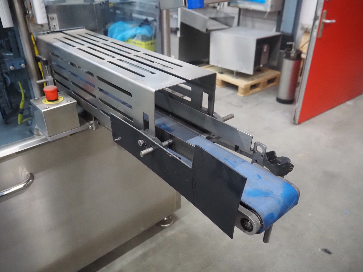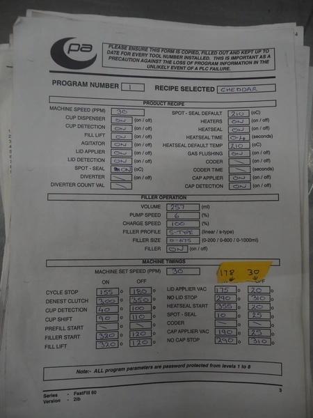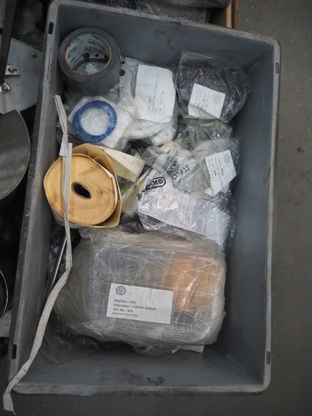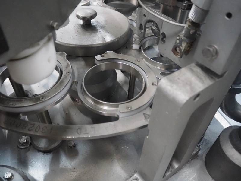 Cup filling and sealing machine, diameter cups, 105 mm, belt width: 120 mm, total dimensions: 1300 mm x 2100 mm x 2350 mm. Including pallet with parts.