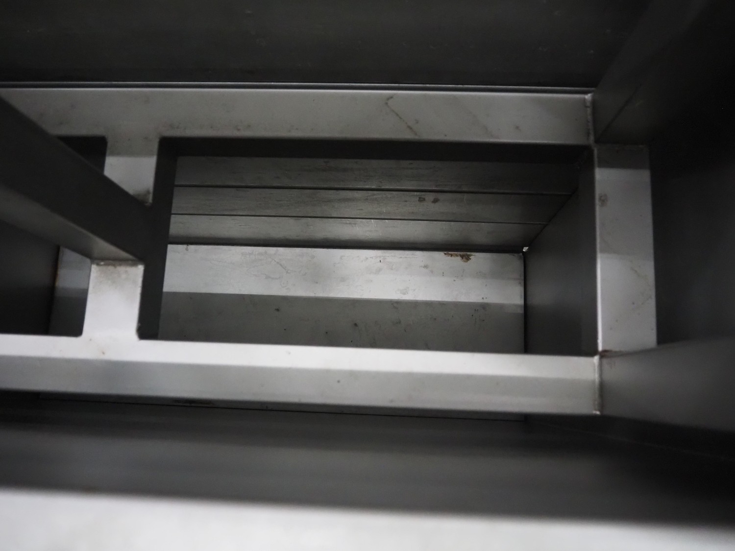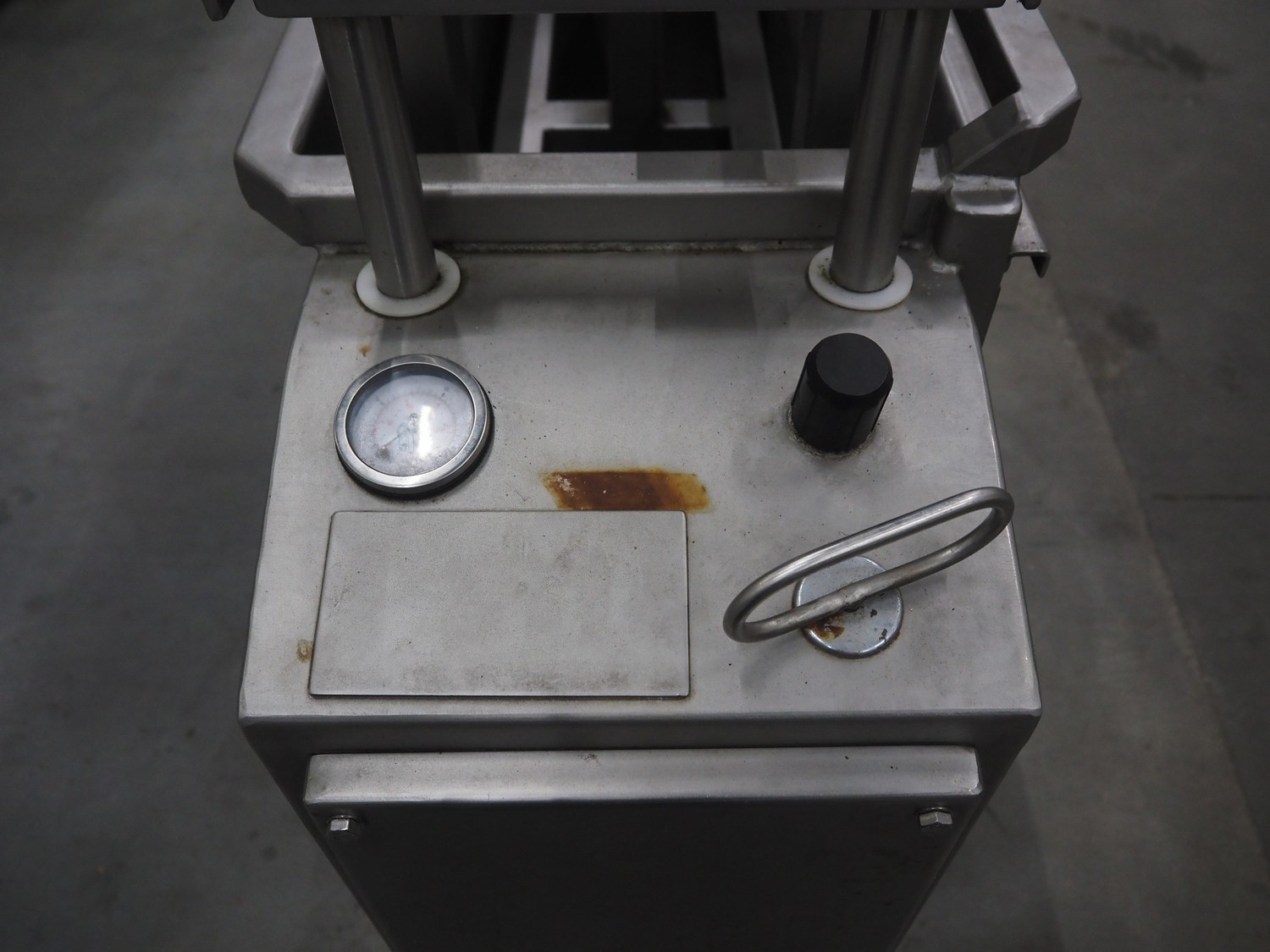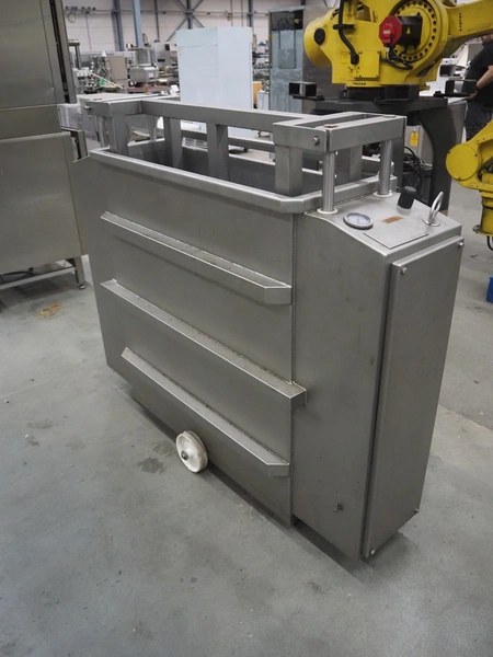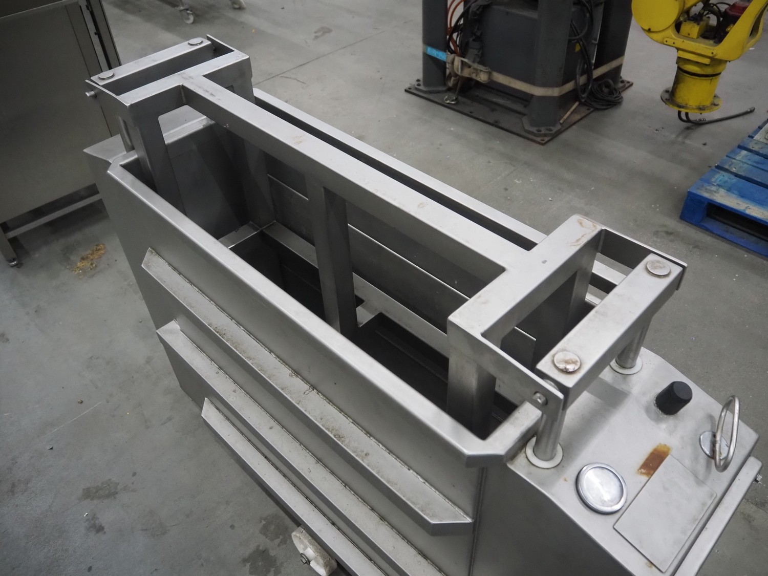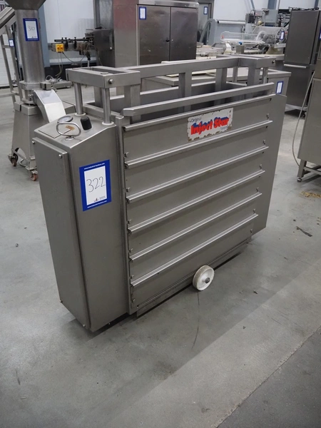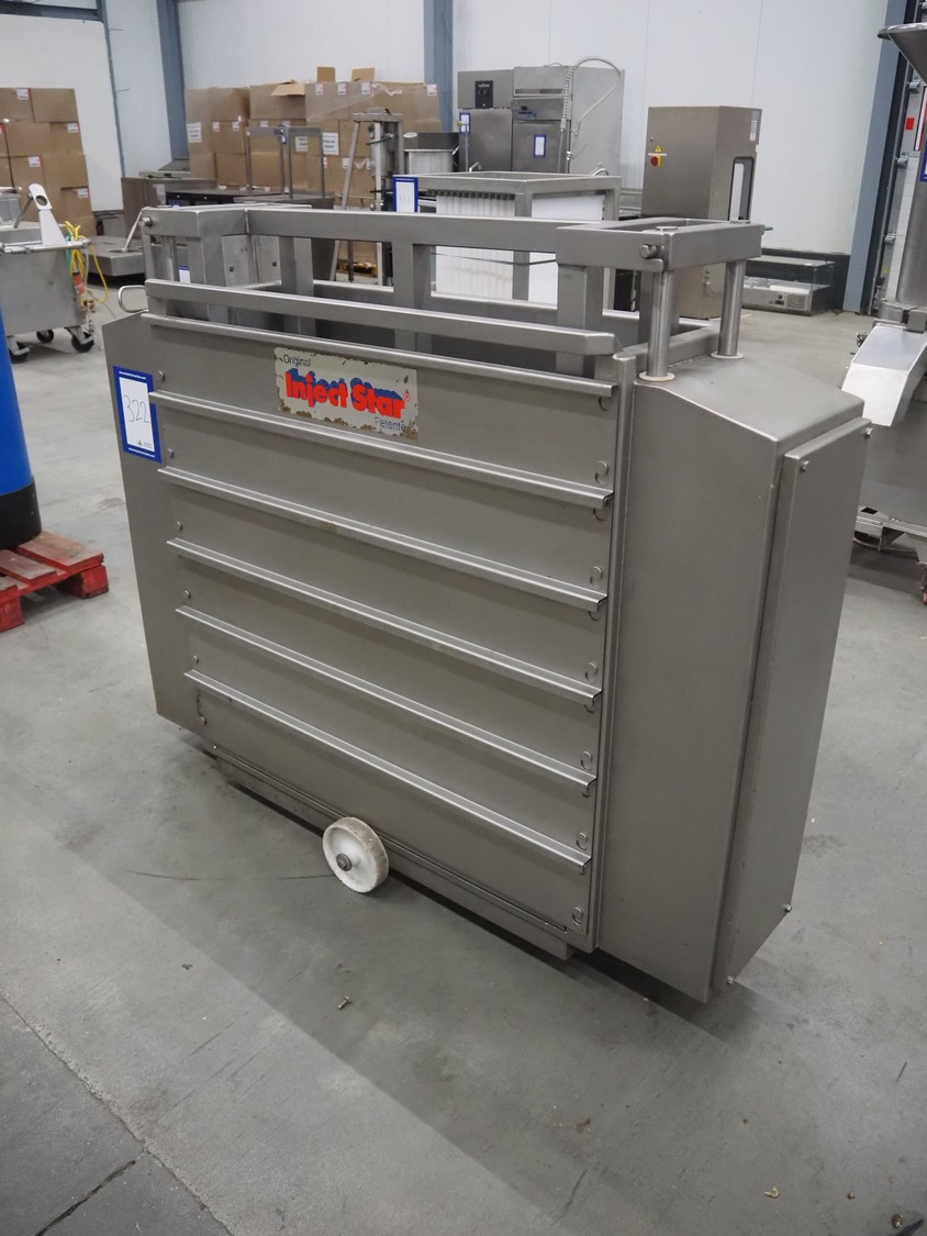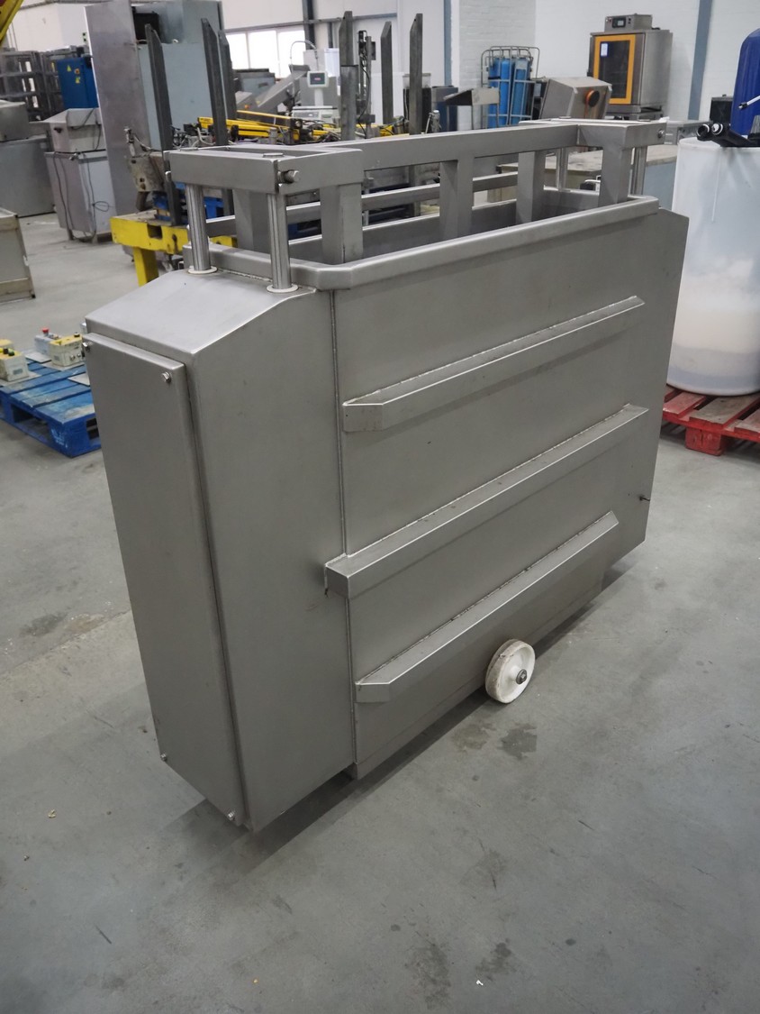 Inject Star mobile ham press, inside dimensions: 1000 mm x 350 mm, total dimensions: 1600 mm x 450 mm x 1340 mm.