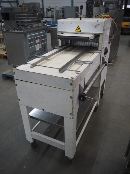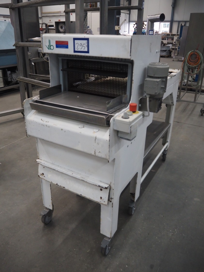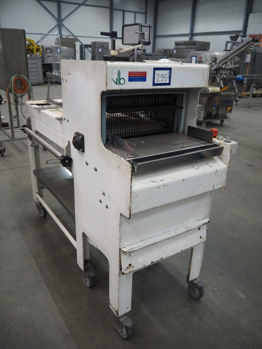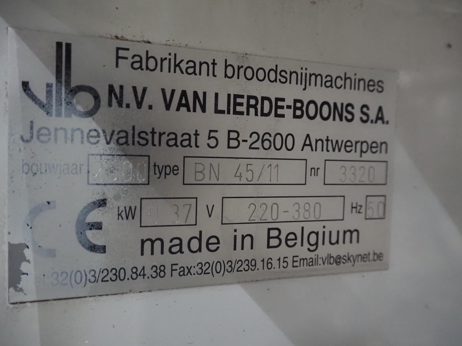 VLB mobile bread slicer, type: BN 45/11, number: 3320, year of construction: 2000, 220-380 V, 50 Hz, 0.37 kW, belt width: 400 mm, total dimensions: 1550 mm x 700 mm x 1400 mm.