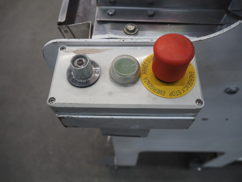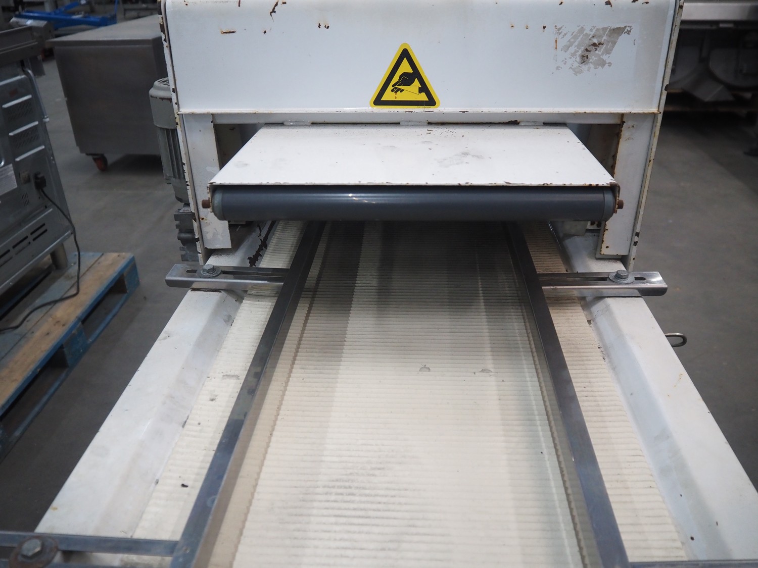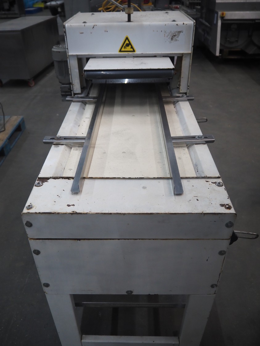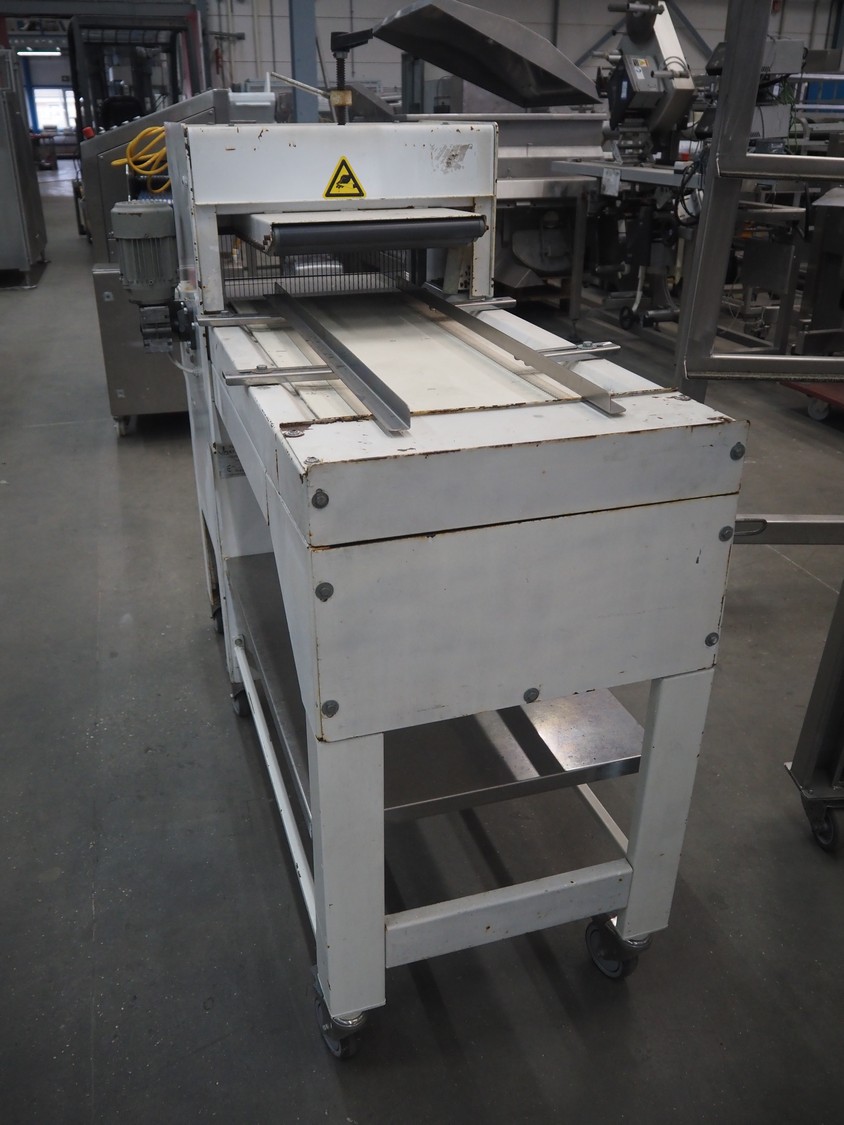 VLB mobile bread slicer, type: BN 45/11, number: 3320, year of construction: 2000, 220-380 V, 50 Hz, 0.37 kW, belt width: 400 mm, total dimensions: 1550 mm x 700 mm x 1400 mm.