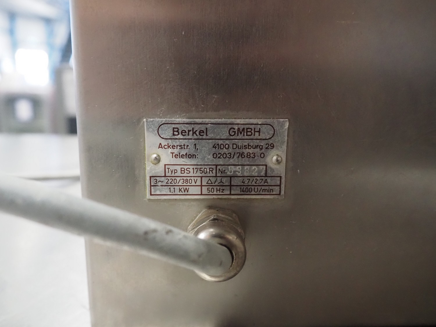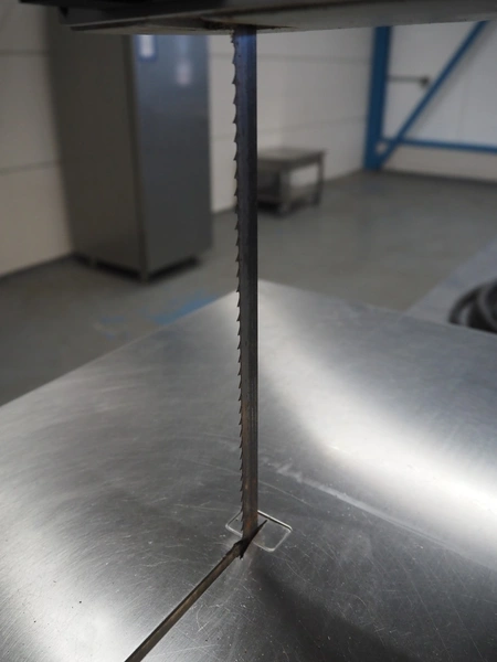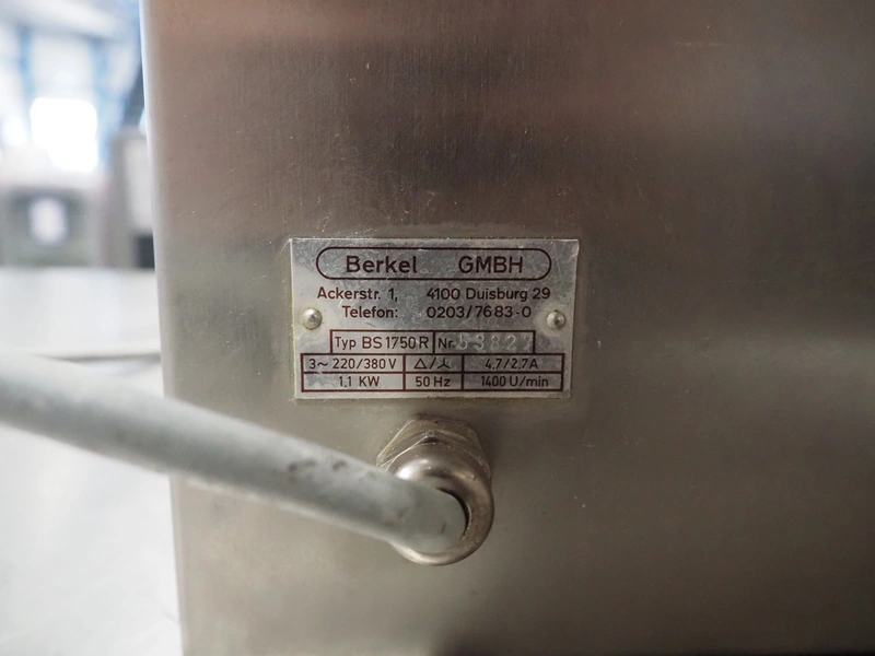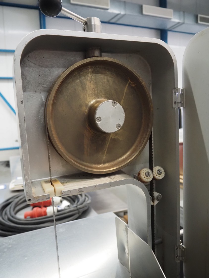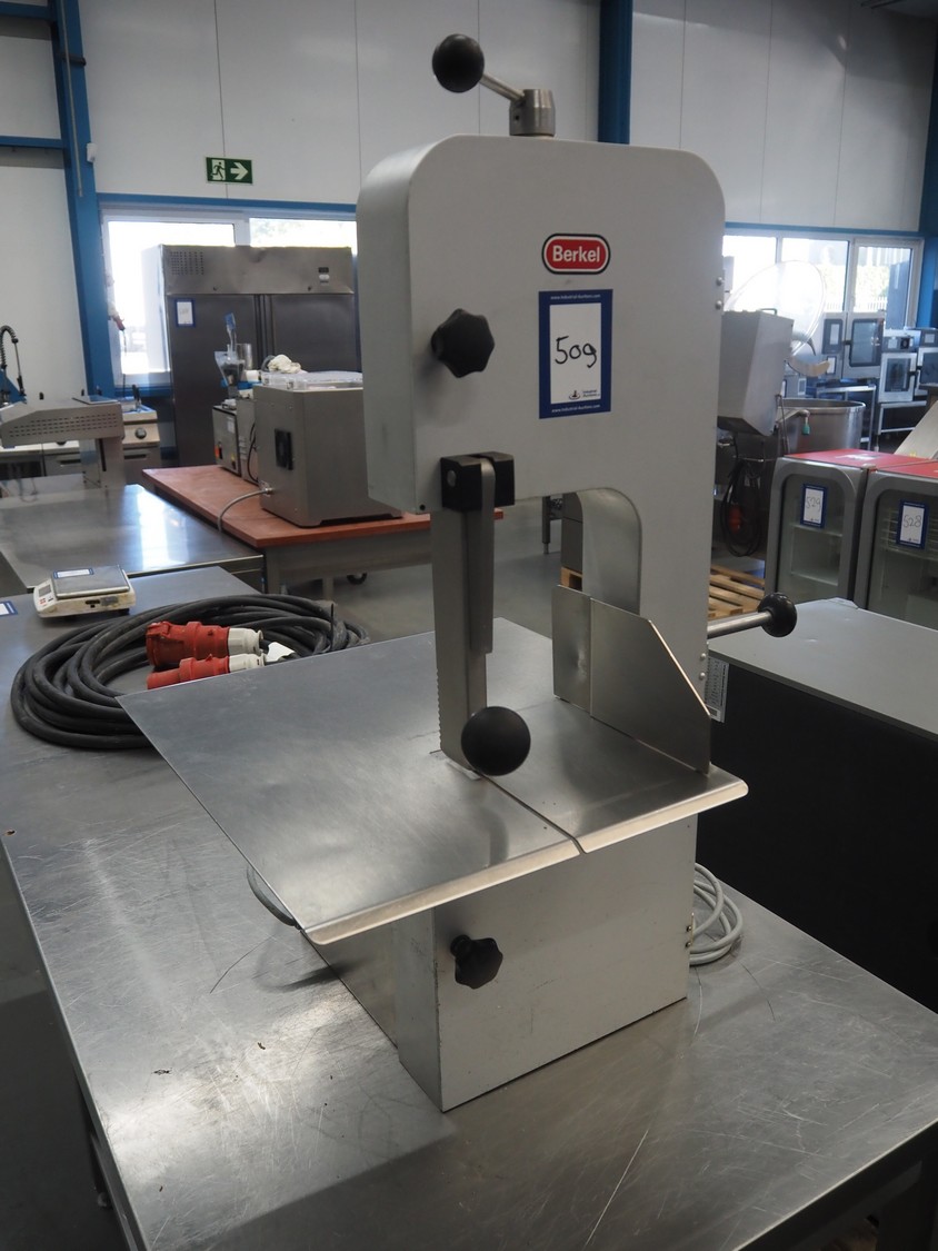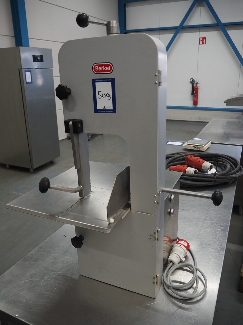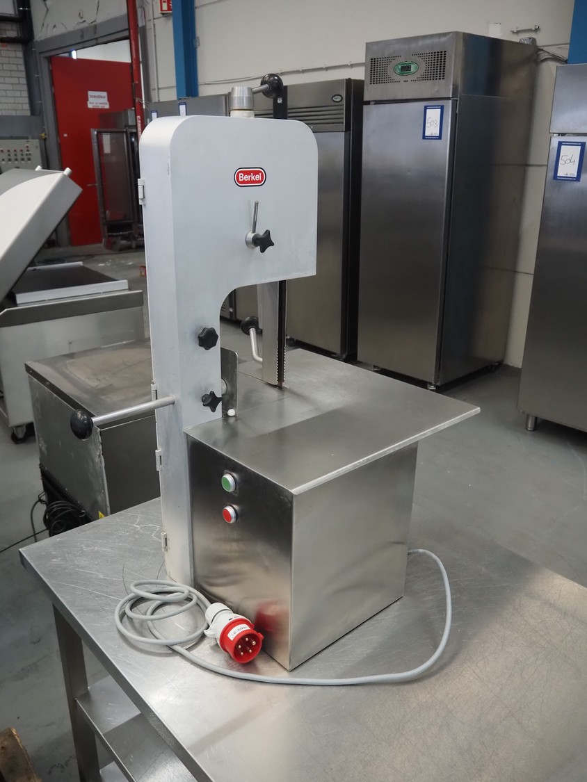 Berkel bandsaw, type: BS1750 R, number: 53827, 220/380 V, 3 Ph, 50 Hz, 1.1 KW, dimensions: 520 mm x 490 mm x 950 mm.
