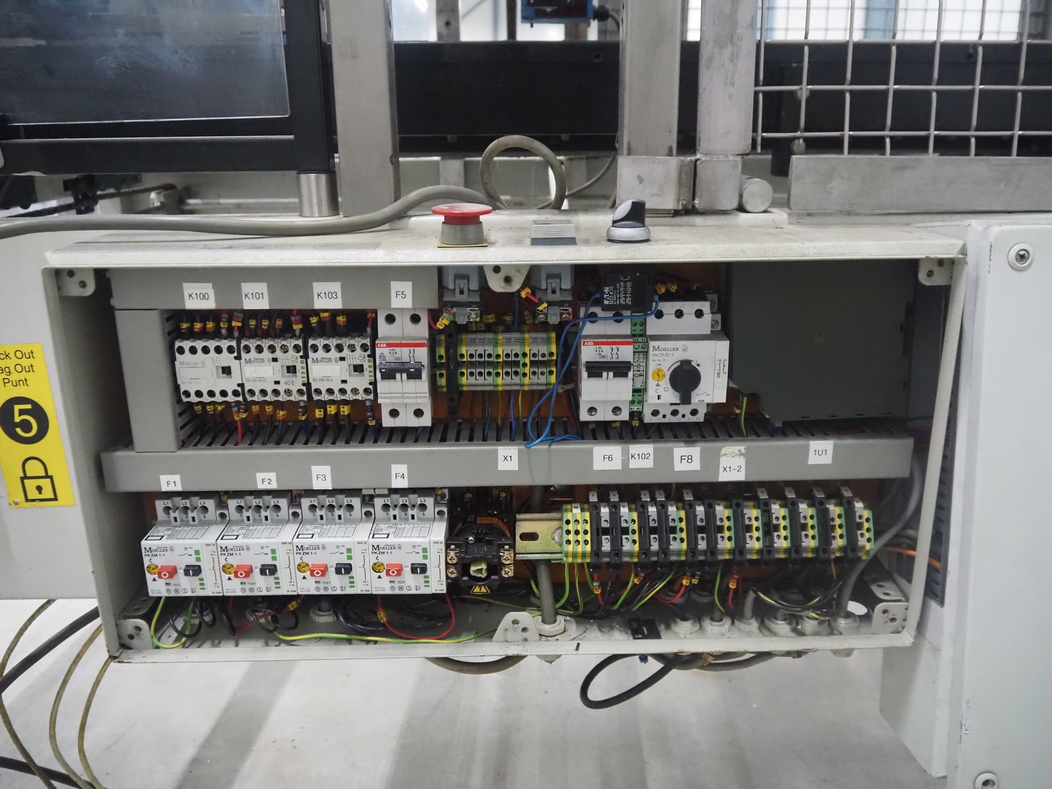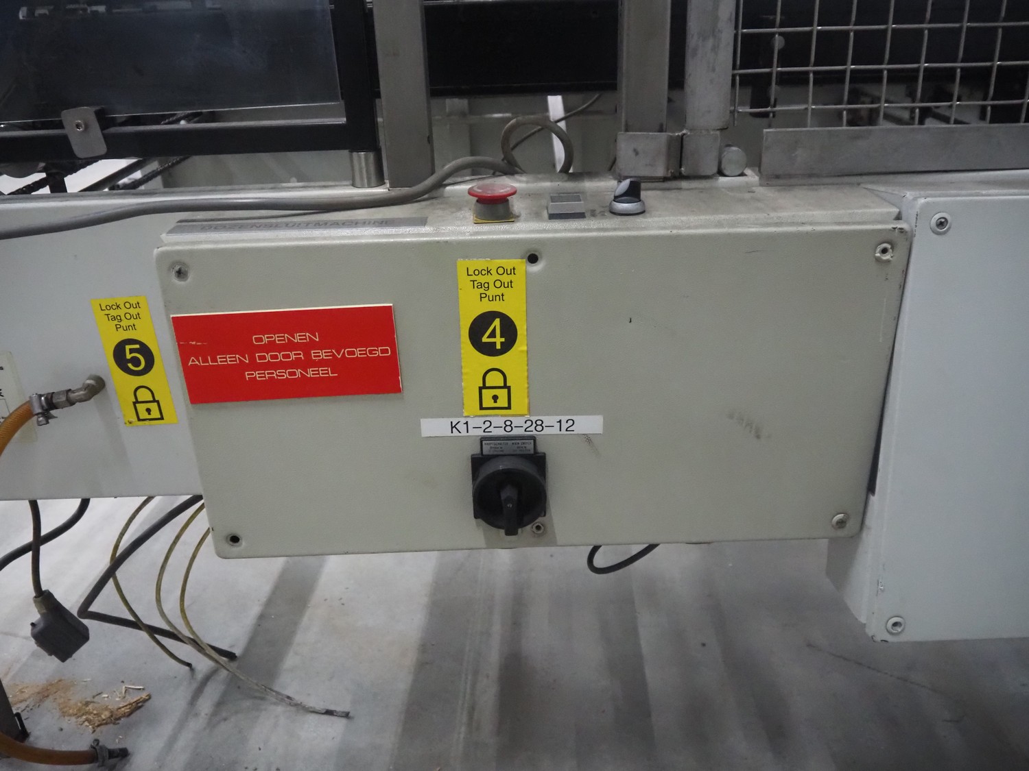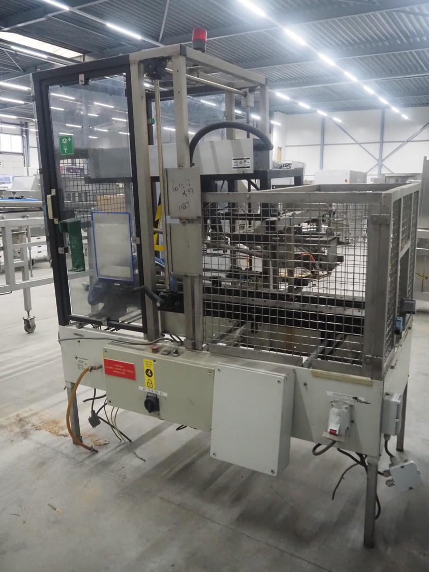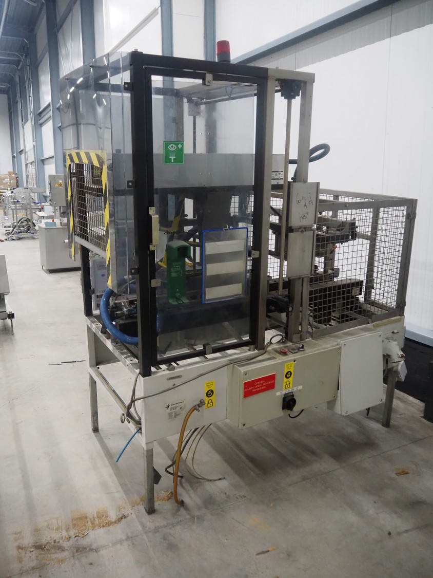 Supertape box closing machine, type: HF-7, machine number: 95-74301, year of construction: 1995, 400 V, 3 Ph, 50 Hz, 4.5 A, weight: 195 kg, dimensions: 1700 mm x 1050 mm x 2200 mm.