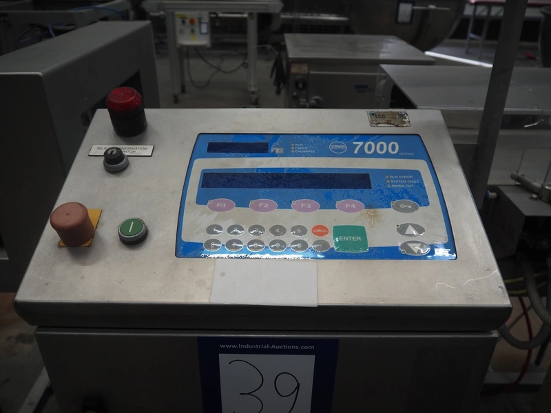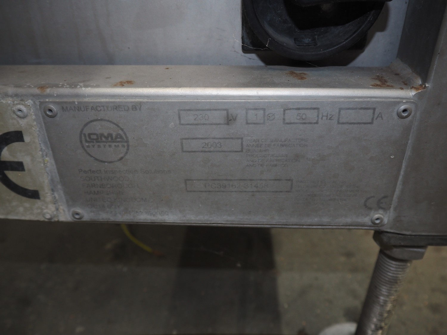 Loma Systems metal detector with checkweigher and rejector, model: 7000 series, year of construction: 2003, 230 V, 1 Ph, 50 Hz, plastic belt, belt width: 250 mm, total dimensions: 1650 mm x 1000 mm x 1370 mm.