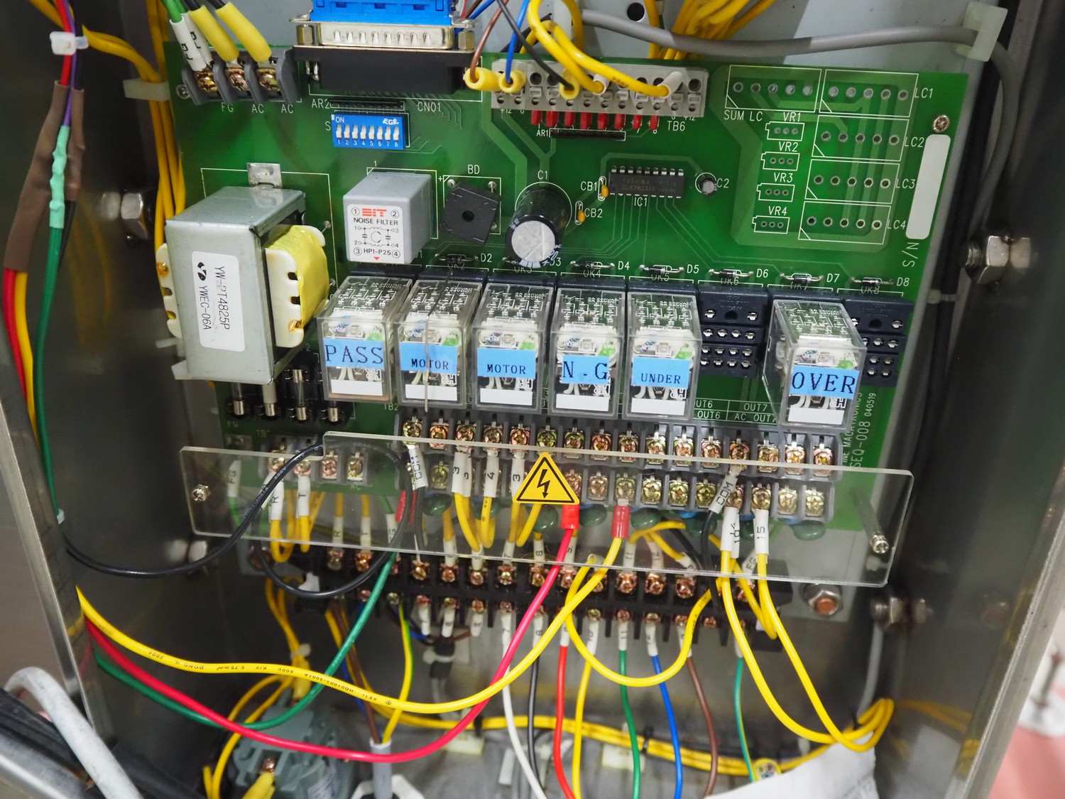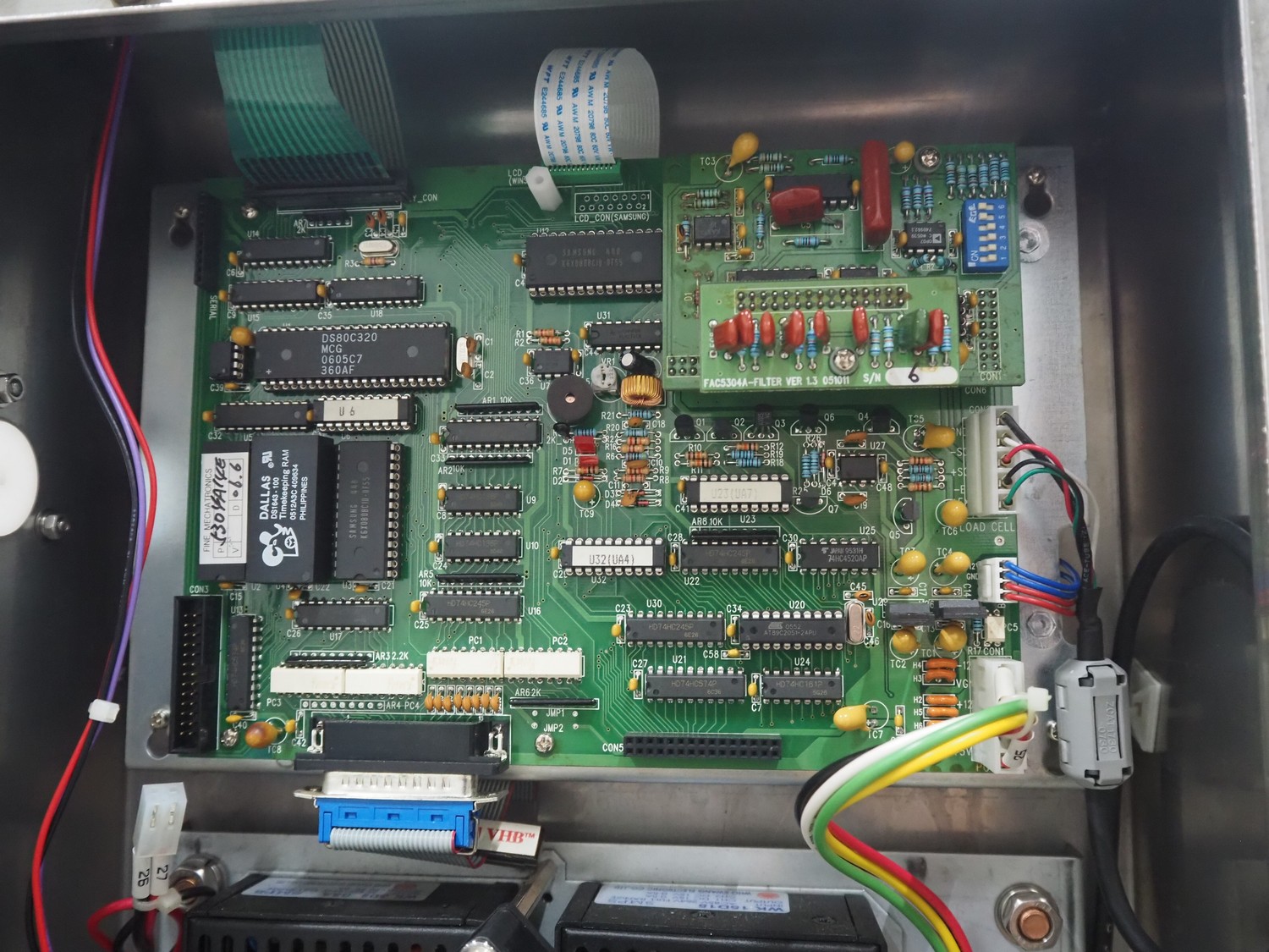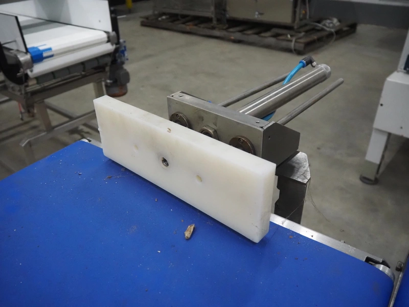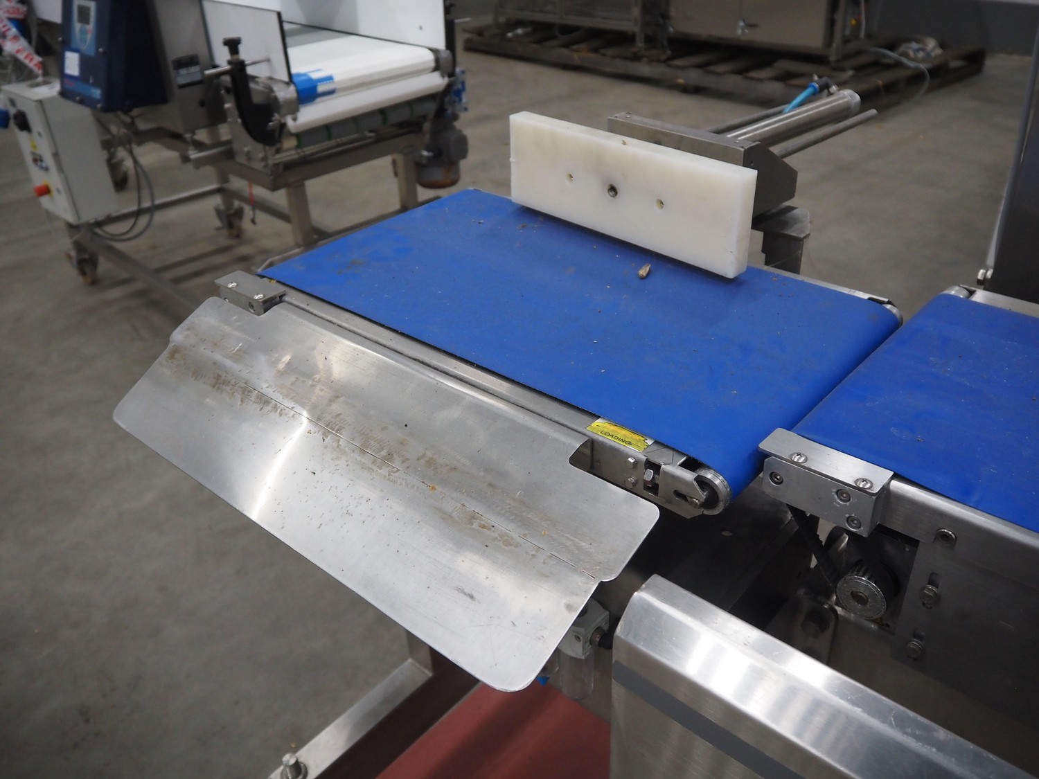 Fine Interkorea checkweigher with rejecter, model: FAC-5500 W335 535, serial number: E065031, year of construction: 2006/06, weight range: 1-500 gram, plastic belt, belt width: 300 mm, total dimensions: 1670 mm x 900 mm x 1630 mm.