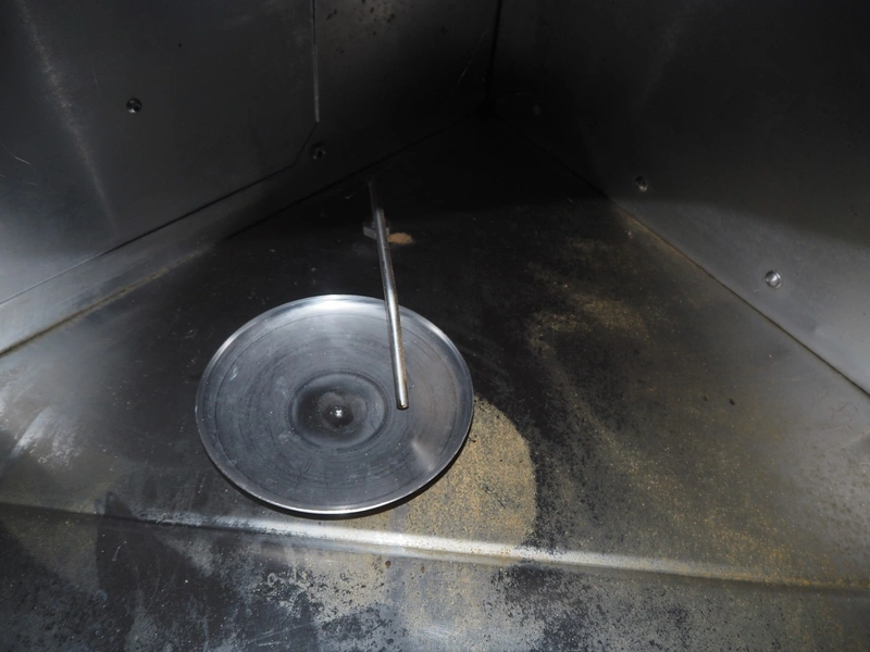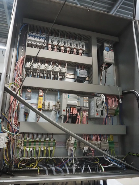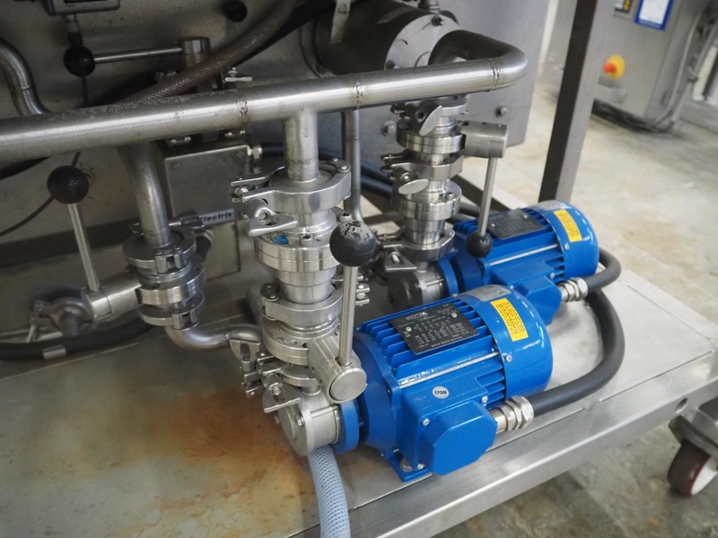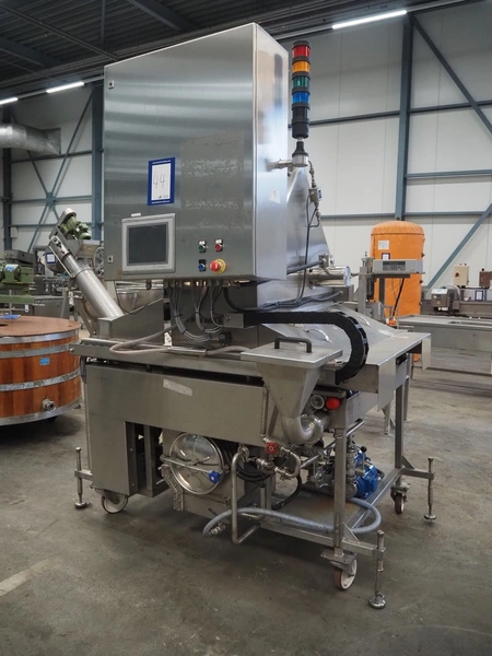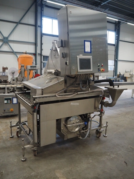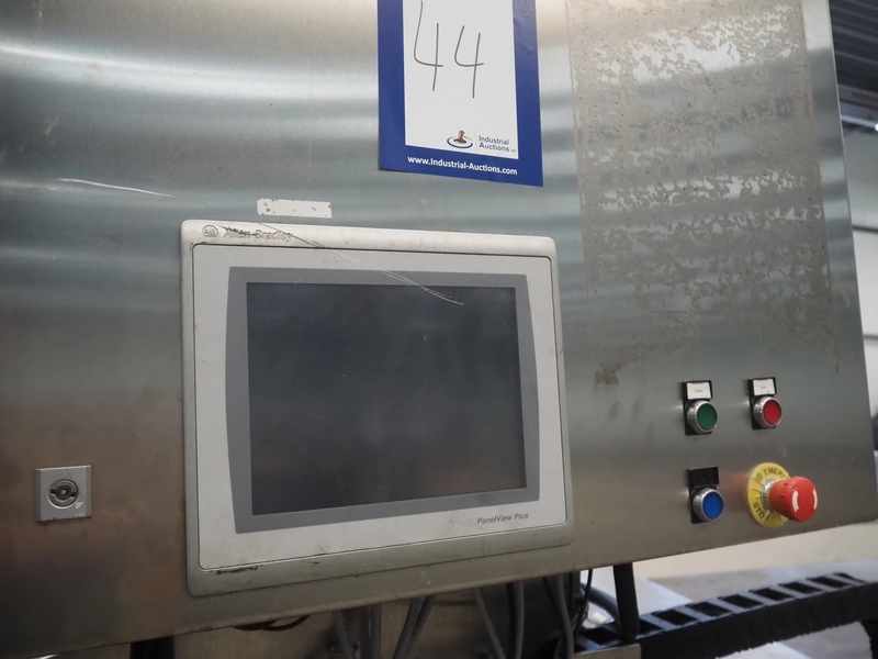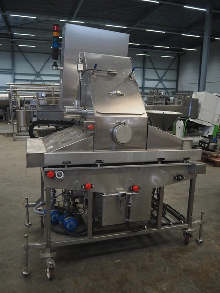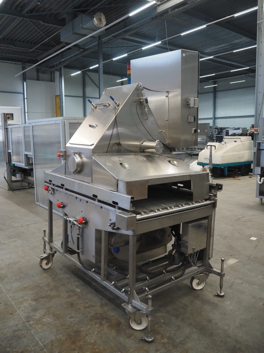 Mobile glazing machine, s/s mesh belt, belt width: 800 mm, total dimensions: 1700 mm x 1550 mm x 2440 mm.