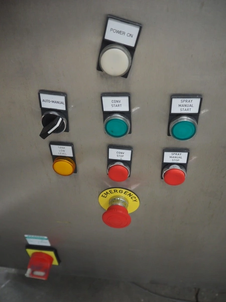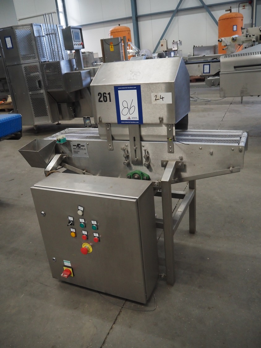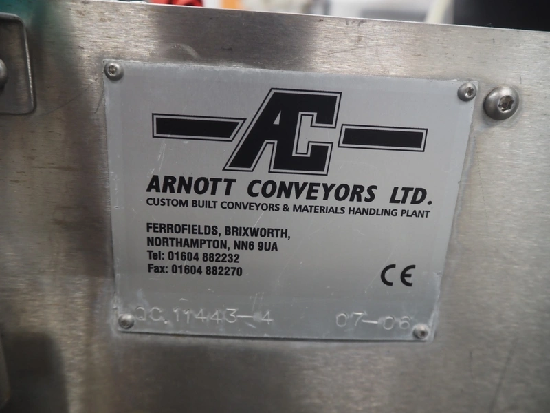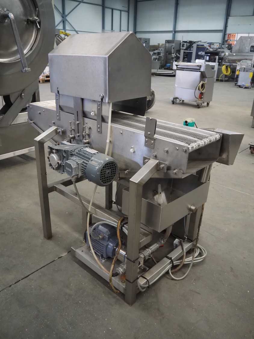 Arnott spraying belt, number: OC.11443-4, year of construction: 07-06, s/s mesh belt, belt width: 250 mm, total dimensions: 1250 mm x 850 mm x 1200 mm.
