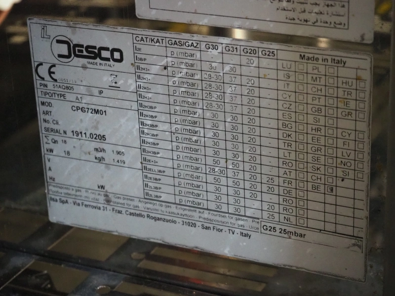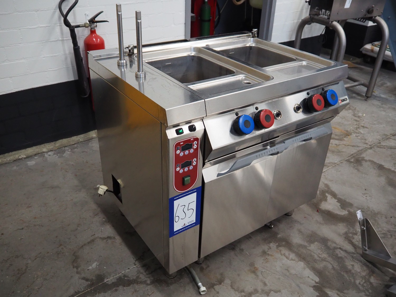 Esco gas heated double cooking vessel, model: CPG72M01, serial number: 1911.0205, inside dimensions: (2x) 200 mm x 340 mm x 300 mm, total dimensions: 950 mm x 770 mm x 1150 mm.