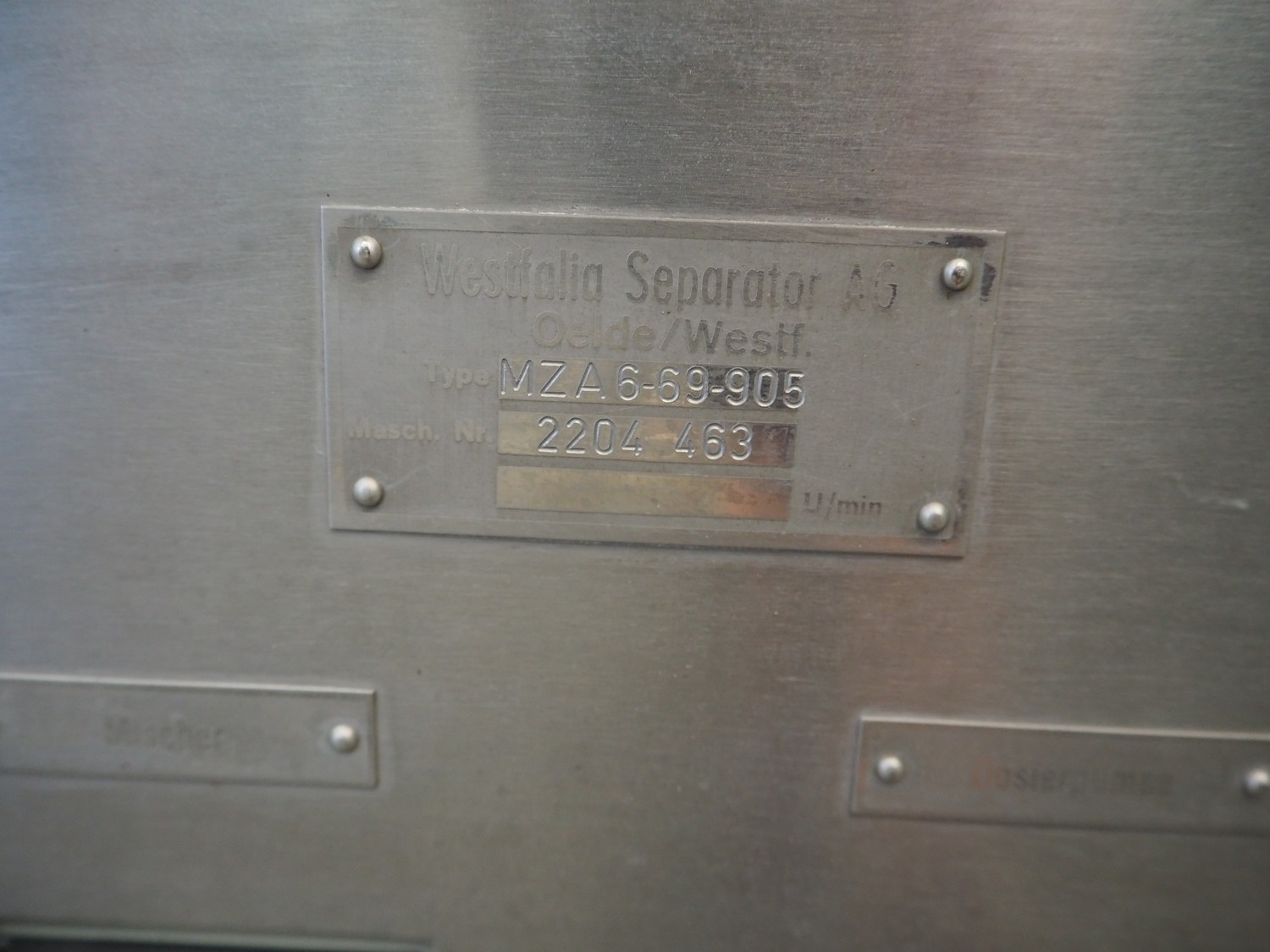 Westfalia Separator AG separator, type: MZA 6-69-905, machine number: 2204 463, dimensions: 900 mm x 800 mm x 1100 mm.