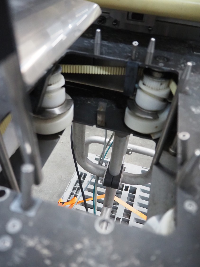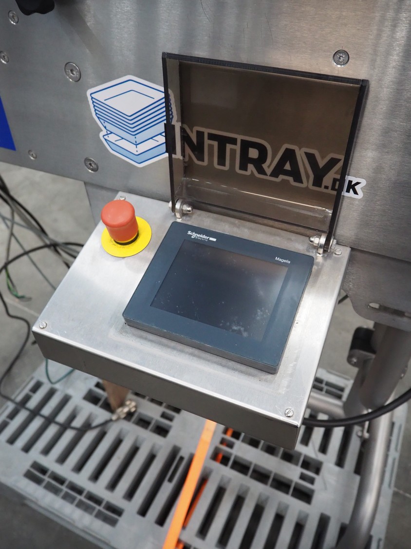 Intray tray denester, plastic belt, belt width: 275 mm, tray dimensions: 260 mm x 180 mm, total dimensions: 1700 mm x 780 mm x 1570 mm.