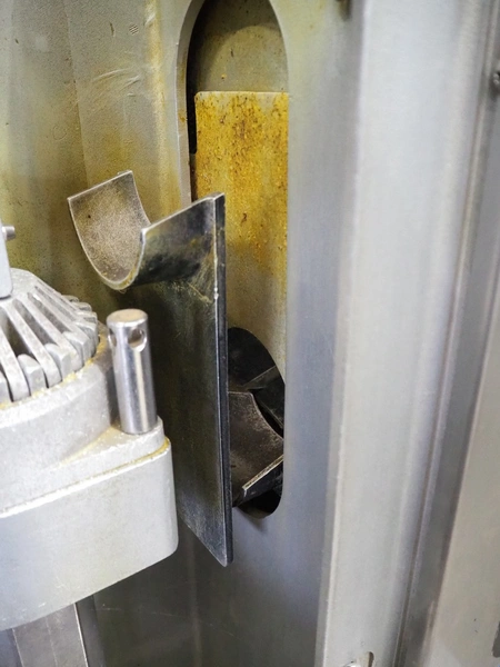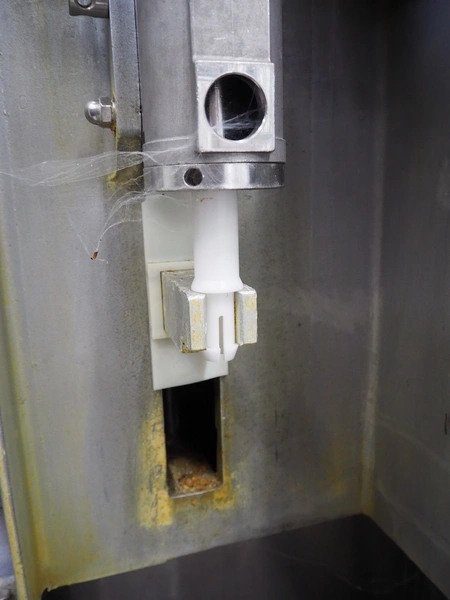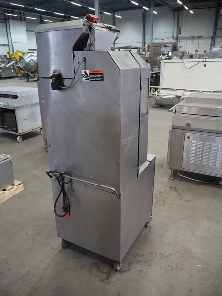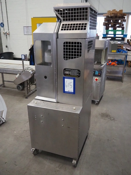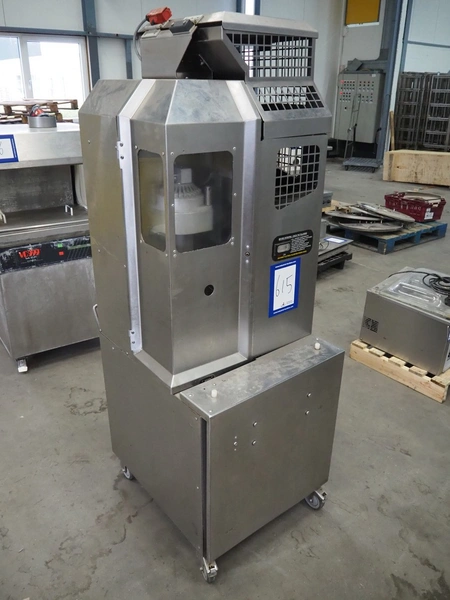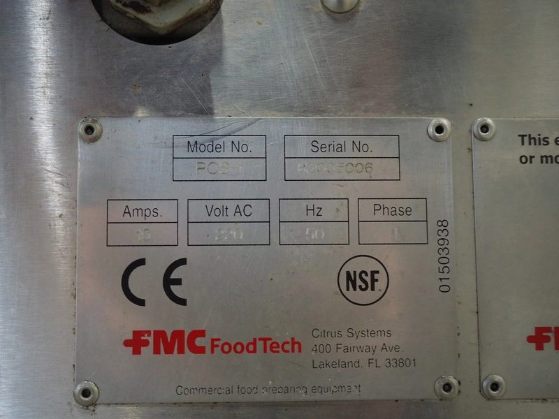 FMC FoodTech mobile multi-fruit juicer, model: POS-1, serial number: 82005006, 220 V, 1 Ph, 50 Hz, 10 A, dimensions: 850 mm x 550 mm x 1860 mm.