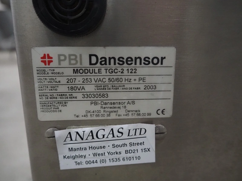 PBI Dansensor gas mixing station, type: module TGC-2 122, serial number: 33030583, year of construction: 2003, 207-253 VAC, 50/60 Hz, dimensions: 460 mm x 360 mm x 300 mm.