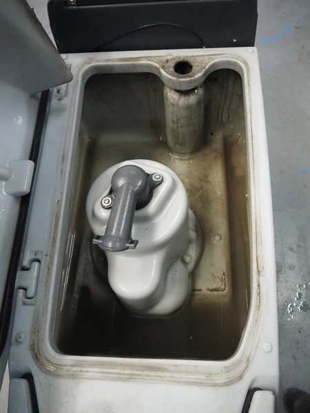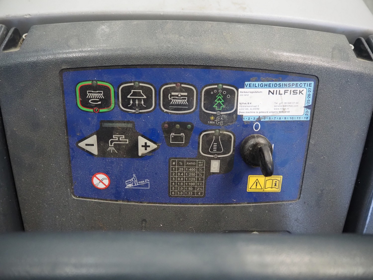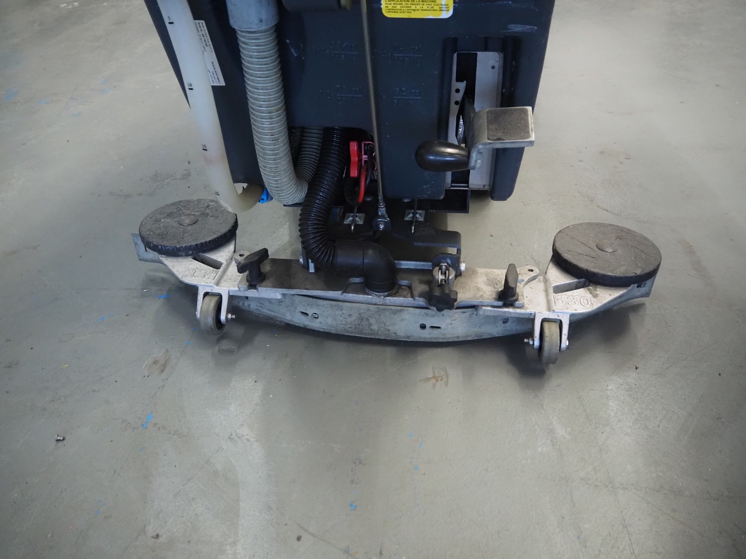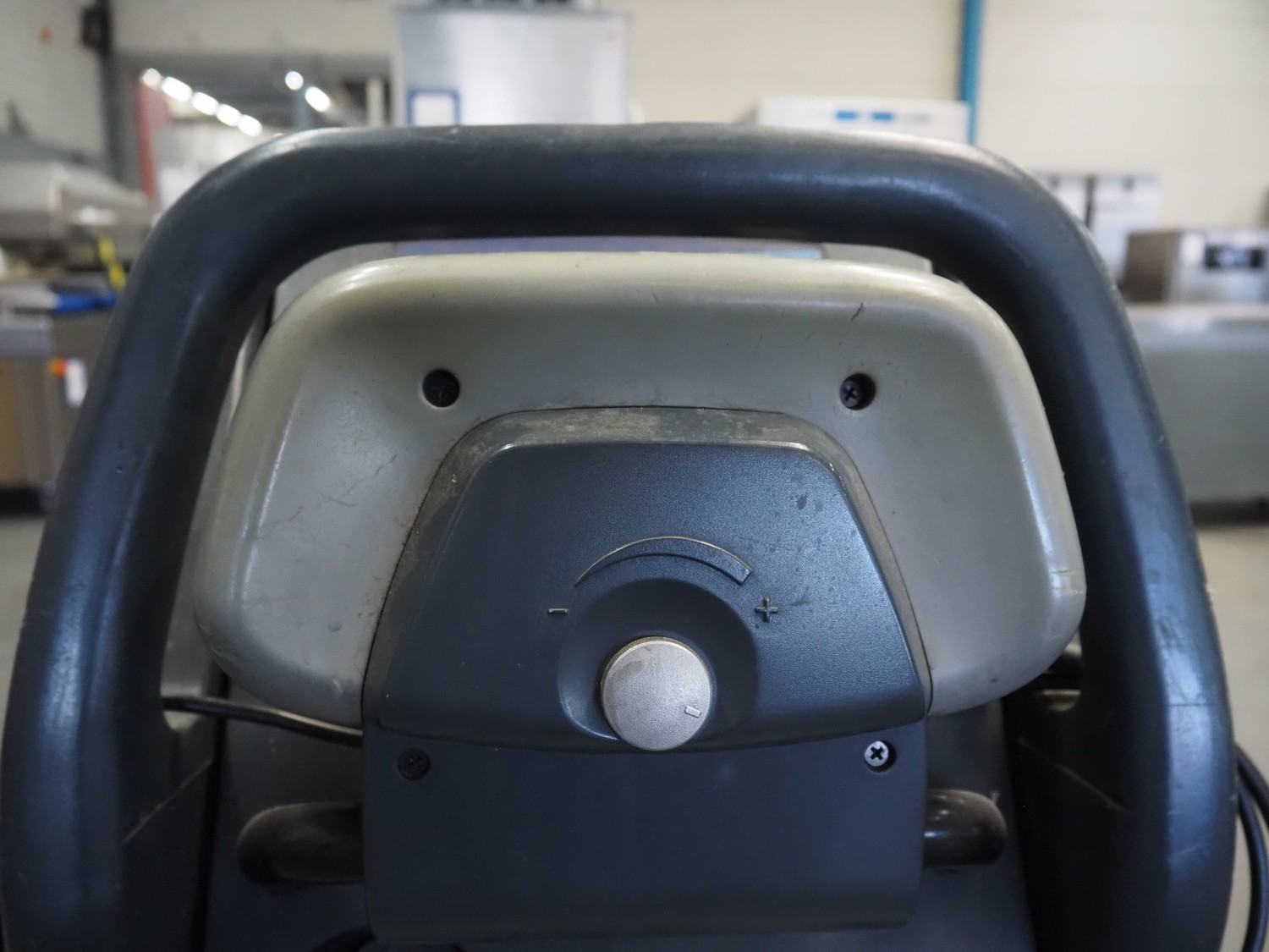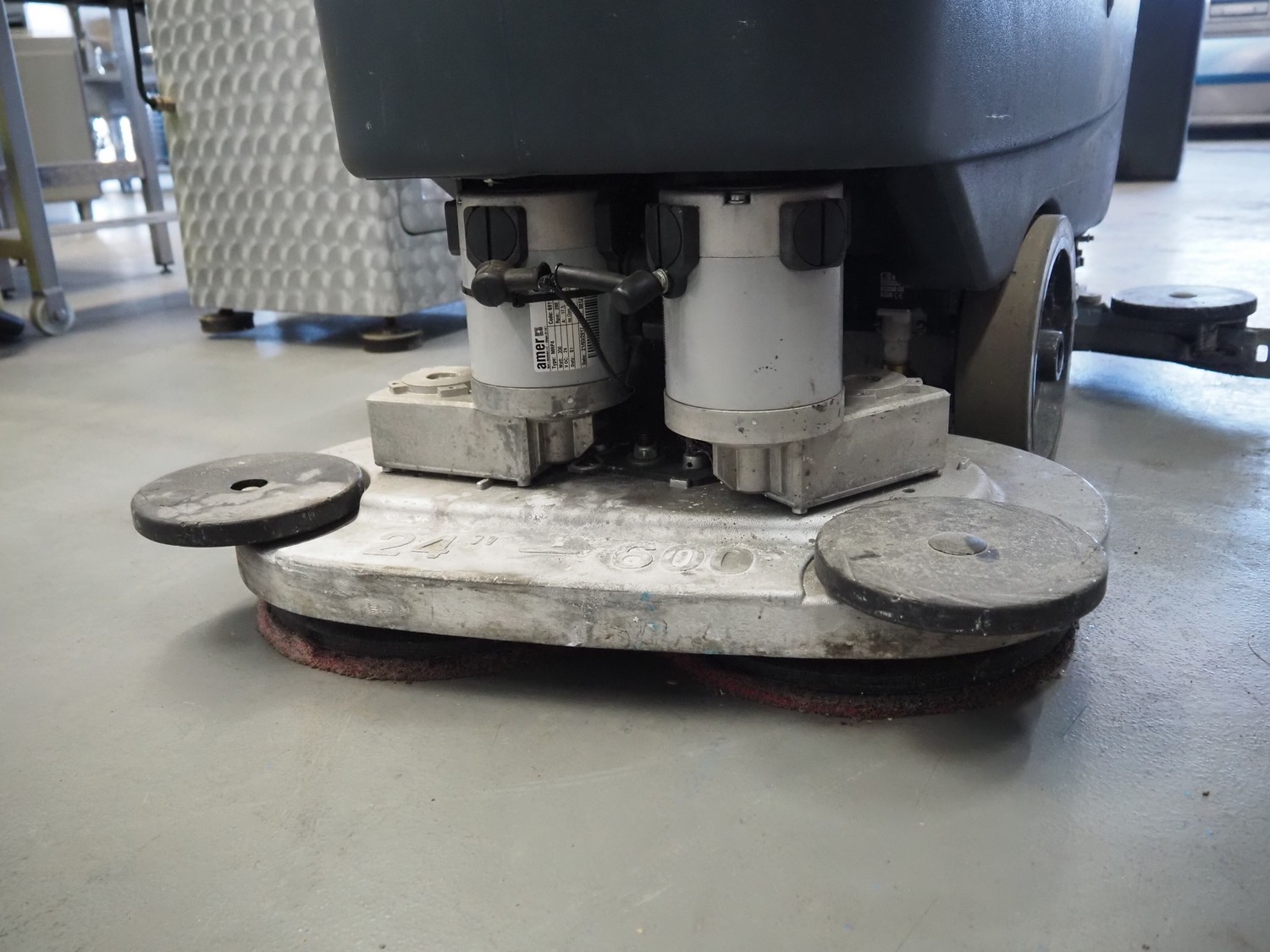 Nilfisk floor scrubber, model: Scrubber-Dryer BA 611D, serial number: 3510171807011, 100-240 V, 50/60 Hz, weight: 107 kg, dimensions: 1300 mm x 700 mm x 1100 mm.