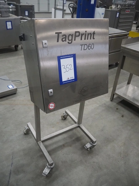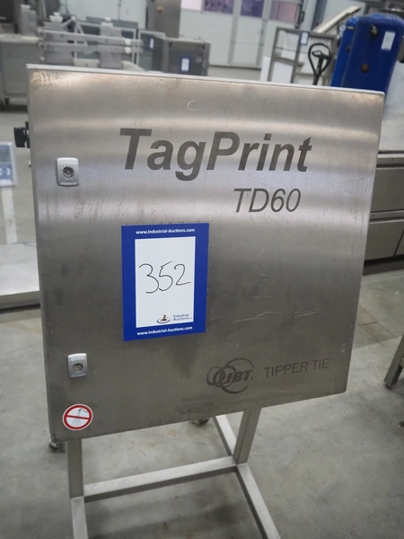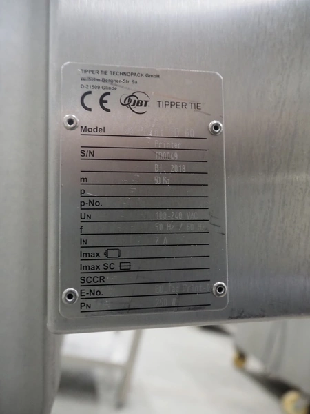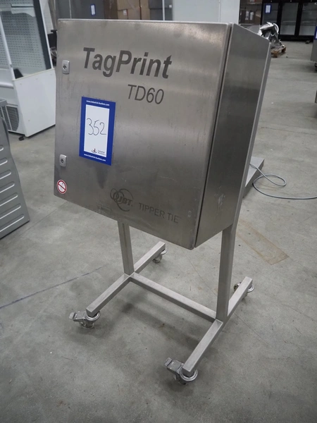 Tipper Tie Technopack mobile labelling system, type: Tag print TD-60, serial number: TD0049, year of construction: 2018, 240 V, 50-60 Hz, 2 A, dimensions: 600 mm x 600 mm x 1350 mm.