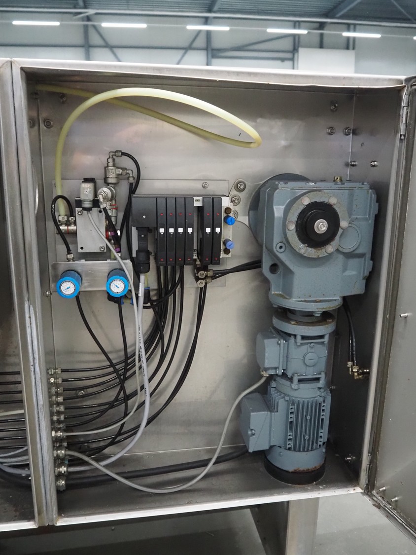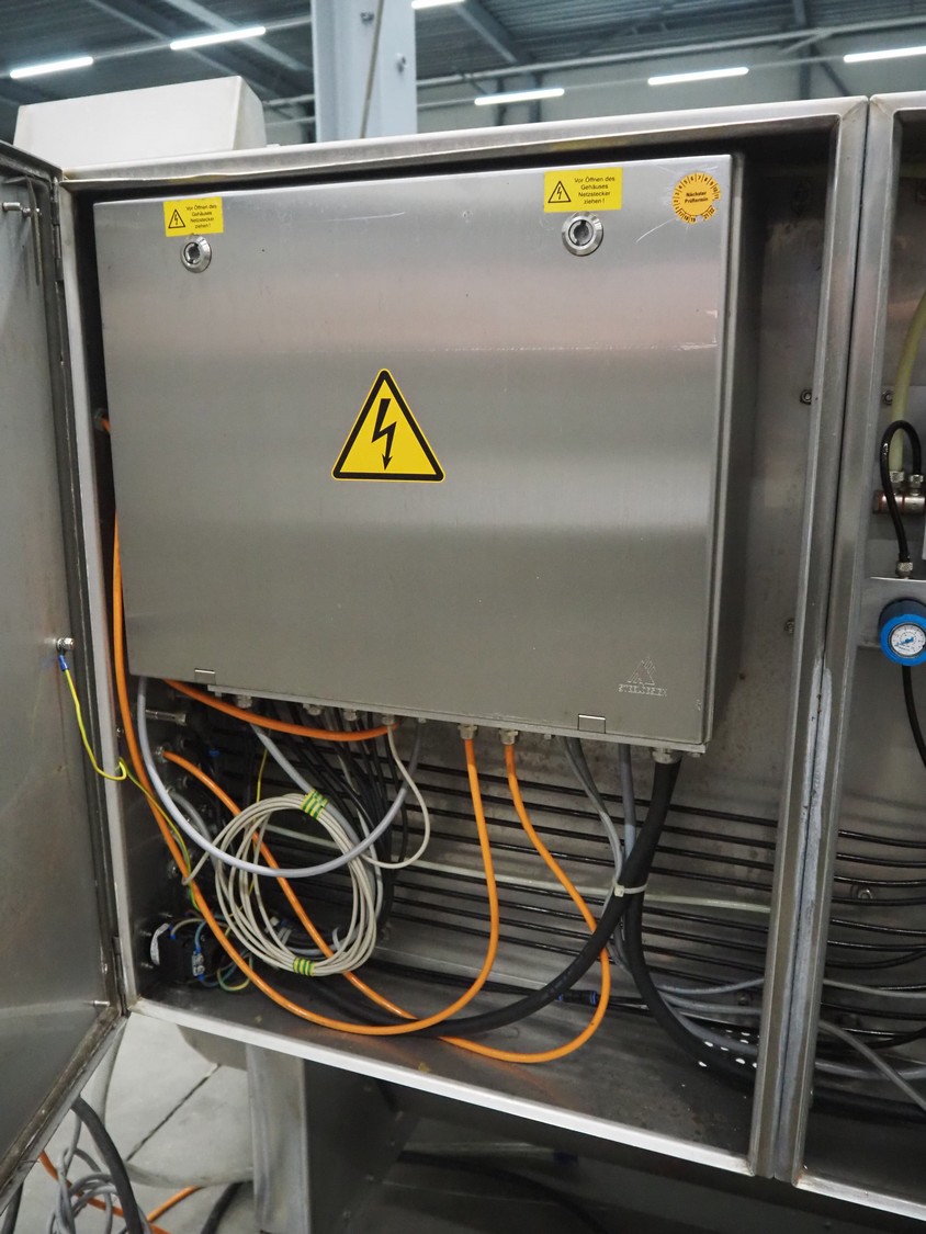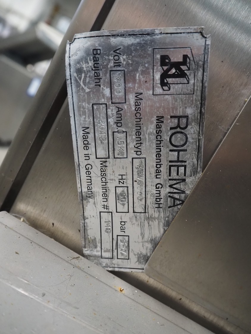 Rohema Maschinenbau GmbH mobile hanging line for sausages, type: AHV8000, number: 110, year of construction: 2012, 400 V, 50 Hz, 0.5 kW, 5-7 bar, dimensions: 2200 mm x 1200 mm x 1600 mm.