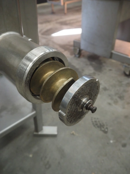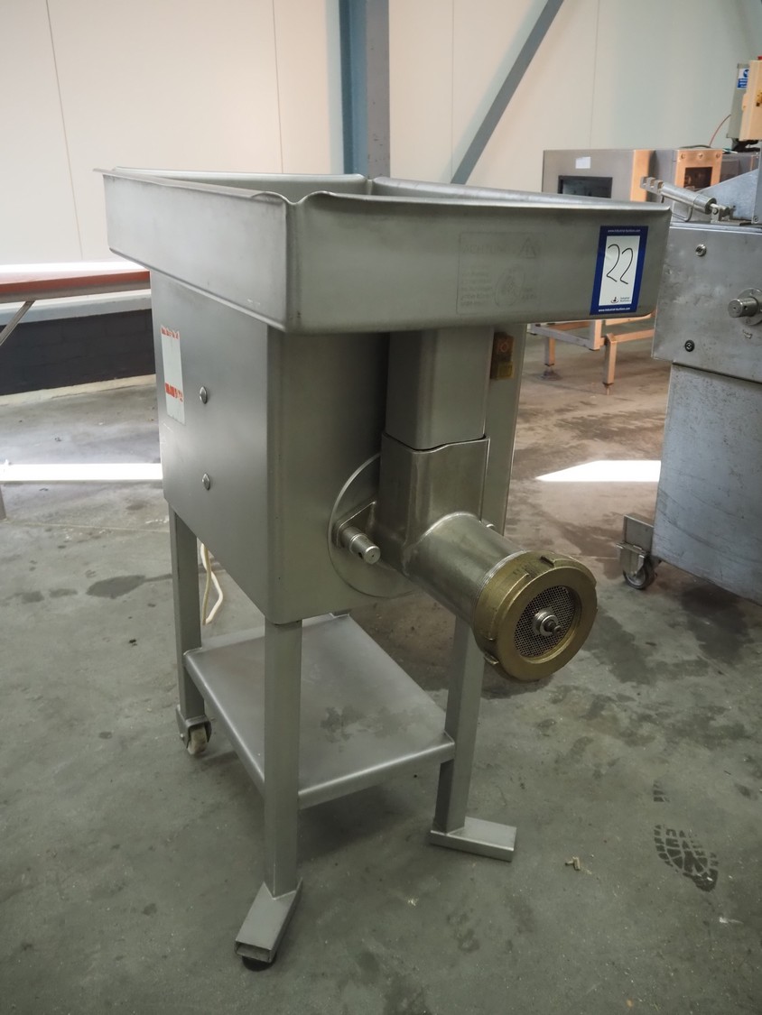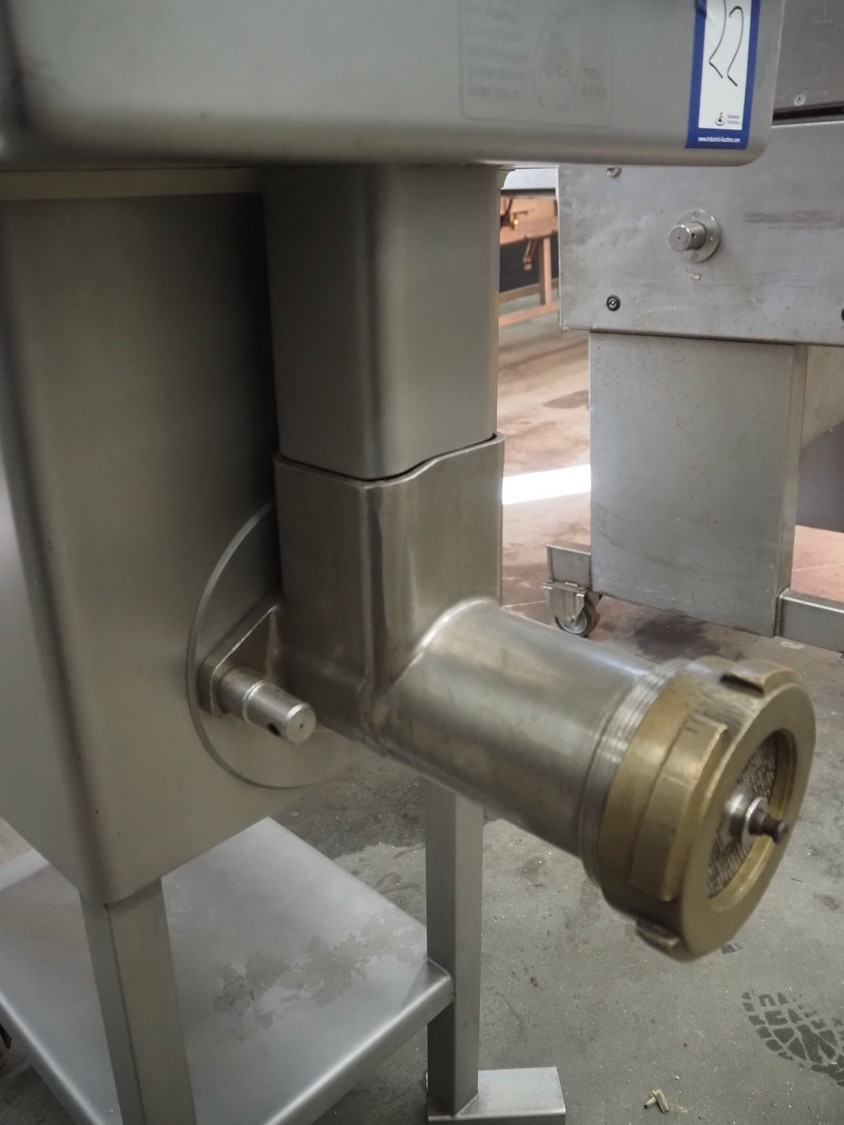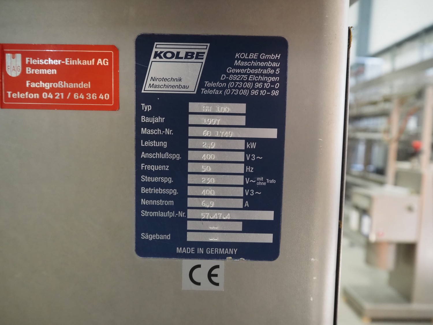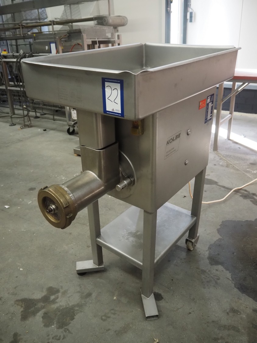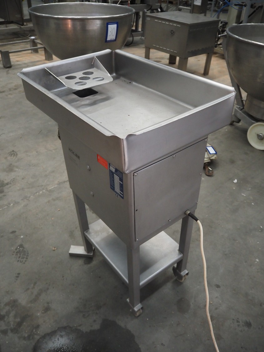 Kolbe mobile grinder, type: SW 100, number: 68 1749, year of construction: 1997, 400 V, 3 Ph, 50 Hz, 6.9 A, 2.9 kW, plate diameter: 100 mm, total dimensions: 920 mm x 530 mm x 1100 mm.