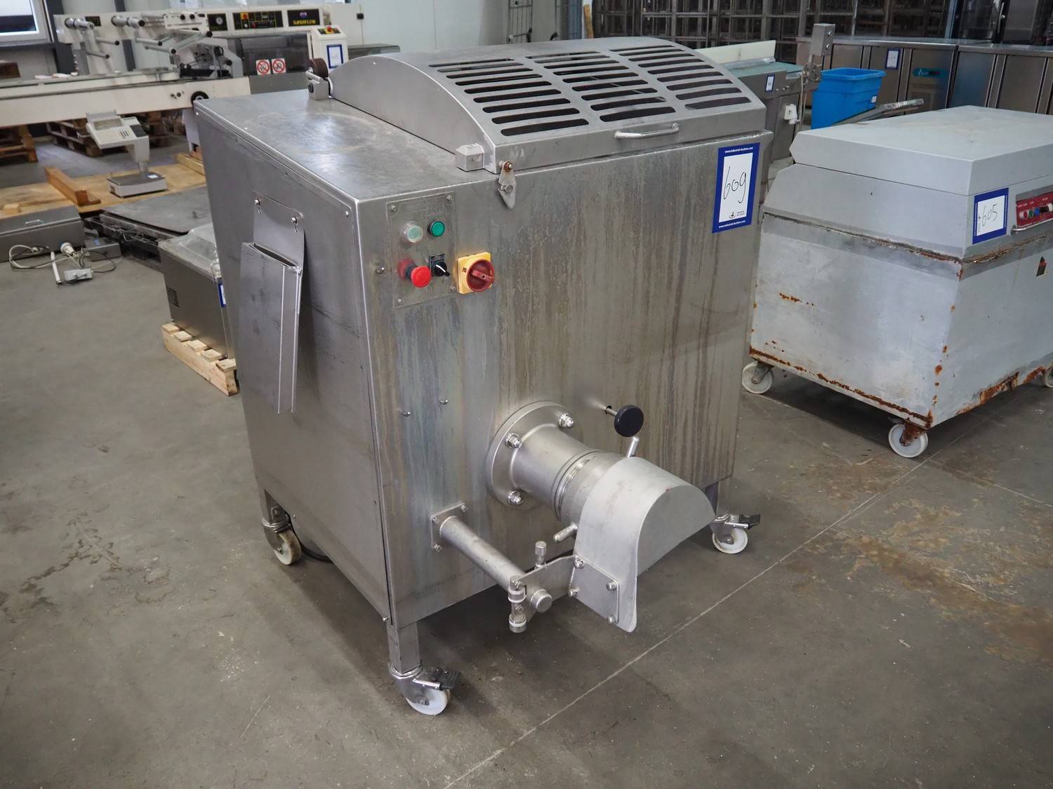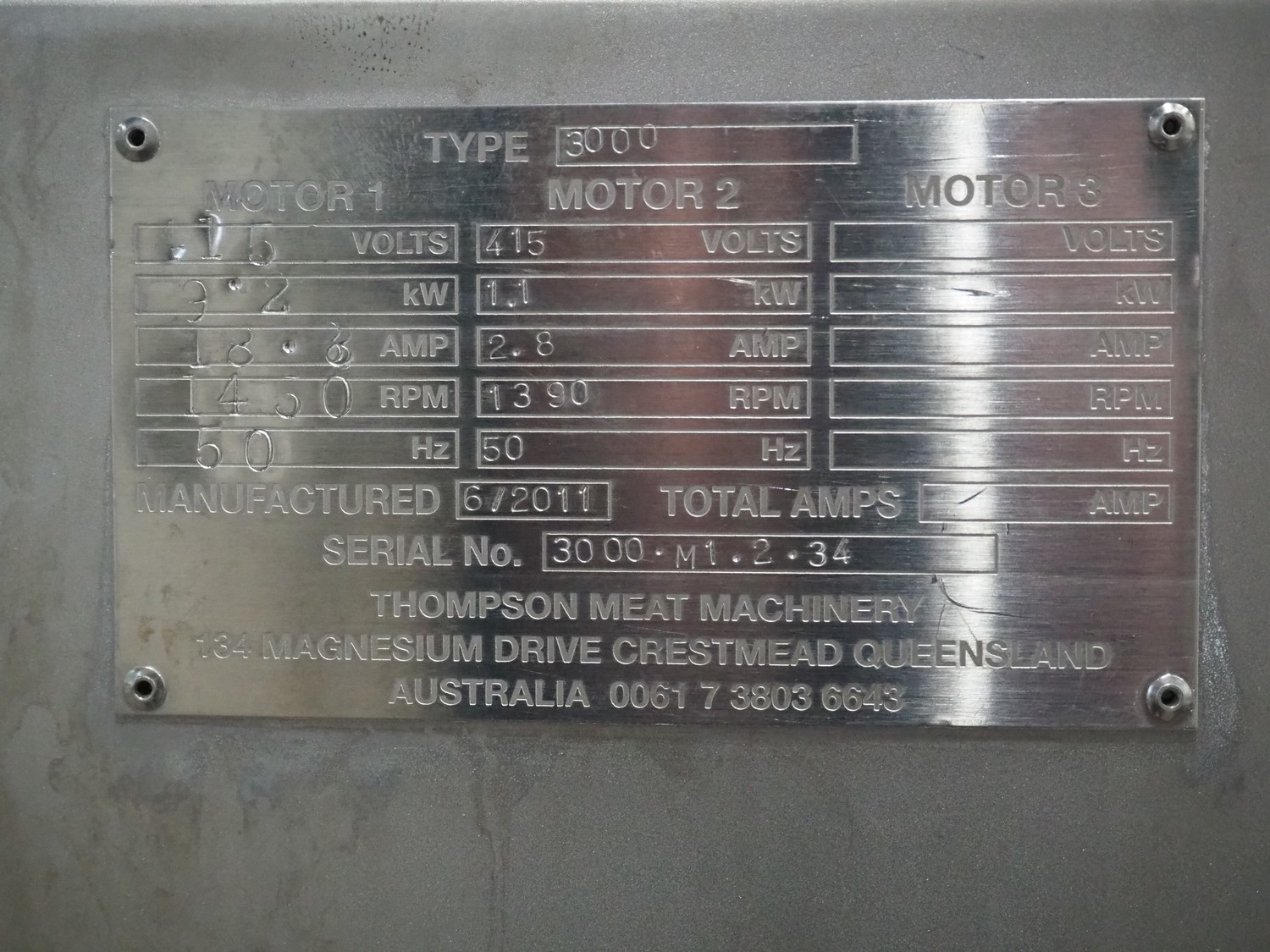 Thompson mixer-grinder, type: 3000, serial number: 3000.M1.2.34, year of construction: 6/2011, 415 V, plate diameter: approx. 120 mm, total dimensions: 1200 mm x 1250 mm x 1300 mm. Without knife plates.