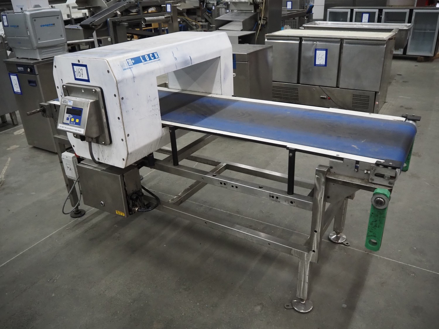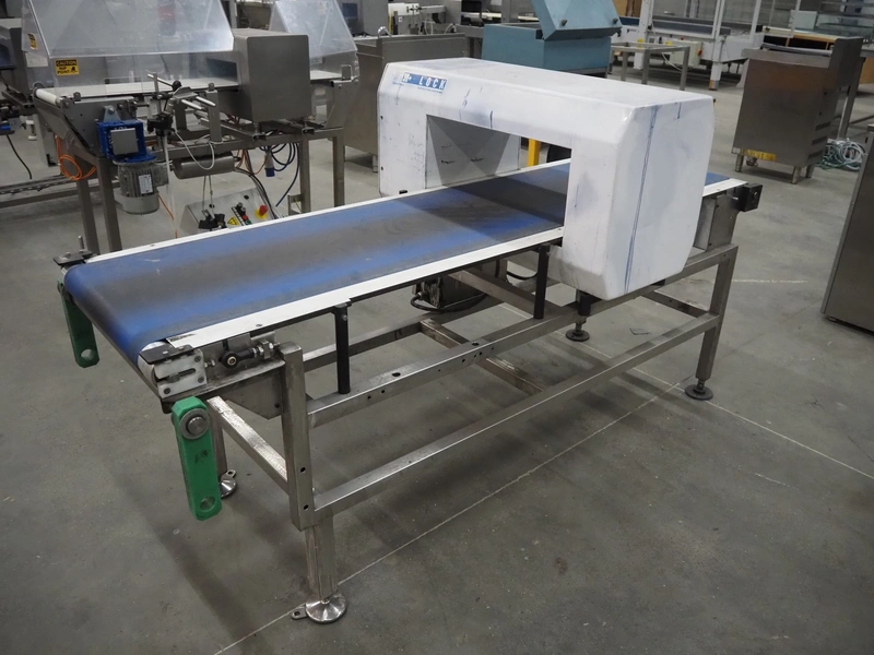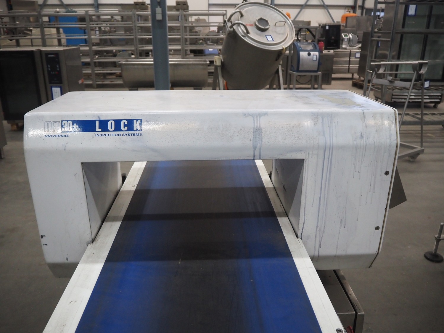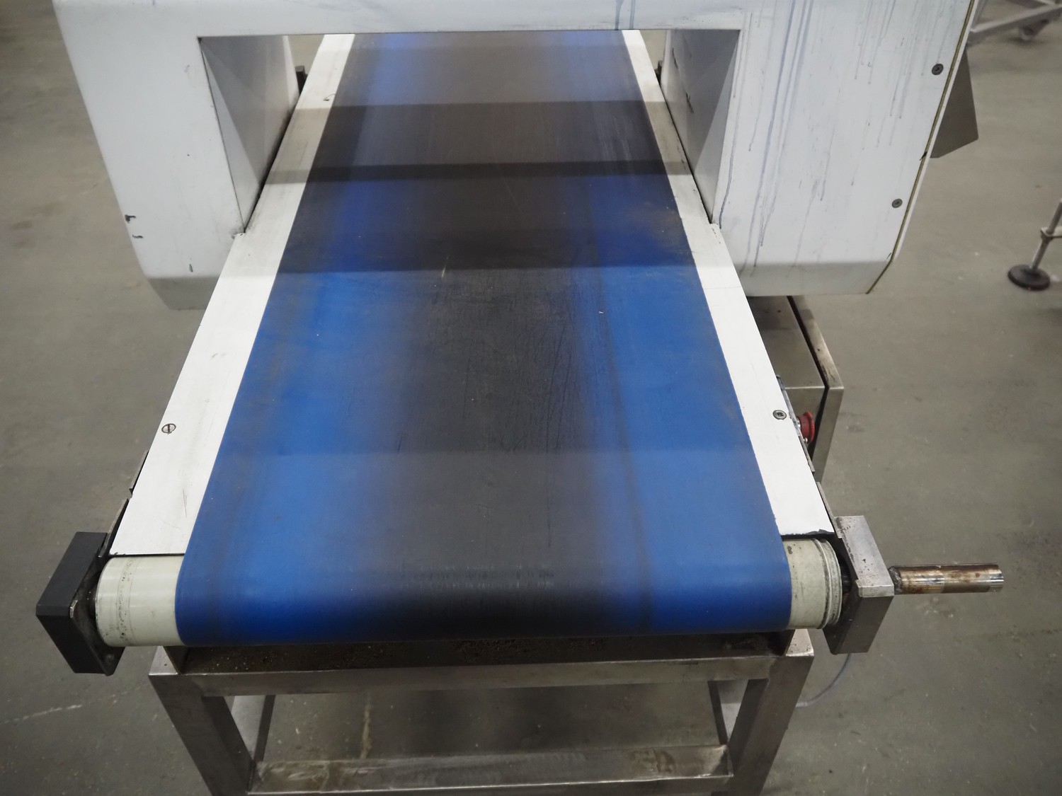 Lock metal detector, model: MET30+, plastic belt, belt width: 460 mm, clearance: 550 mm x 220 mm, total dimensions: 2000 mm x 1050 mm x 1150 mm. is missing driving motor.