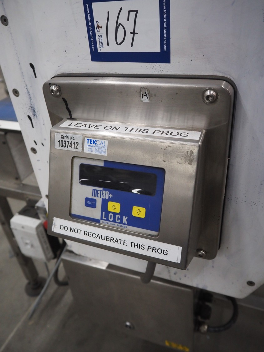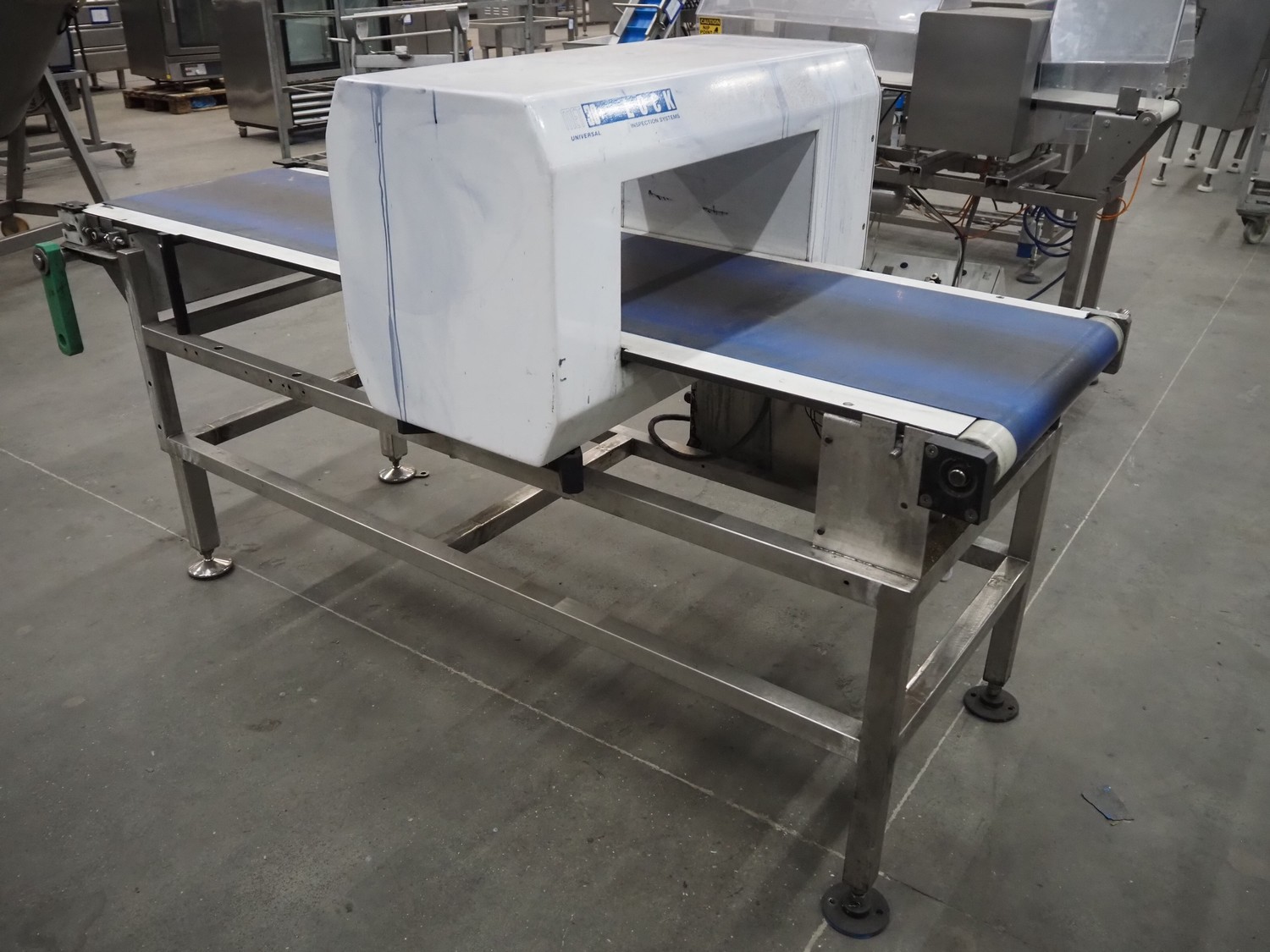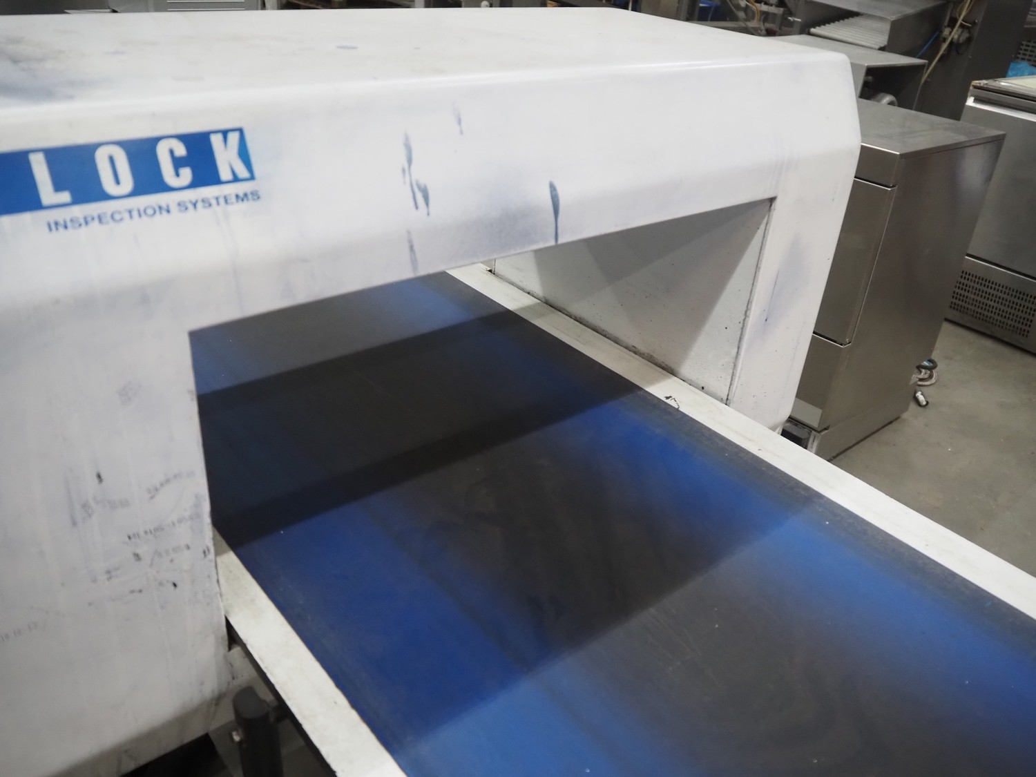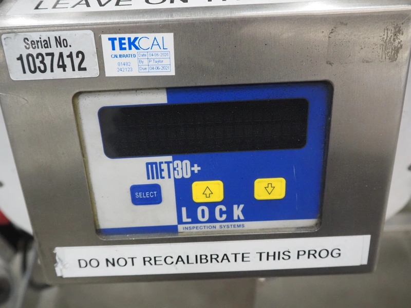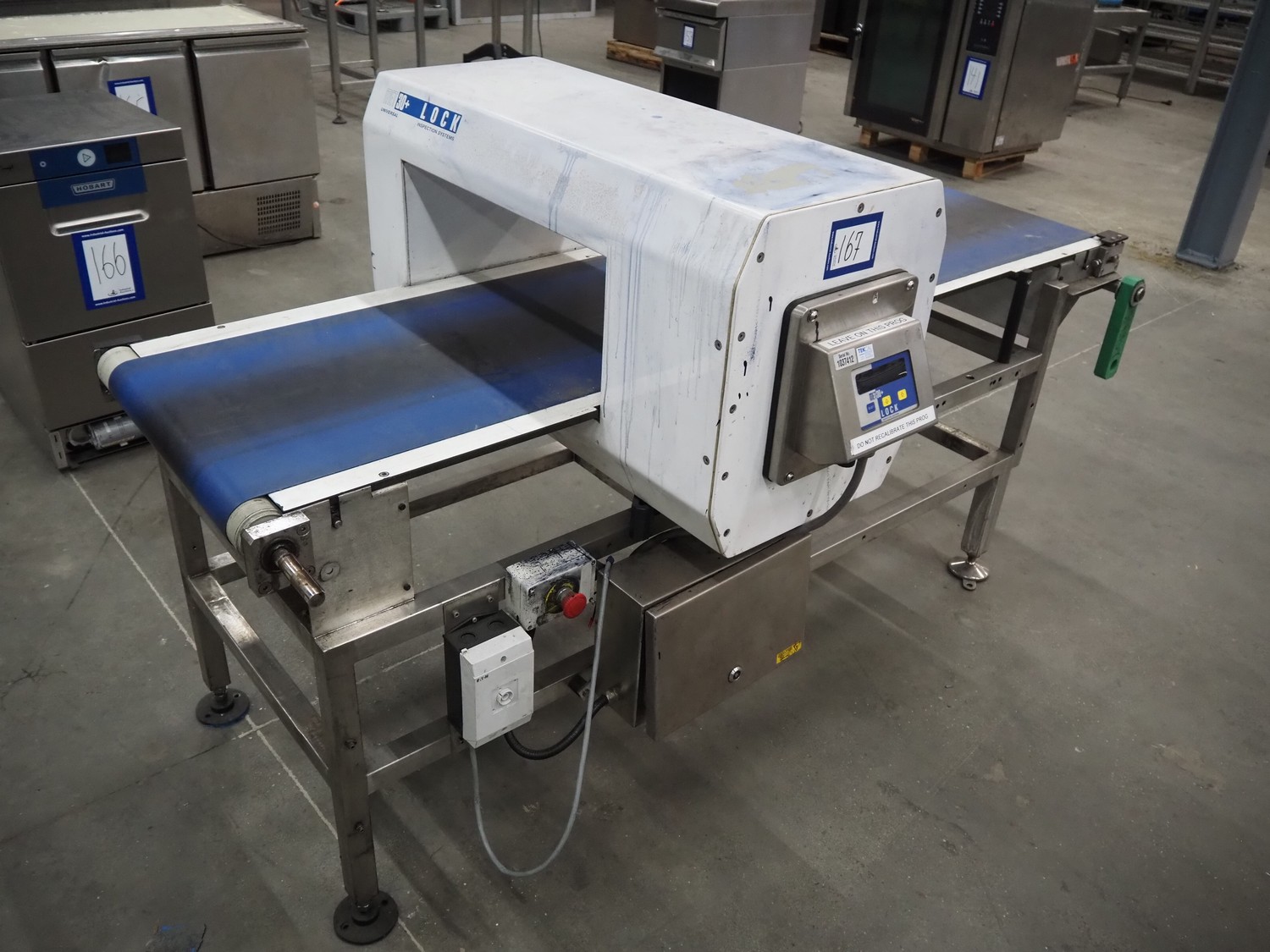 Lock metal detector, model: MET30+, plastic belt, belt width: 460 mm, clearance: 550 mm x 220 mm, total dimensions: 2000 mm x 1050 mm x 1150 mm. is missing driving motor.